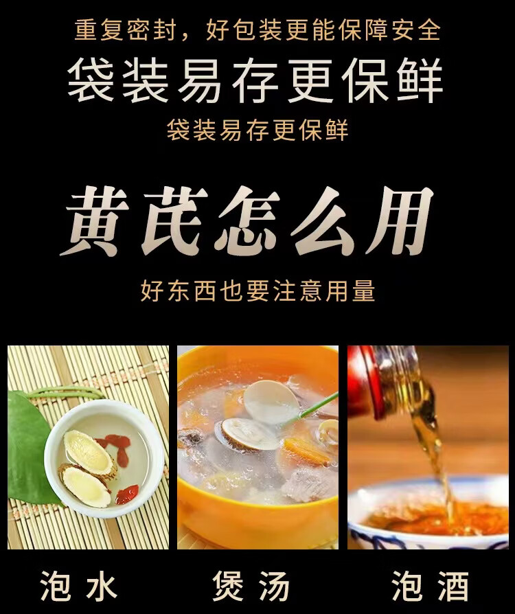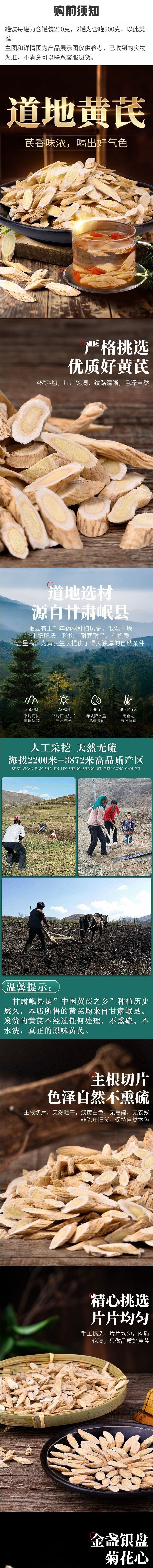 正宗甘肃黄芪1.0大片200g 无熏硫甘肃岷县黄芪片北芪泡水滋补养生 正宗0.8-1.0黄芪片金盏银盘 200g*3罐