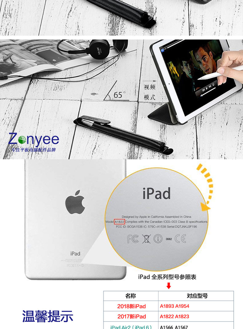 zonyee iPad保护套2018/2017款9.7英寸5/6代A1822/a1893防摔支架外壳 中国红