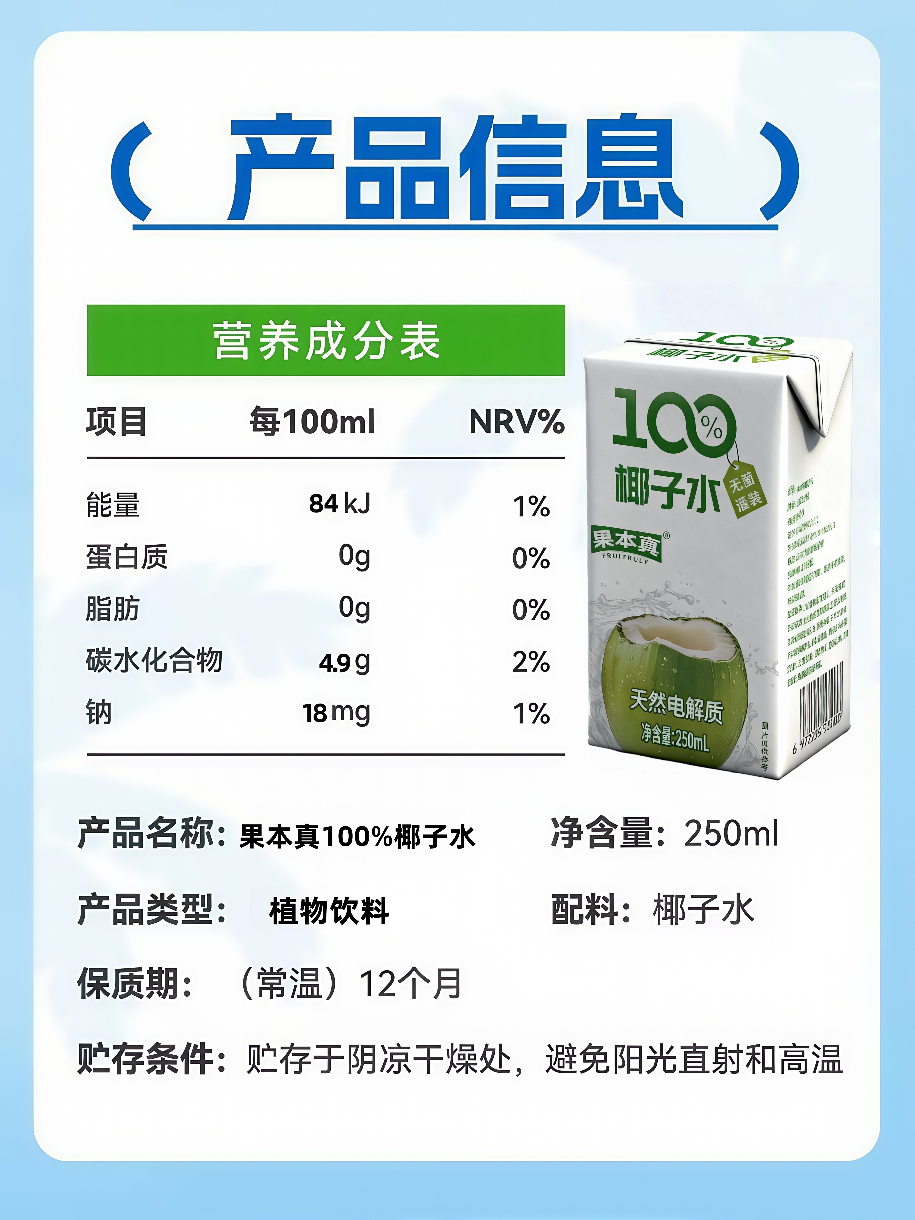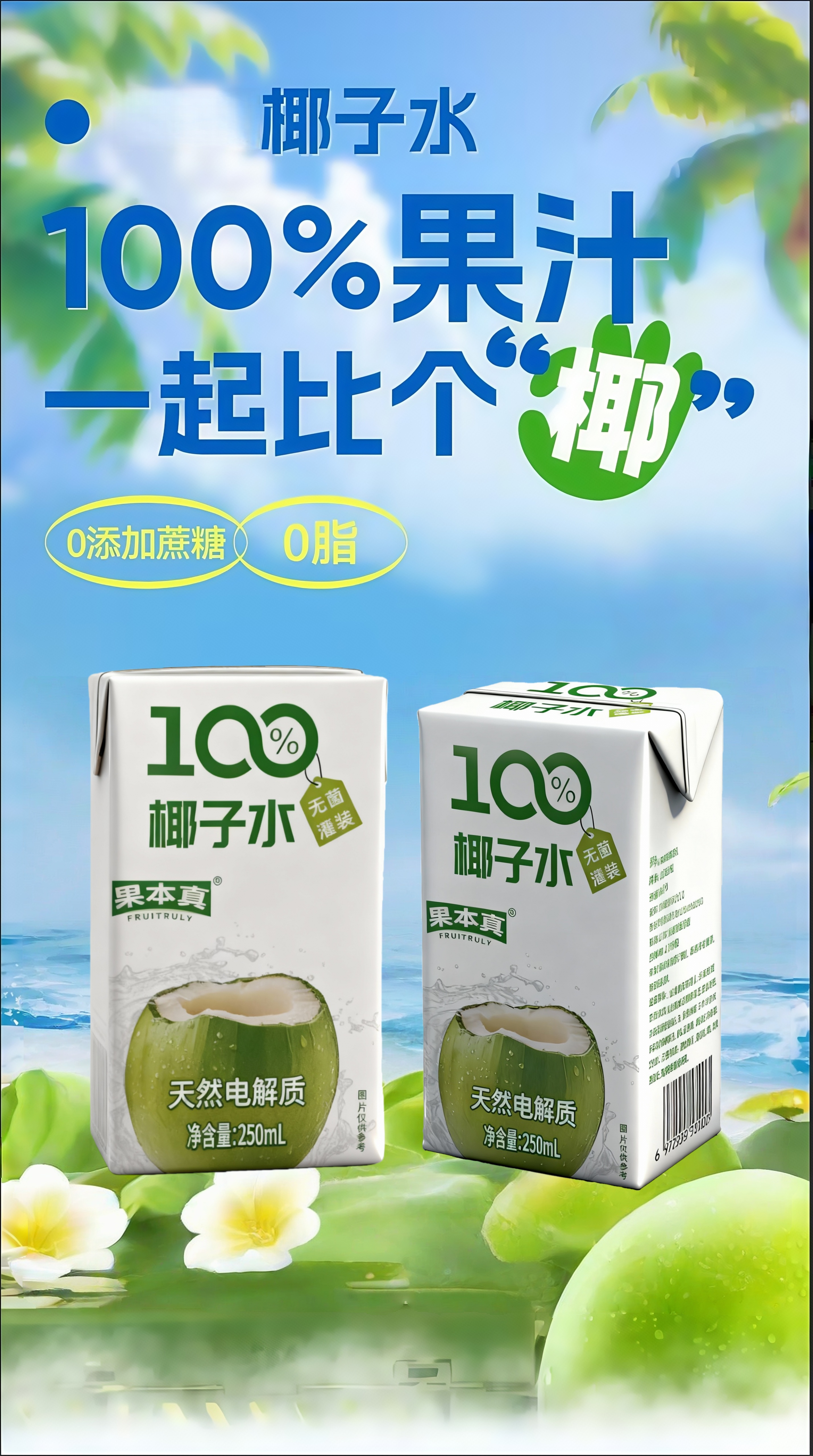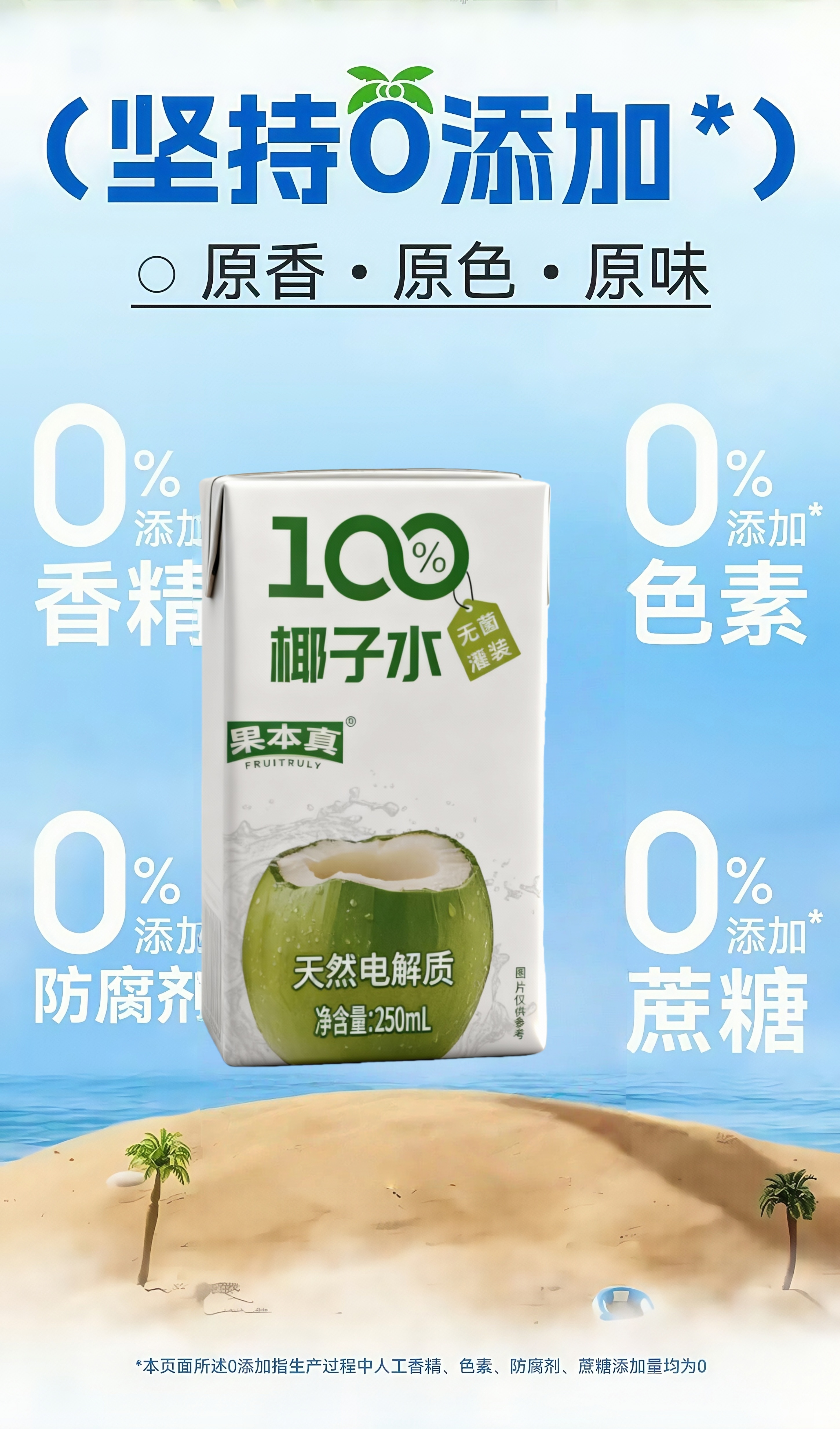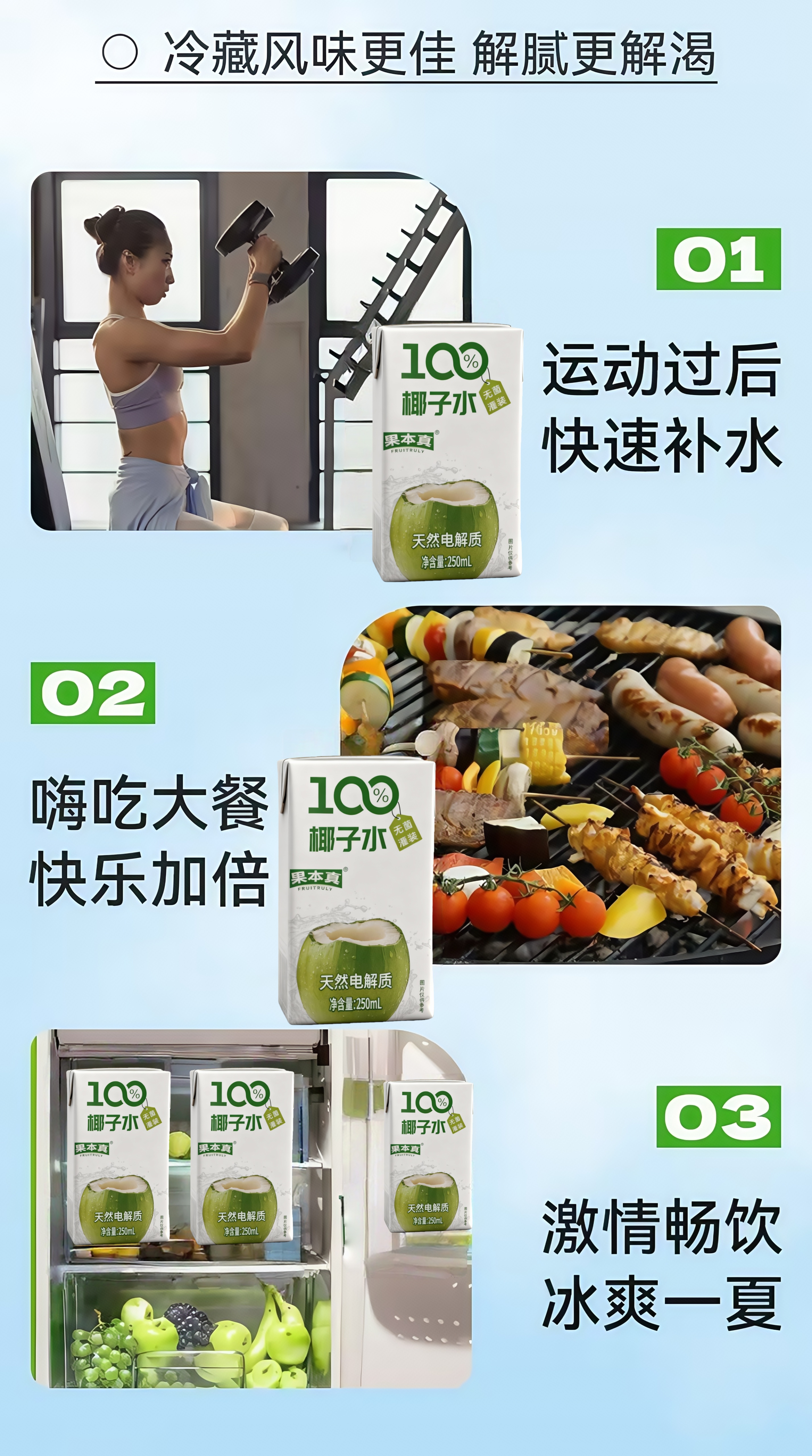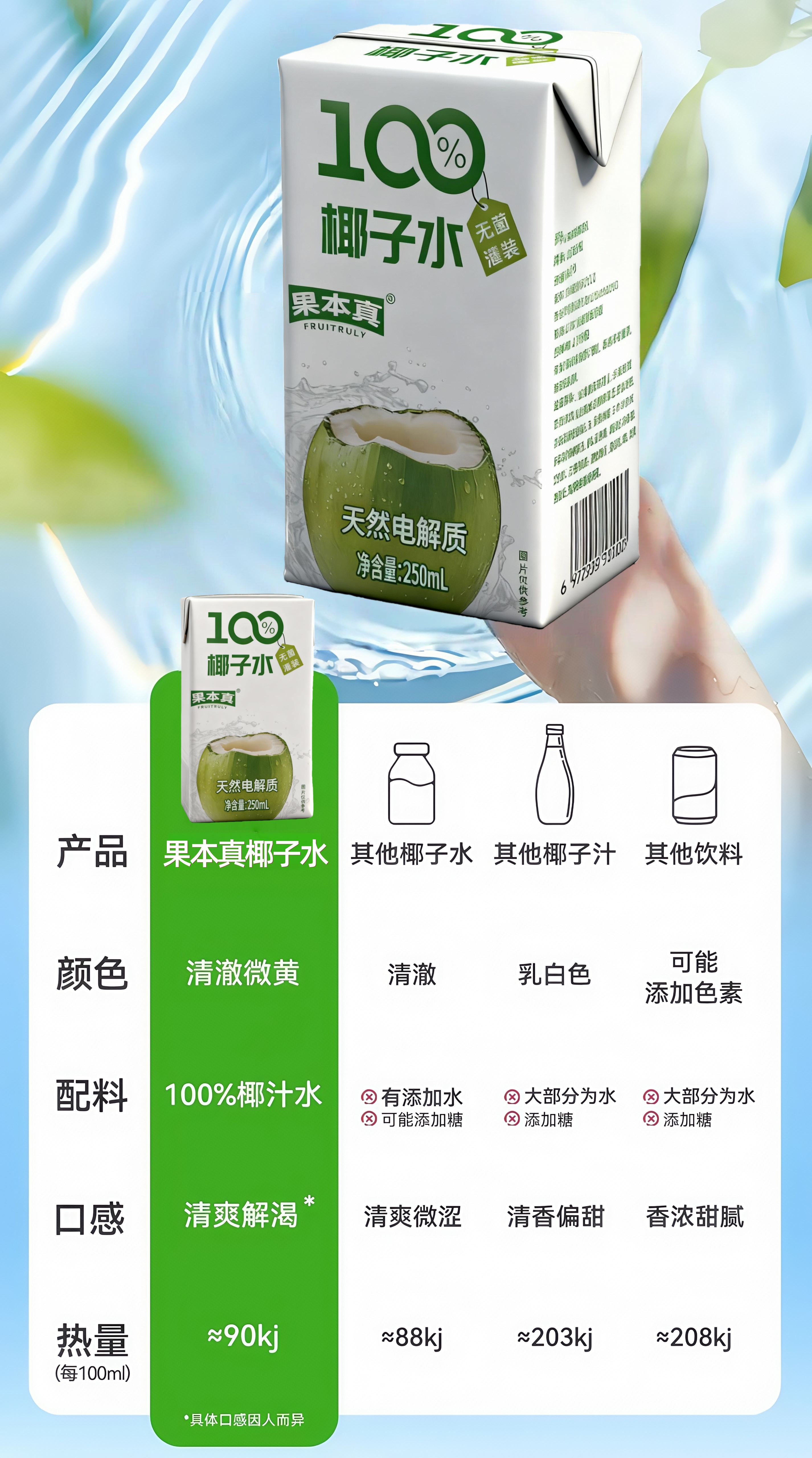果本真100%椰子水 NFC椰子水植物电解质饮料火锅必备 250ml*10盒