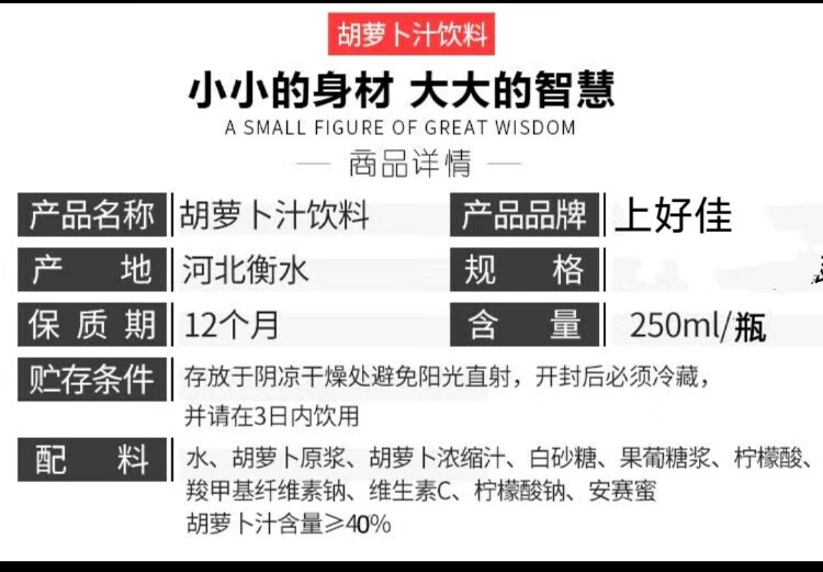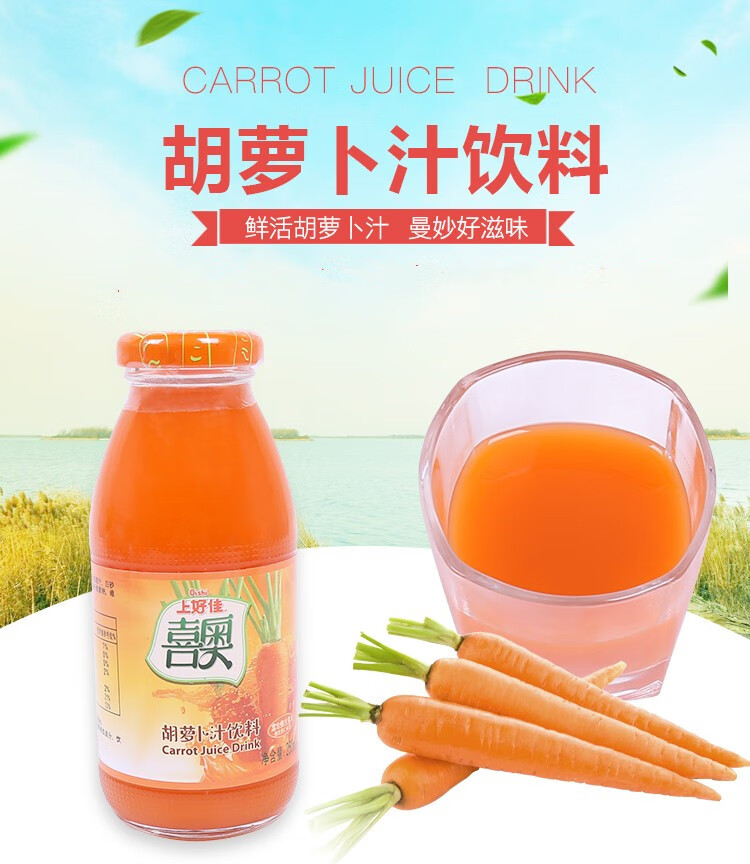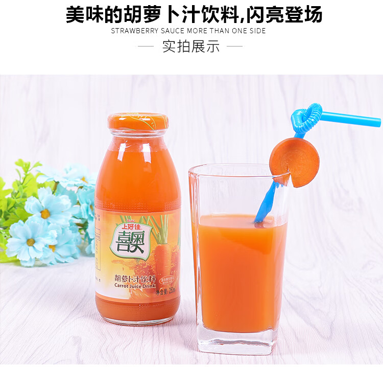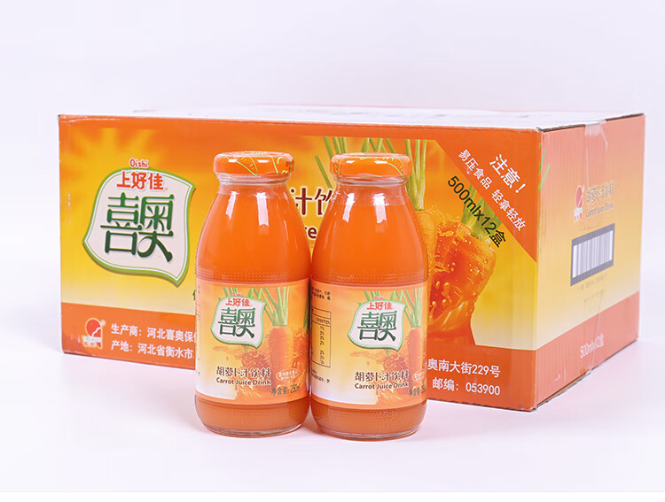 上好佳河北衡水饶阳喜奥胡萝卜汁饮料果蔬汁饮品250ML*6瓶整箱瓶装特产 250毫升X6瓶胡萝卜汁