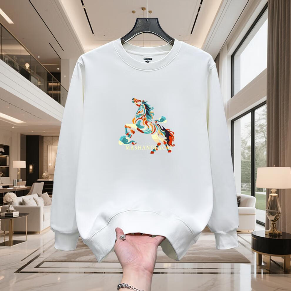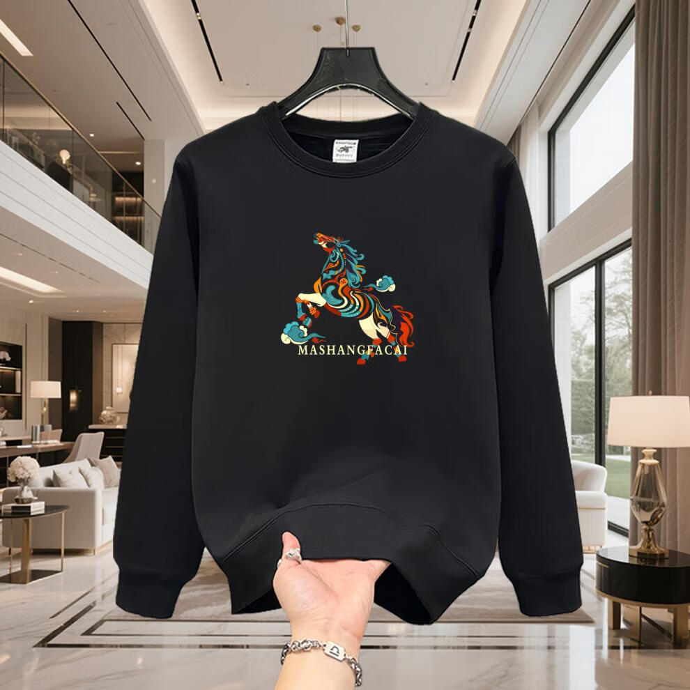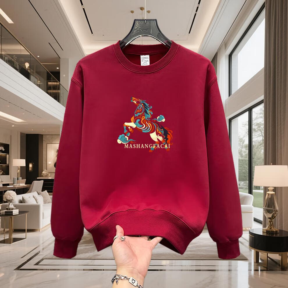 hteec香港潮牌国潮马年本命年卫衣冬季衣服宽松上衣新款加绒加厚男装 酒红色 常规 3XL 【190-220斤】