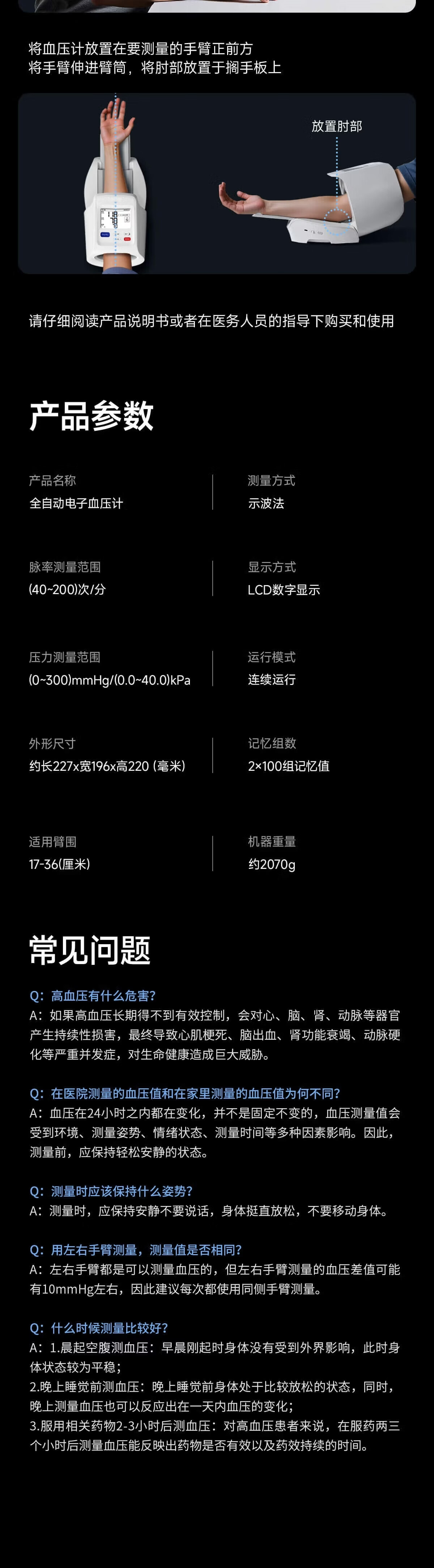 鱼跃臂筒式血压计同款 医用级高精准进口原装电子医用血压计家用老人 臂筒式家用款+50次测量续航+单泵加压