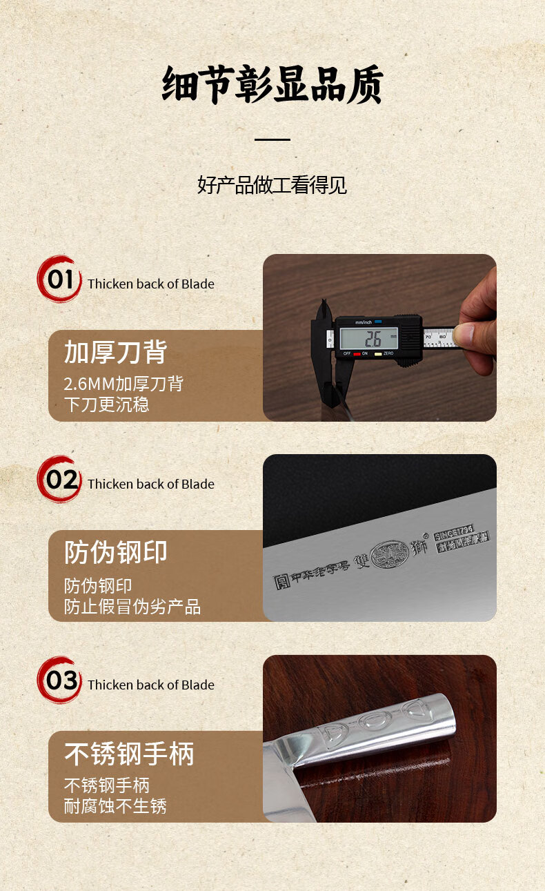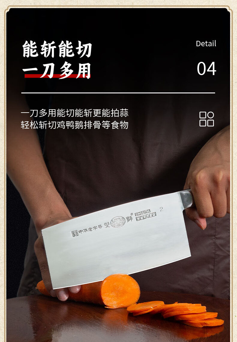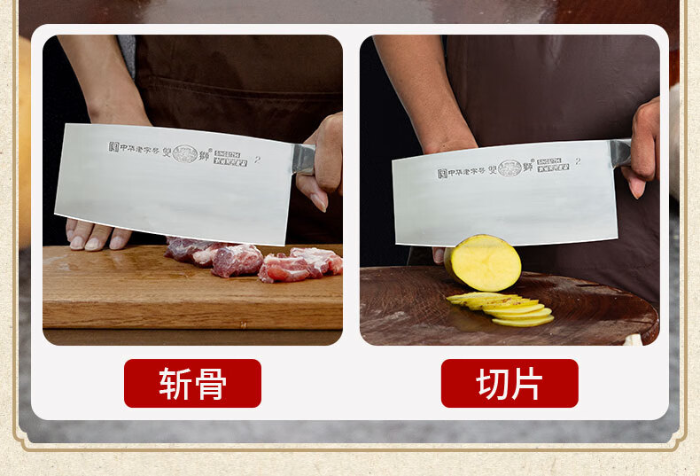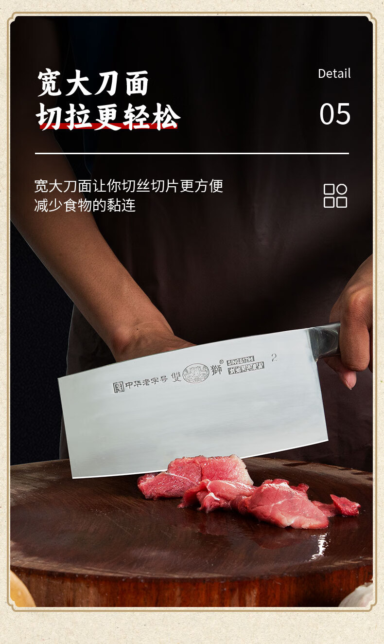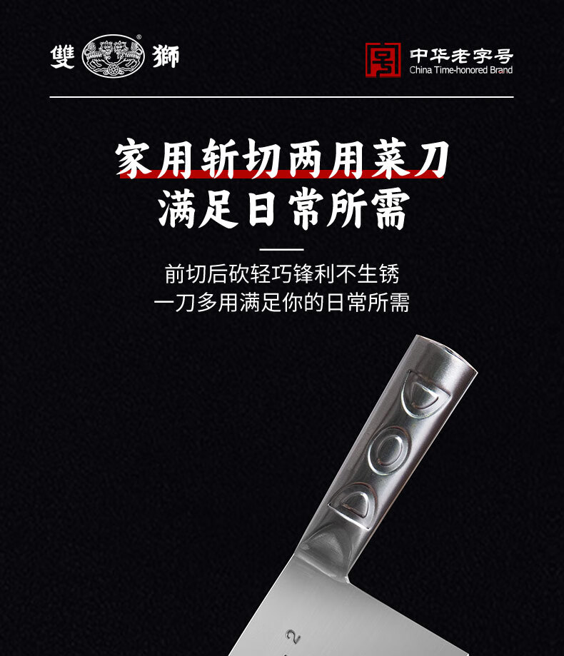 双狮菜刀钢柄切片刀家用斩切刀切菜切肉砍骨不锈钢锋利超快老式刀具 1#钢柄菜刀