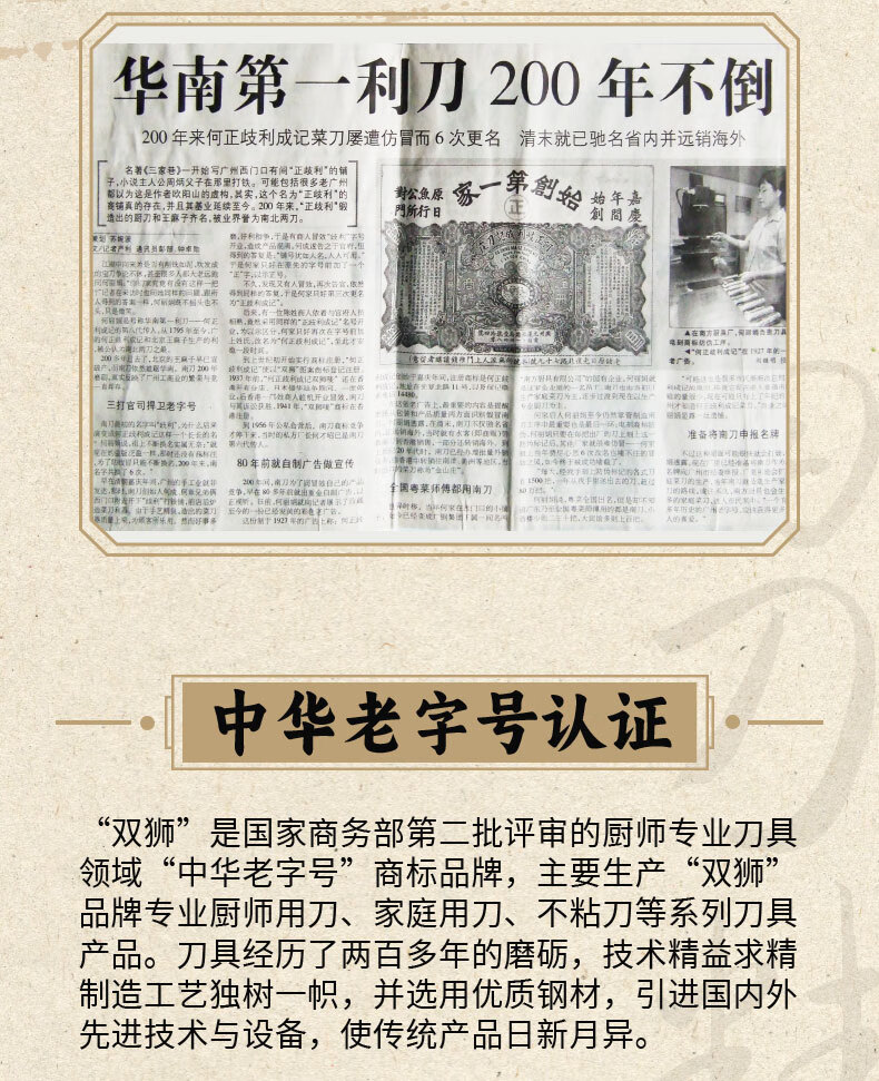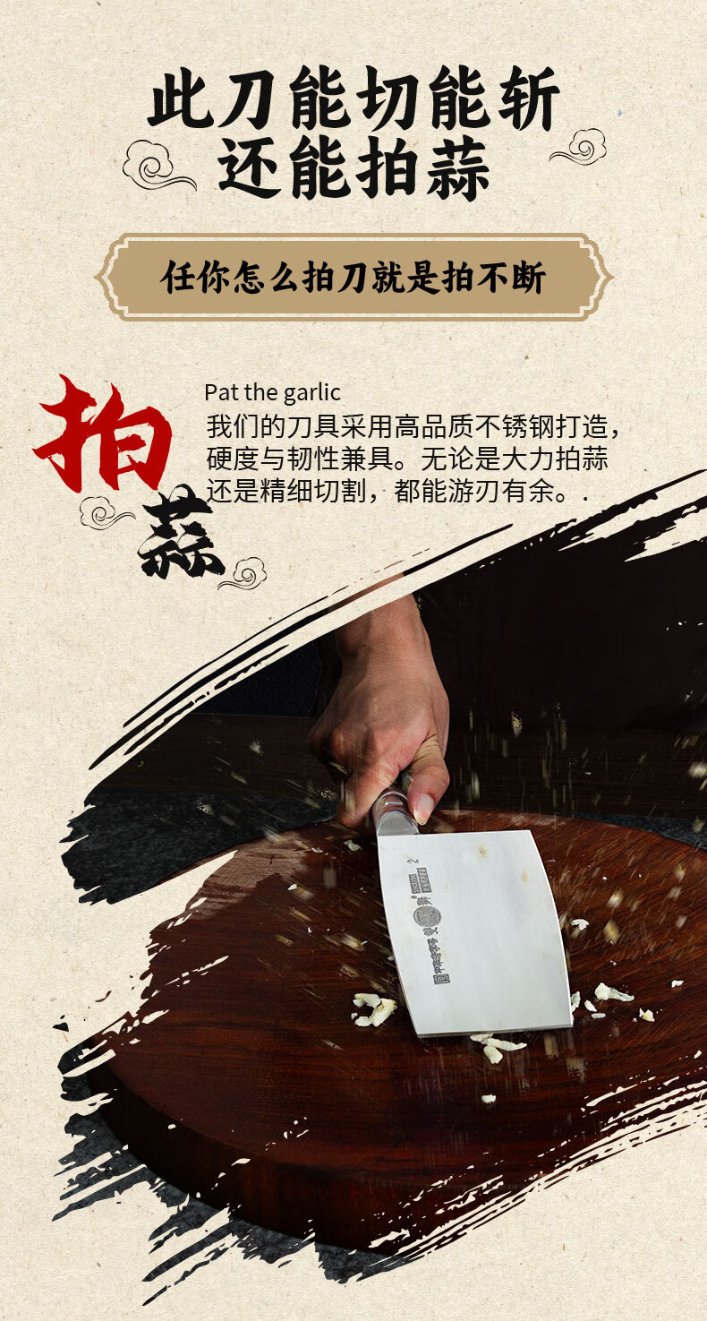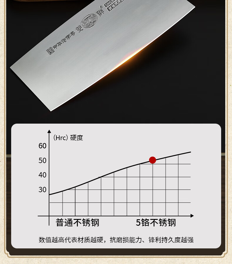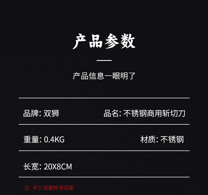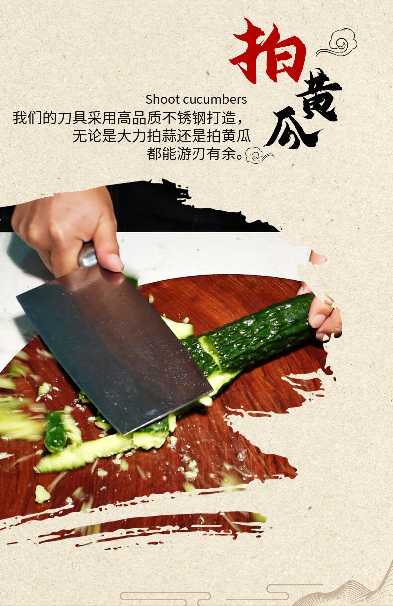 双狮菜刀钢柄切片刀家用斩切刀切菜切肉砍骨不锈钢锋利超快老式刀具 1#钢柄菜刀