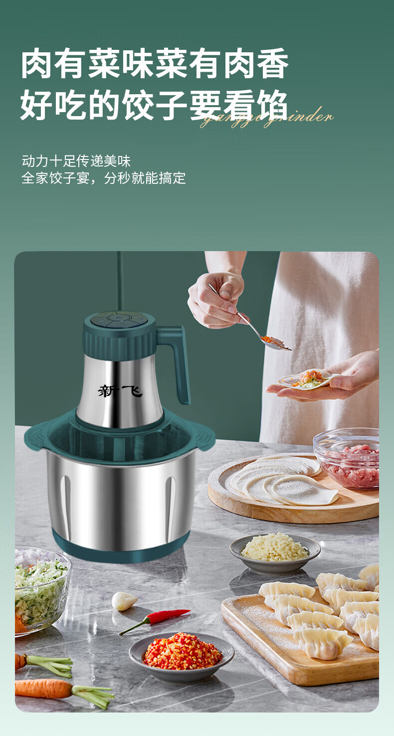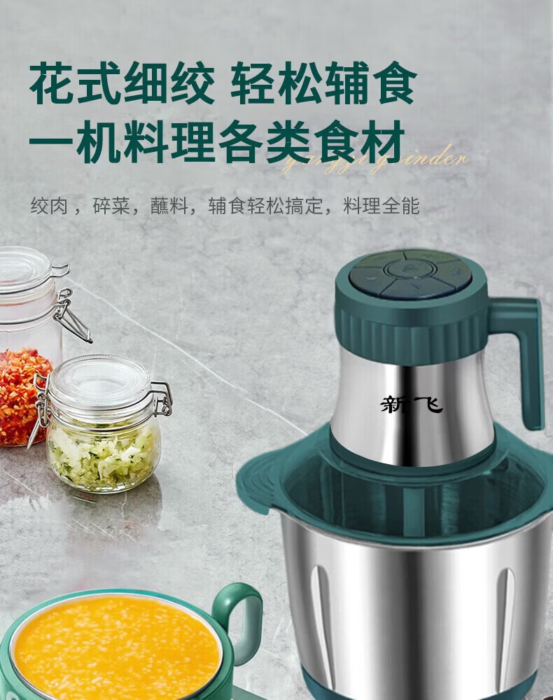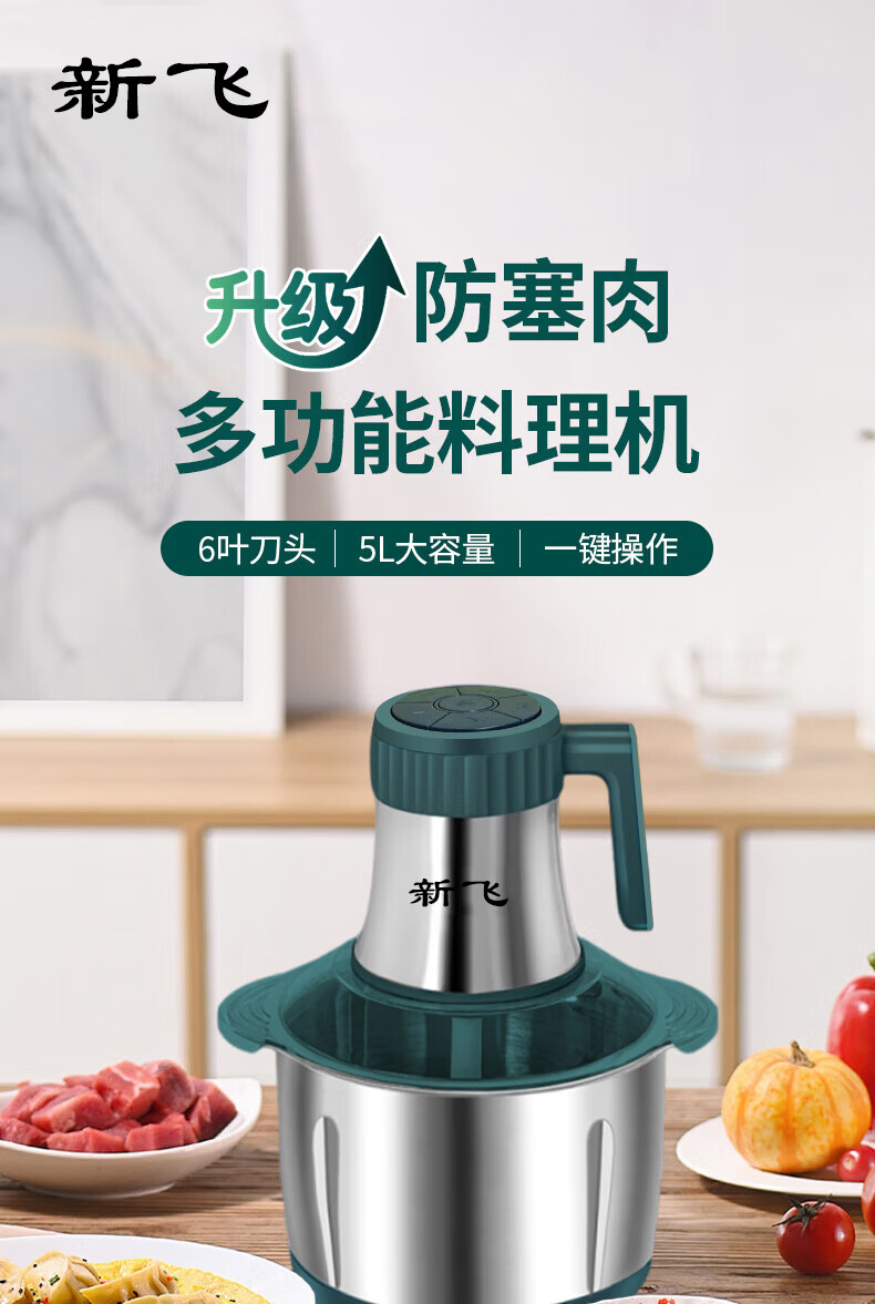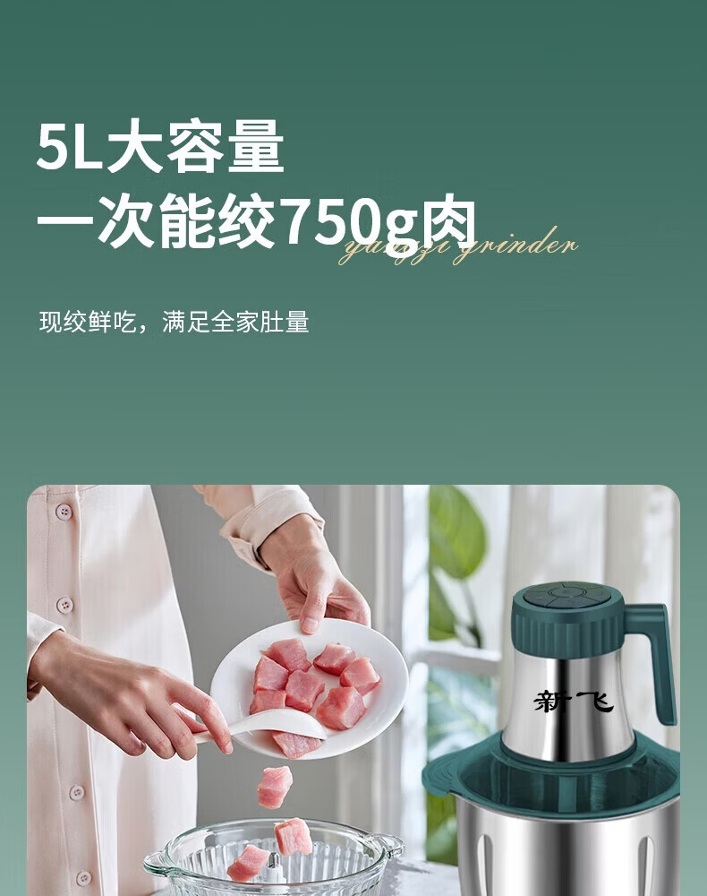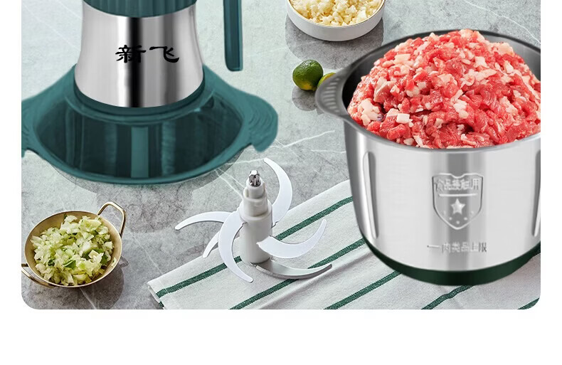 新飞【德国品质】绞肉机家用电动绞馅机商用大容量碎肉打肉机婴儿辅食机多功能料理机搅馅搅菜搅肉机 旗舰不锈钢款 5L 【二把6叶精钢刀】