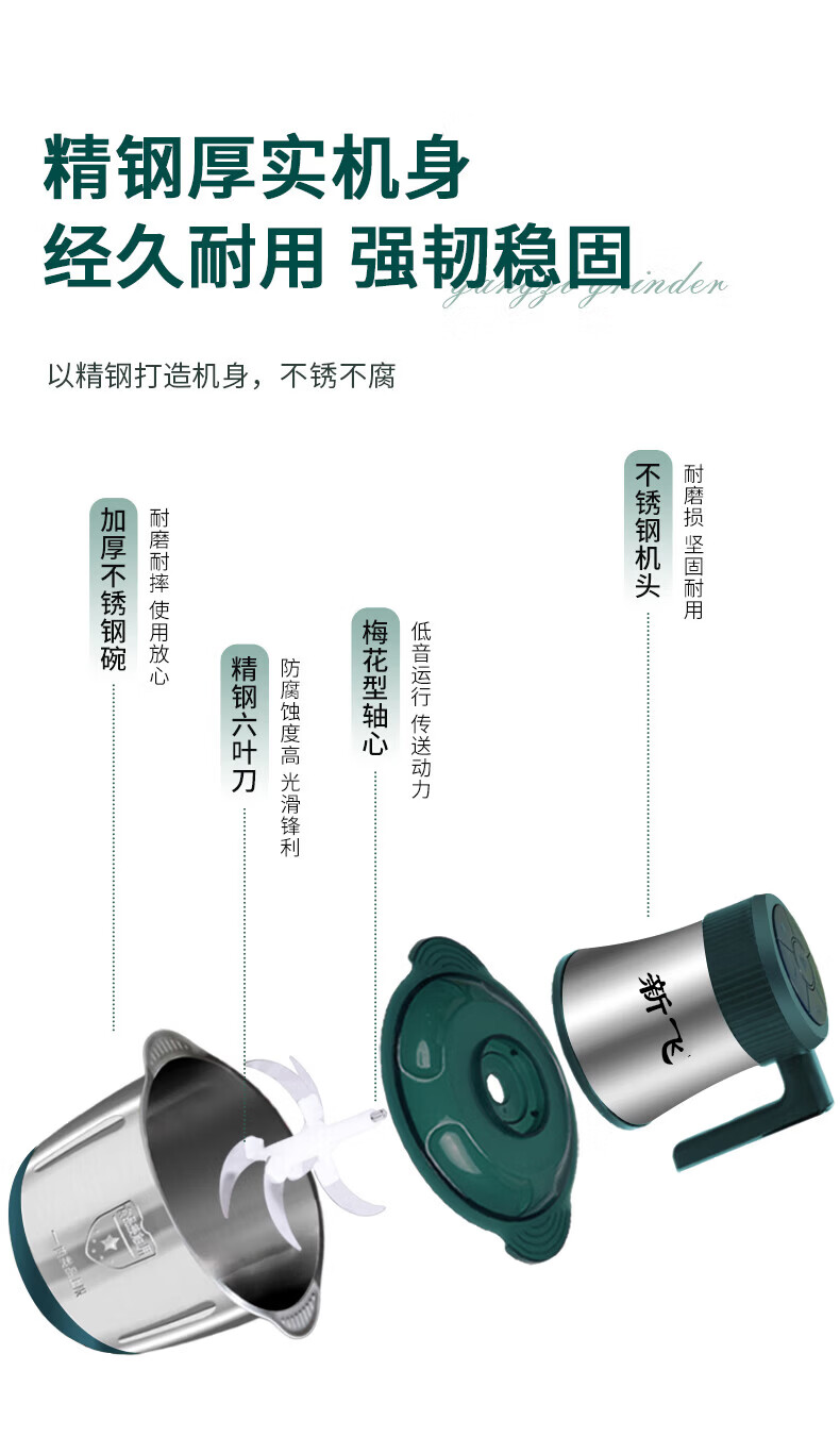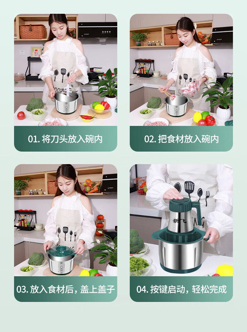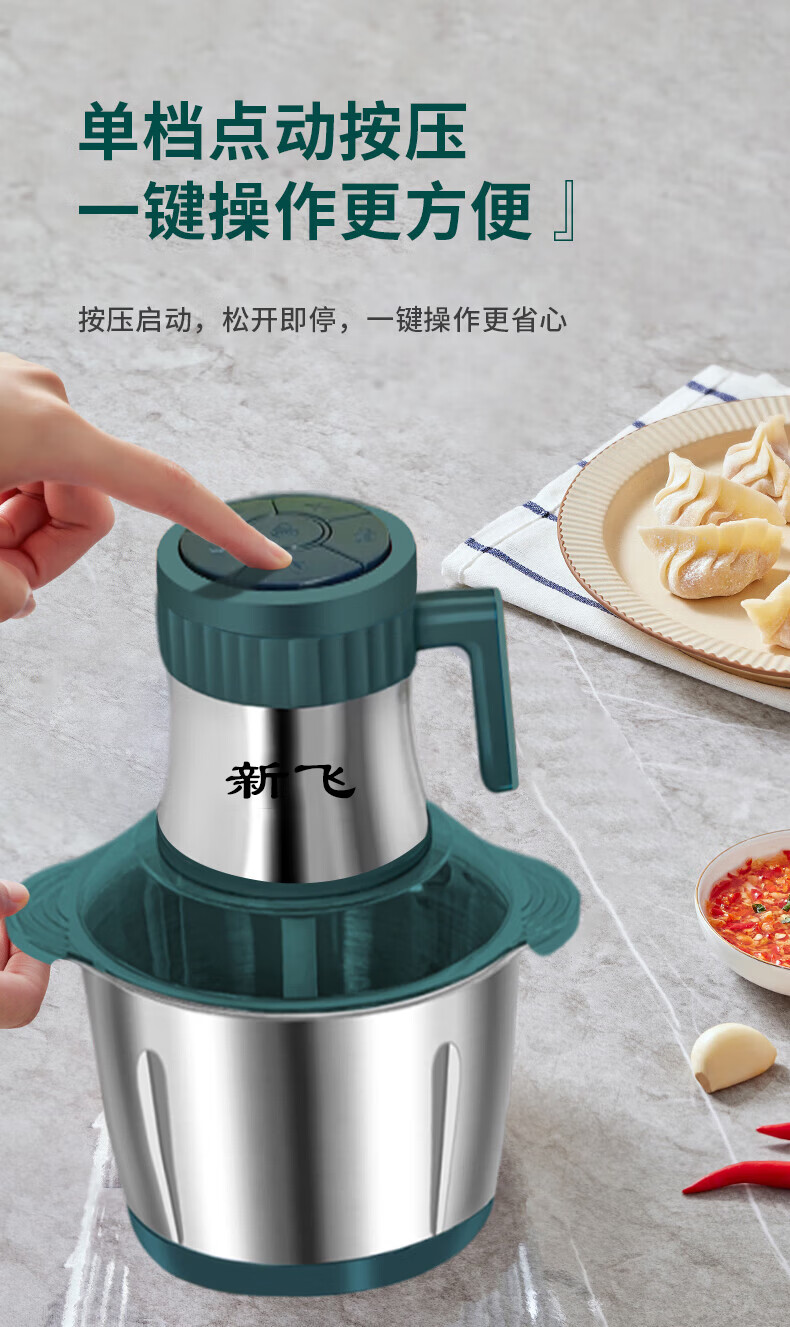 新飞【德国品质】绞肉机家用电动绞馅机商用大容量碎肉打肉机婴儿辅食机多功能料理机搅馅搅菜搅肉机 旗舰不锈钢款 5L 【二把6叶精钢刀】