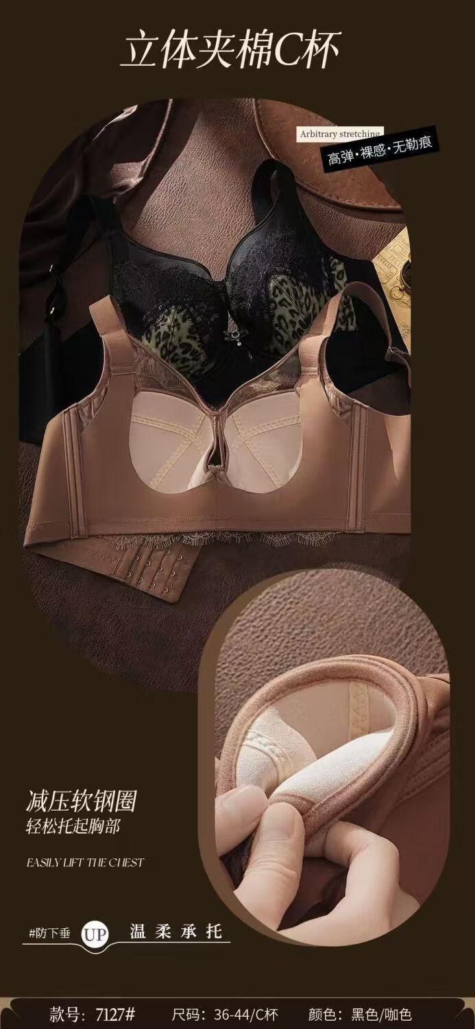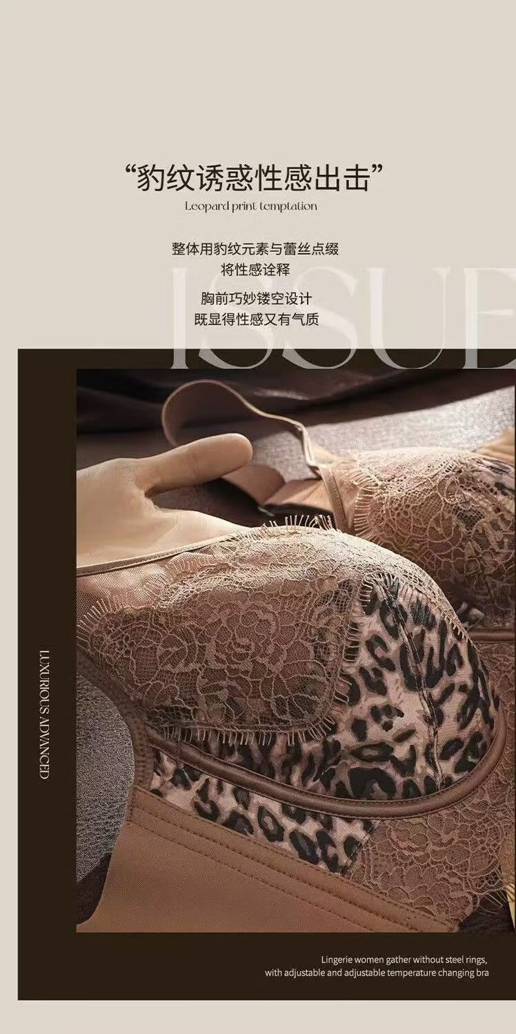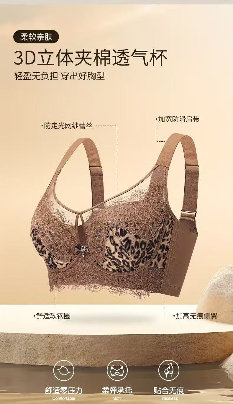 黛思侬(Daisinong)性感豹纹软钢圈调整型聚拢大码内衣超薄透气收副乳防下蕾丝文胸 黑色+豹纹 100C 44/100C