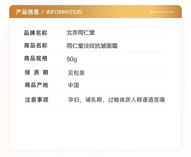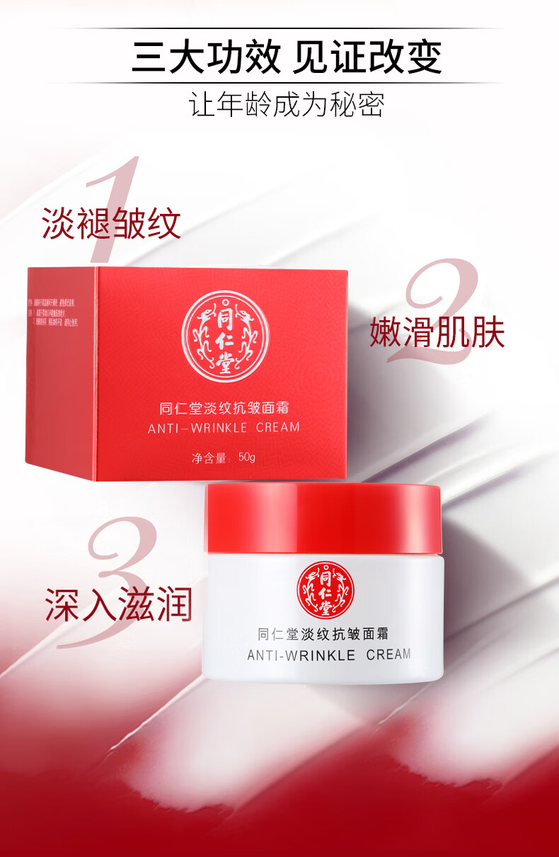 同仁堂(TRT)抗皱面霜50g 补水淡细纹鱼尾纹法令纹抬头纹眼角保湿 同仁堂黄芪抗皱精粹霜