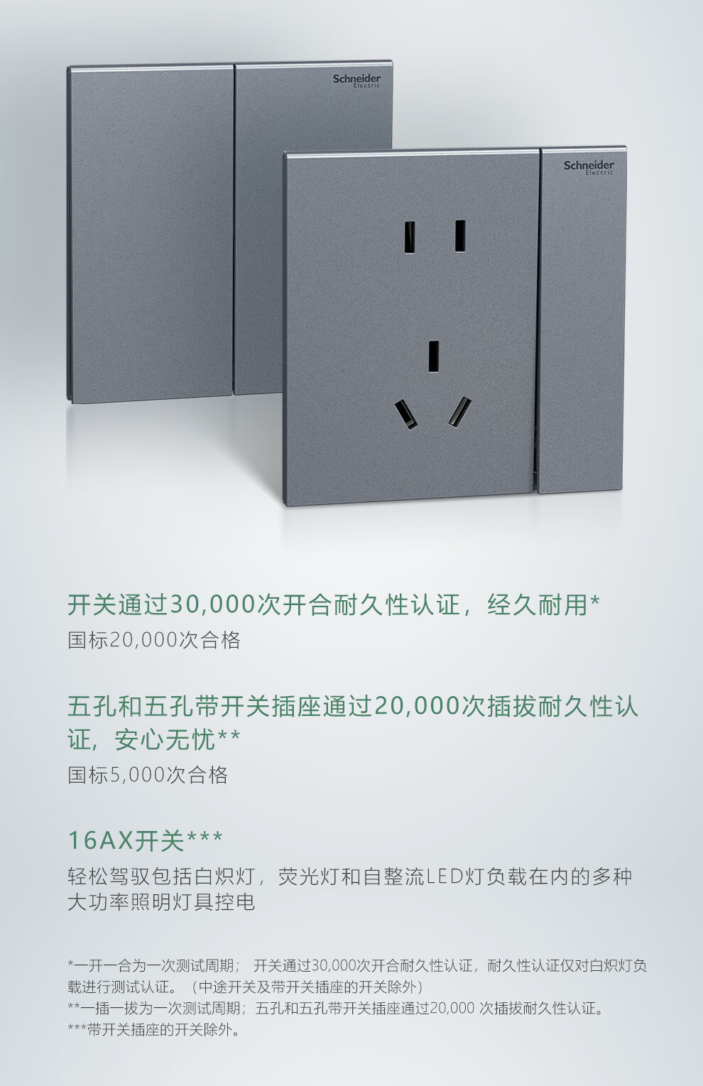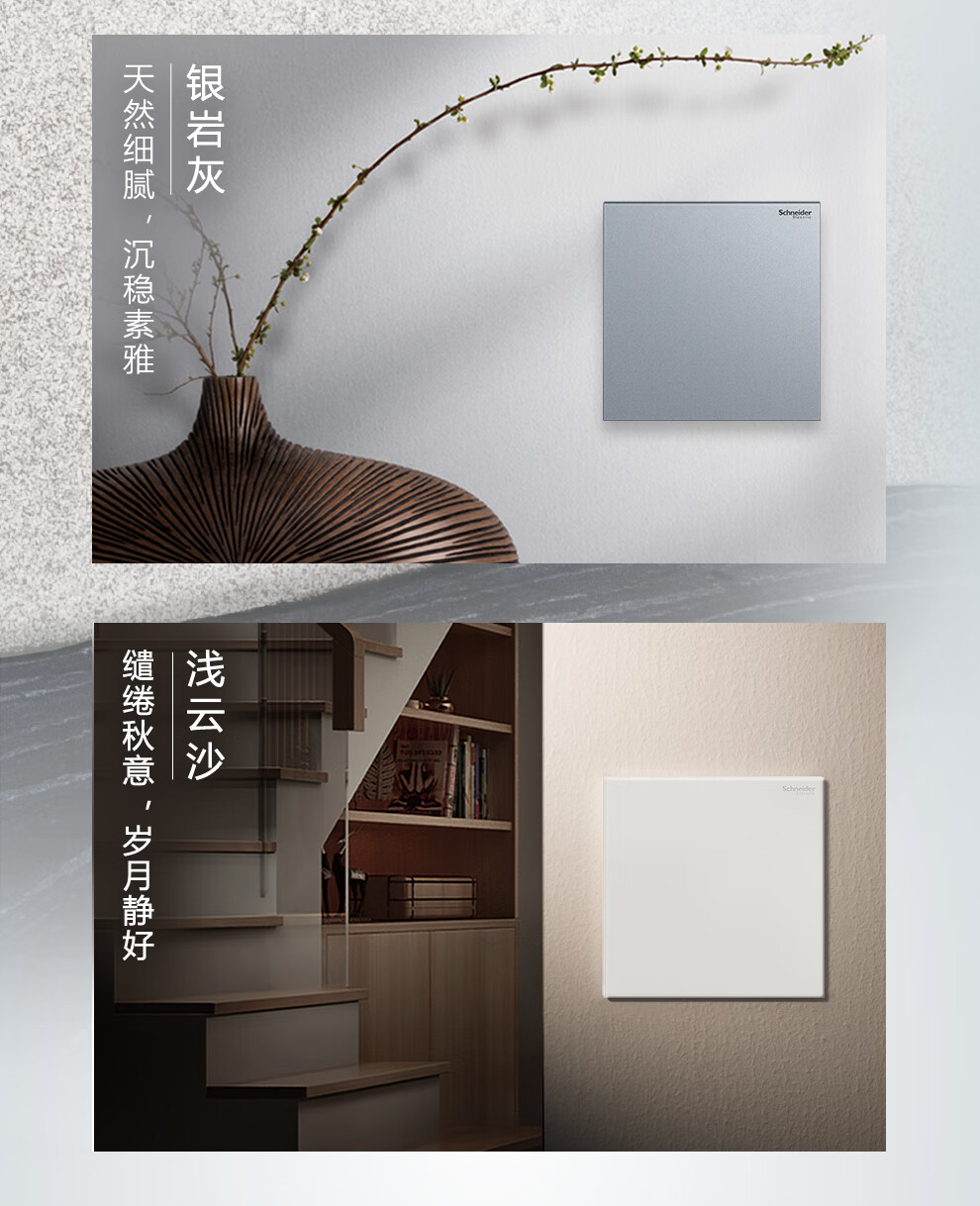 施耐德开关插座面板 家用86型 二三五孔墙壁电源插座 致铂系列银岩灰色 一位中途(滑盖式)