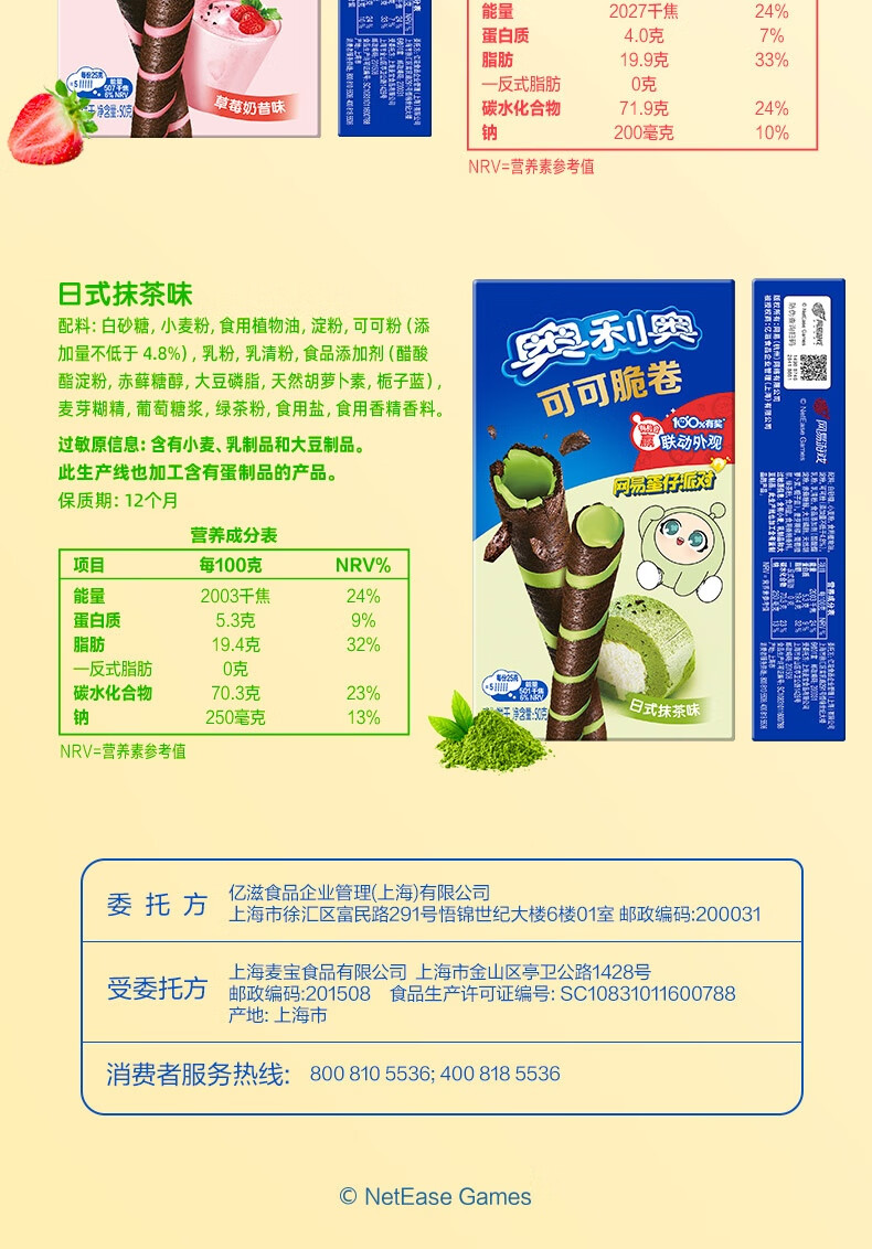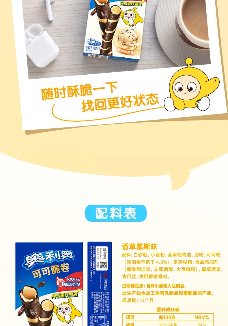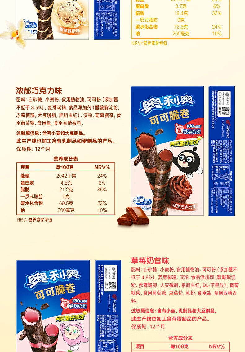 奥利奥(Oreo)可可脆卷 多口味 50g*4盒 威化饼干 休闲零食 早餐下午茶