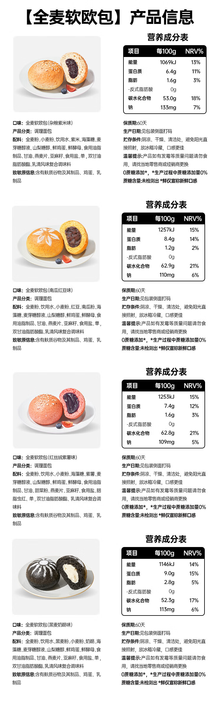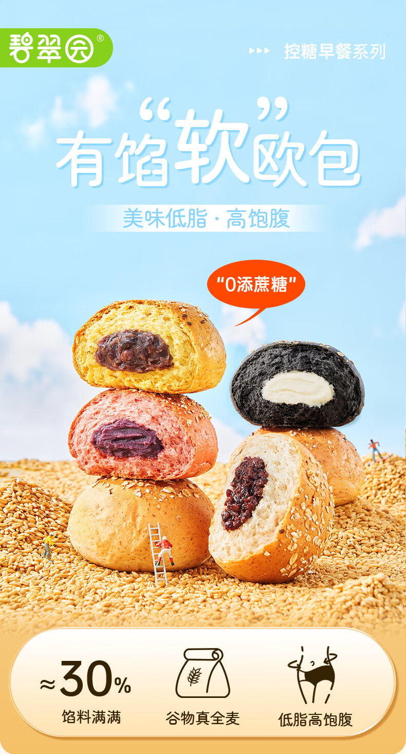 碧翠园全麦面包欧包1000g低脂肪面包早餐粗粮代餐健身休闲零食混合口味