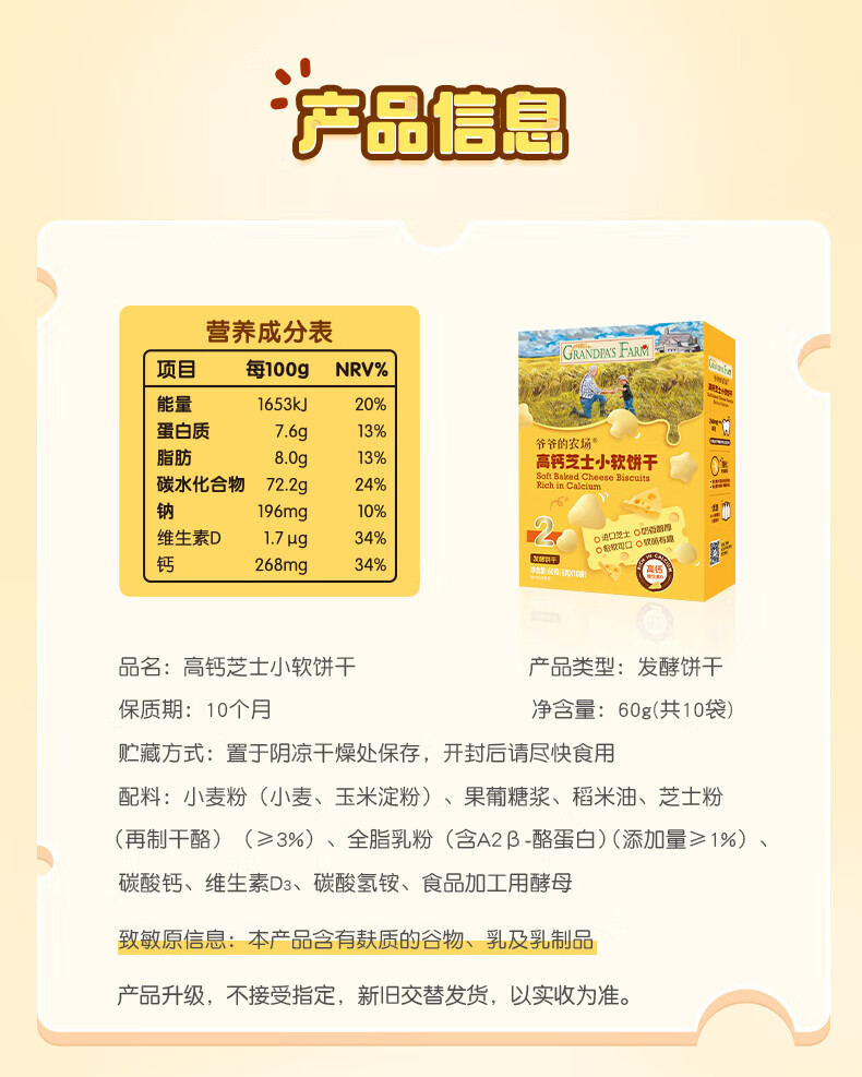 爷爷的农场高钙小软饼干 宝宝儿童零食澳洲干酪不添加白砂糖盐 出游好物60g