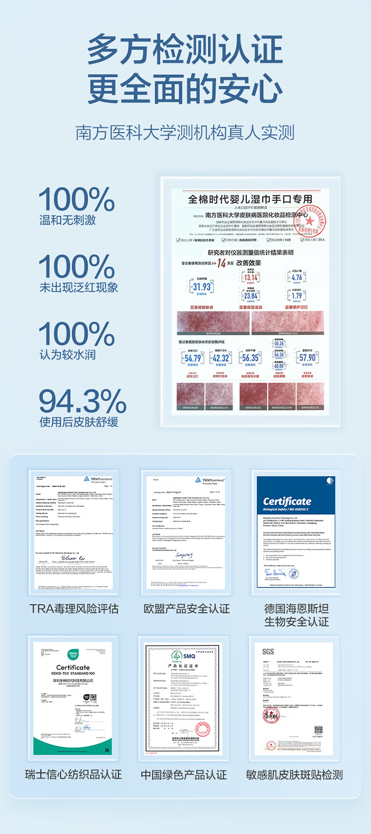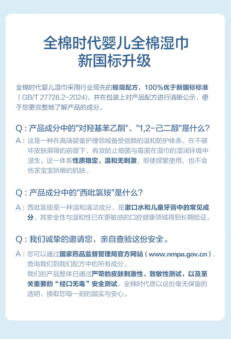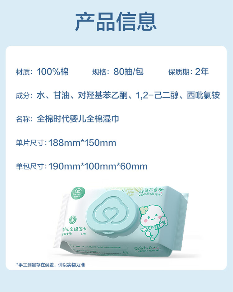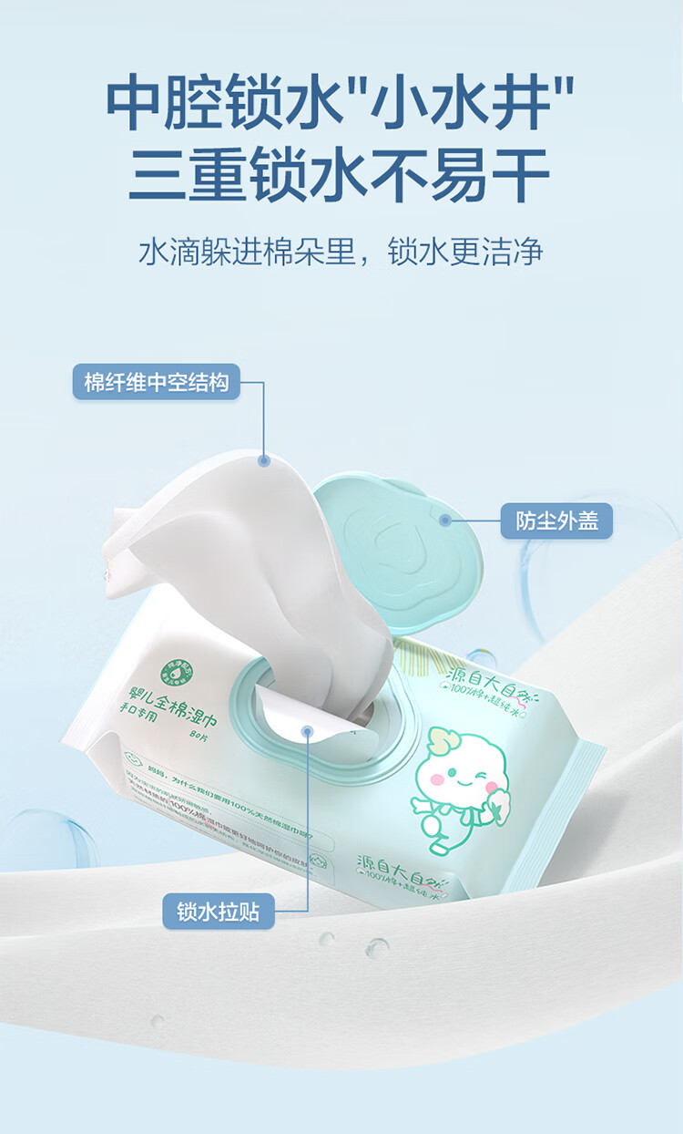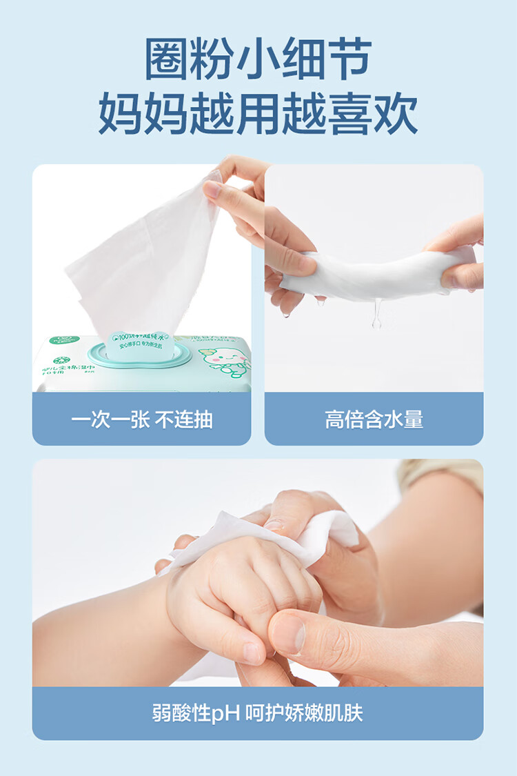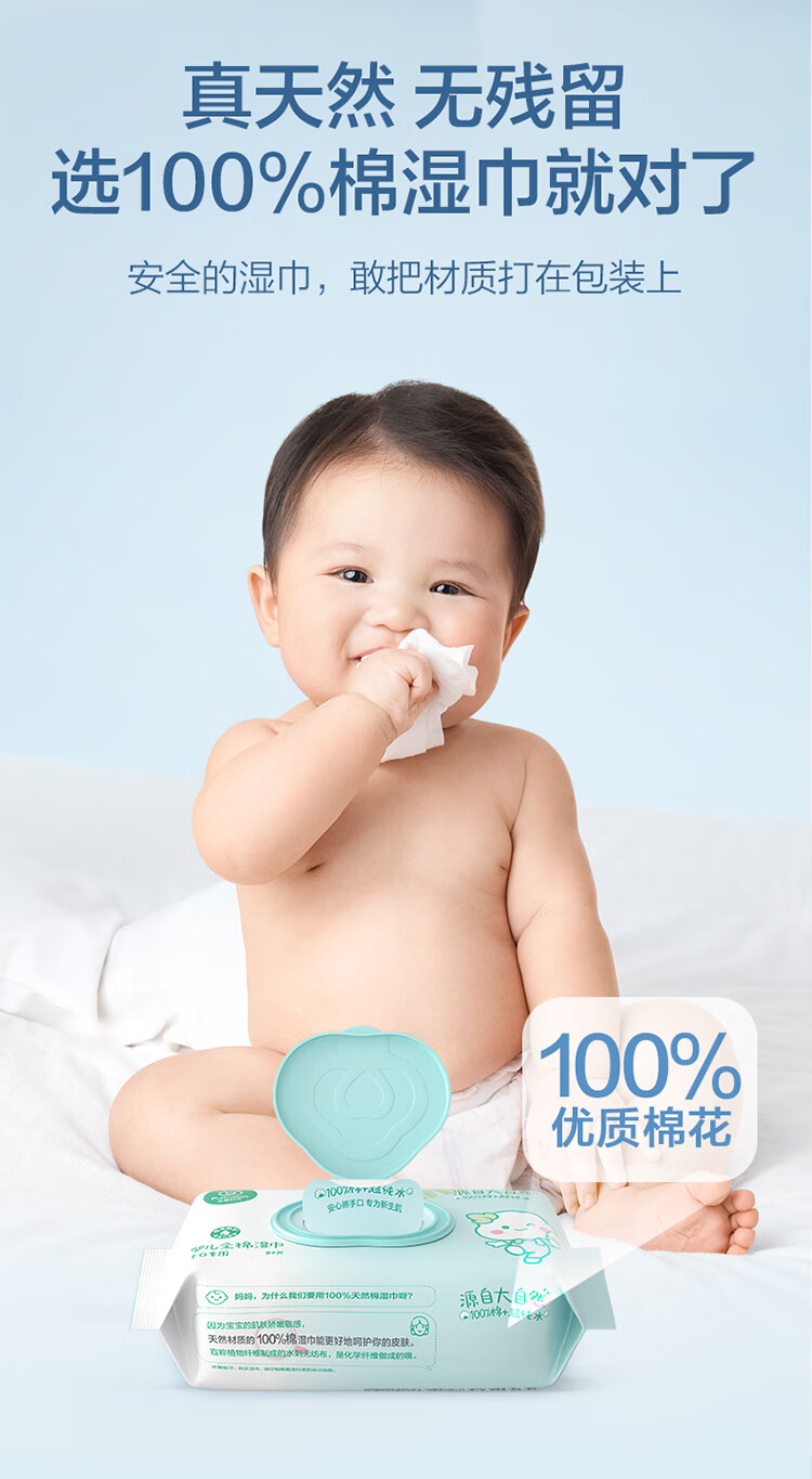 全棉时代婴儿湿巾新生儿洗脸巾手口湿纸巾成人可用100%纯棉 80抽*6包