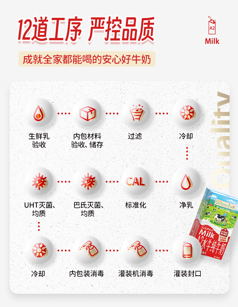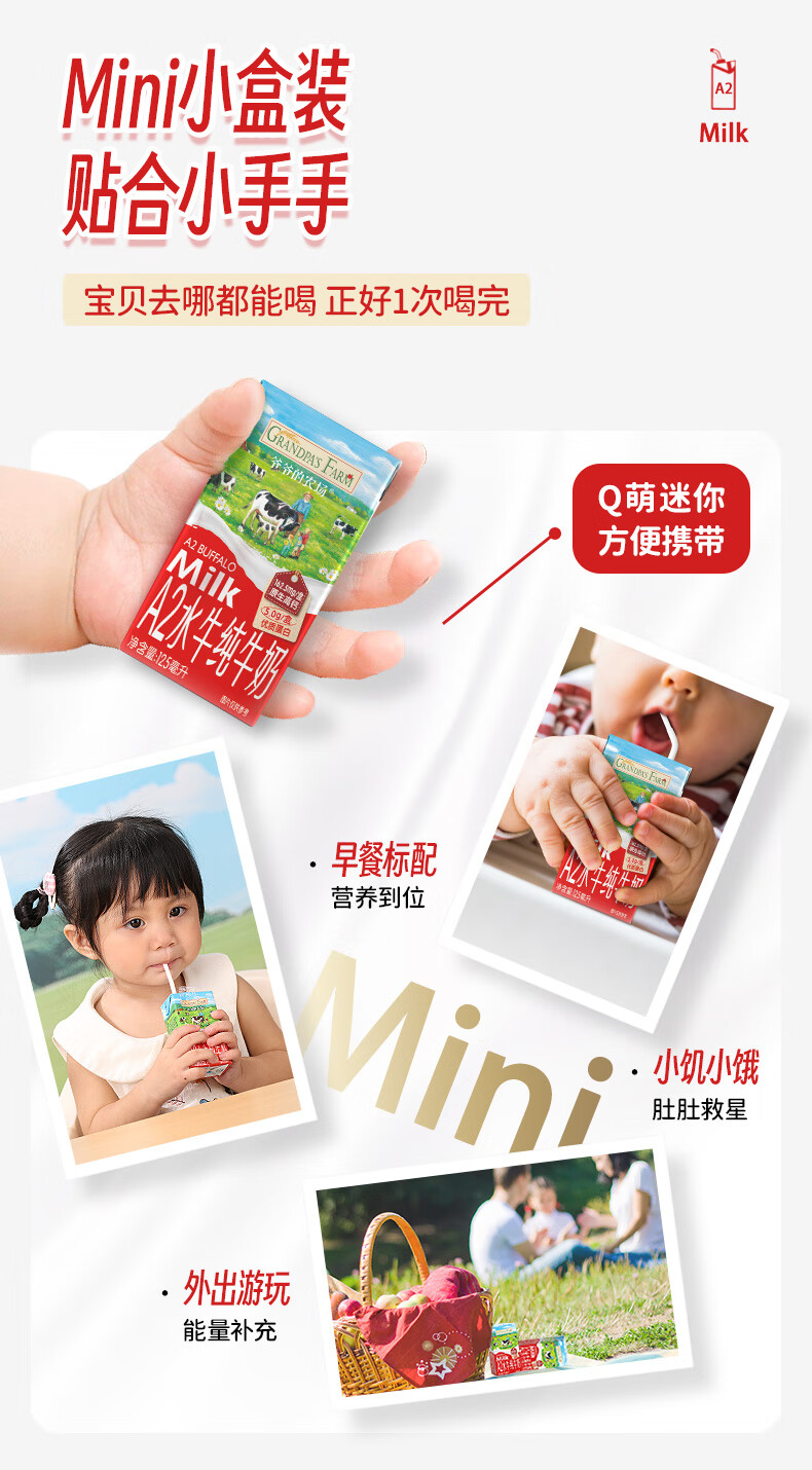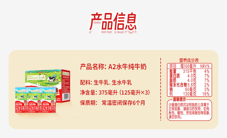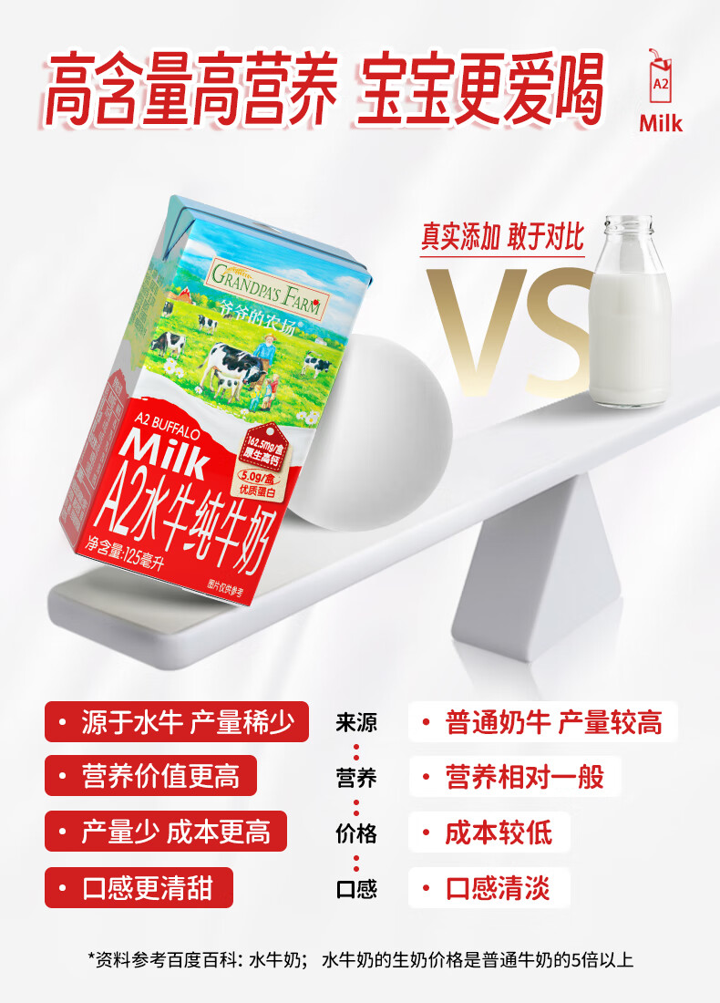 爷爷的农场A2水牛奶125ml*3盒 高钙 5g/盒优质蛋白纯牛奶儿童早餐生牛乳