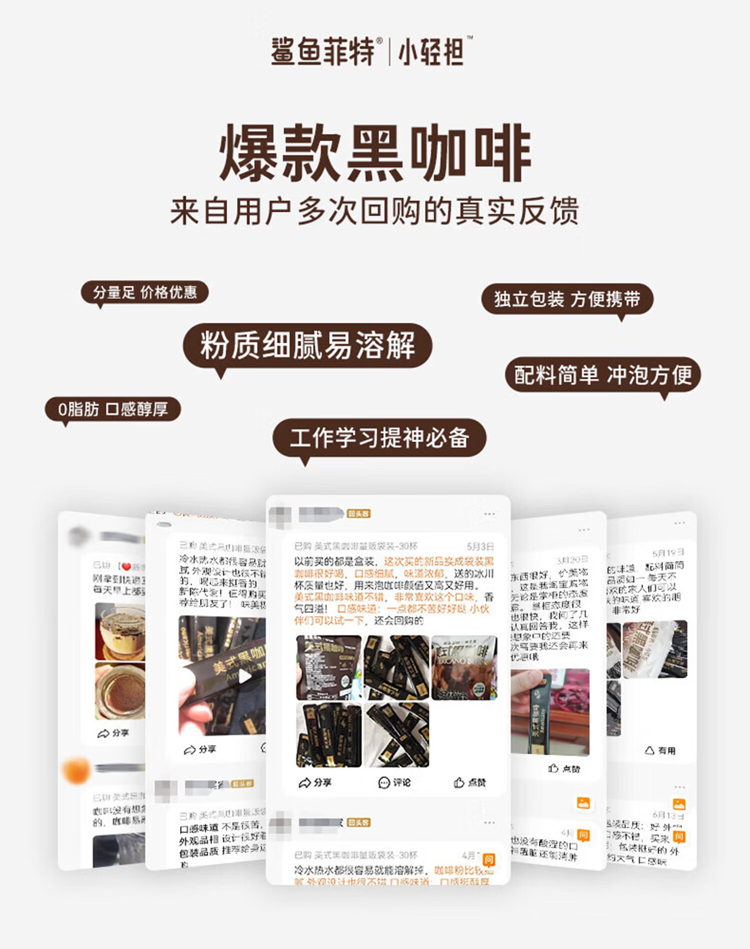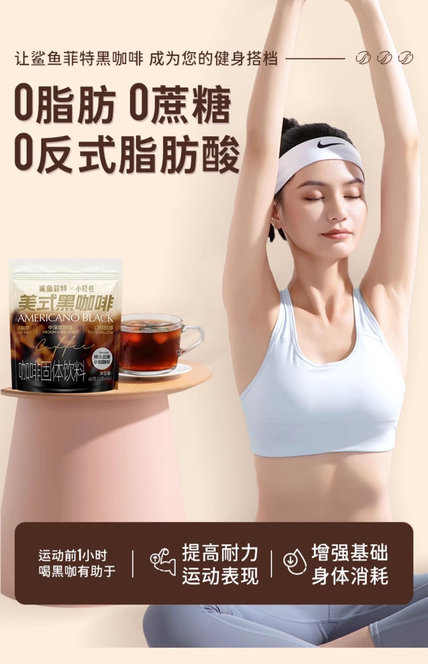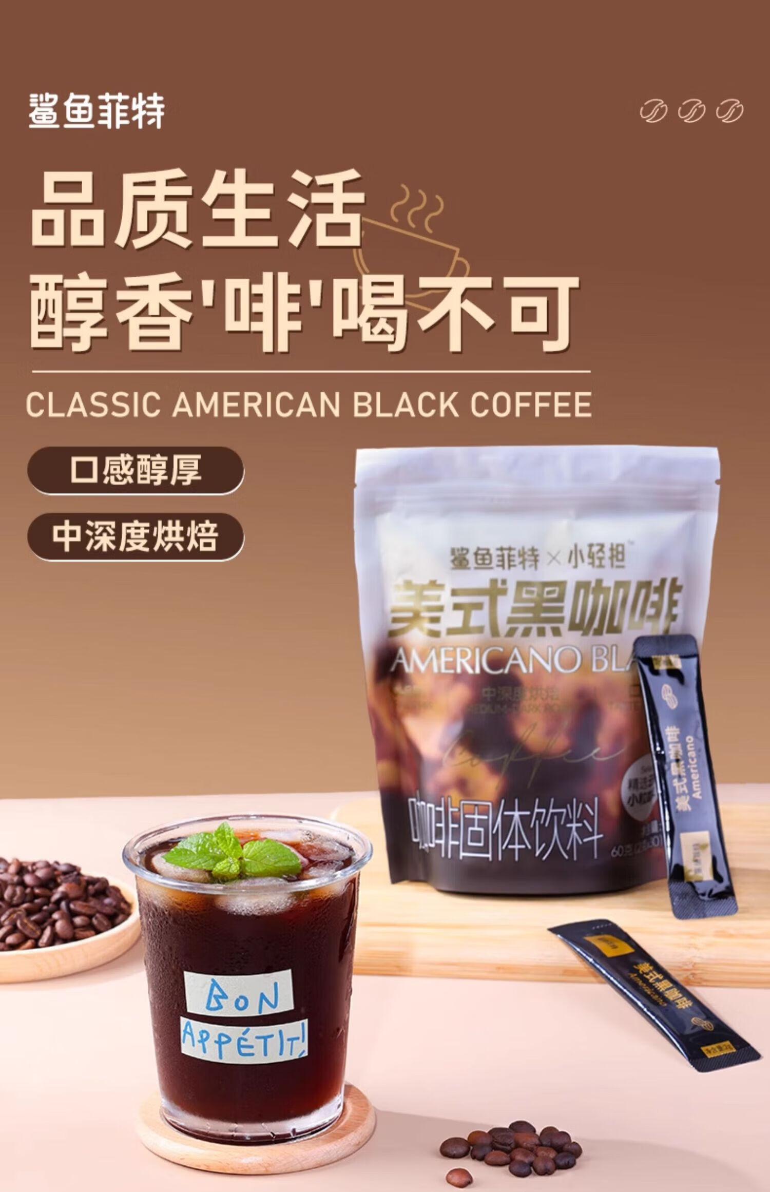 鲨鱼菲特(SHARKFIT)美式黑咖啡运动健身减燃0脂0蔗糖速溶粉即饮手冲提神控卡小轻担 量贩袋装黑咖啡-可泡90杯(30条*3袋)