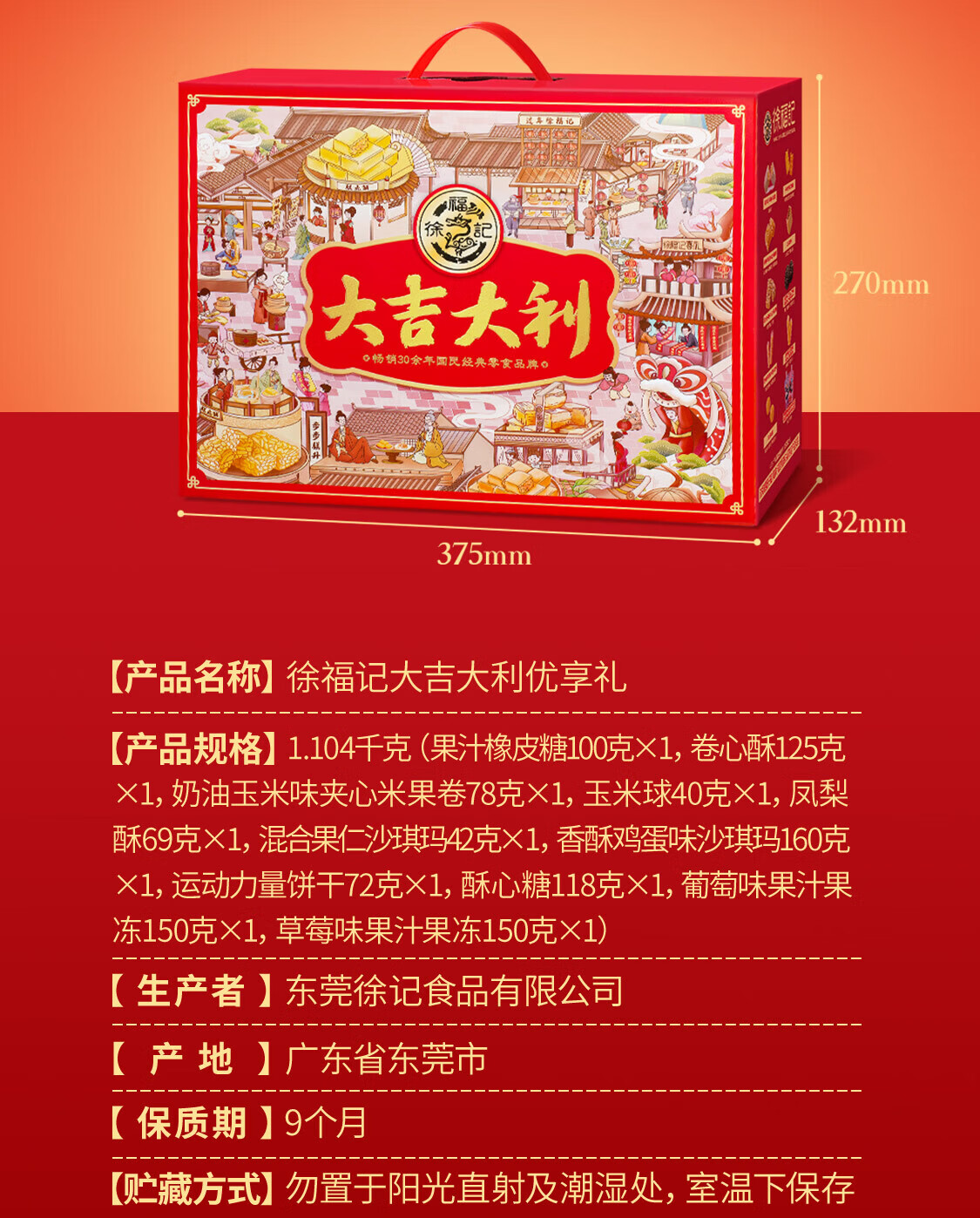 徐福记大吉大利优享礼盒 宅家零食大礼包1104g 新年送礼精美礼盒