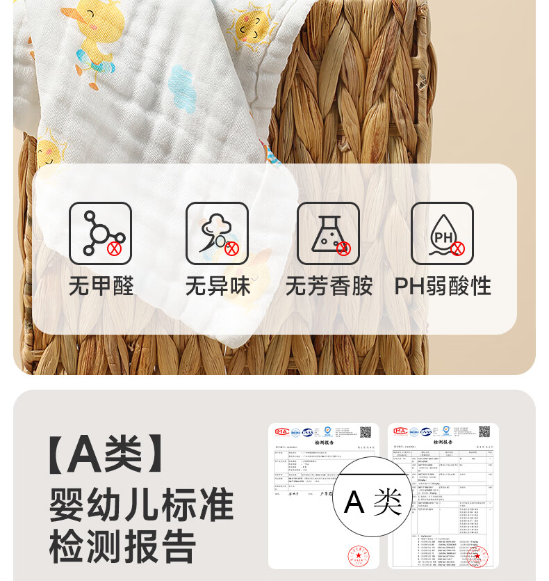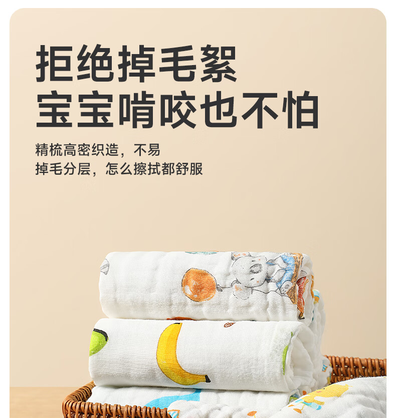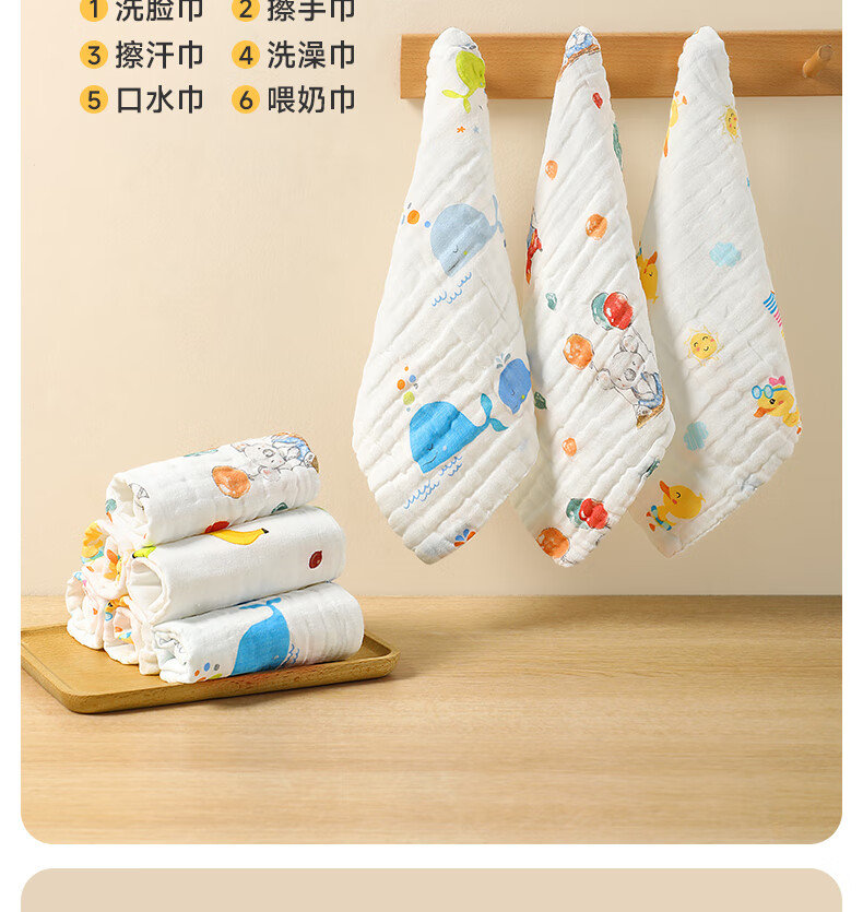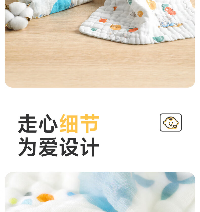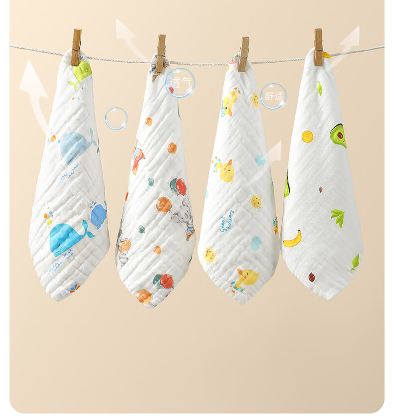 洁丽雅(Grace)毛巾纯棉A类儿童毛巾洗脸纱布巾4条装口水巾儿童宝宝洗脸方巾