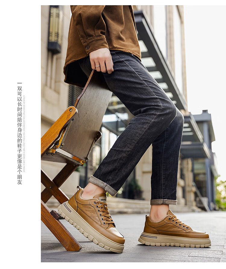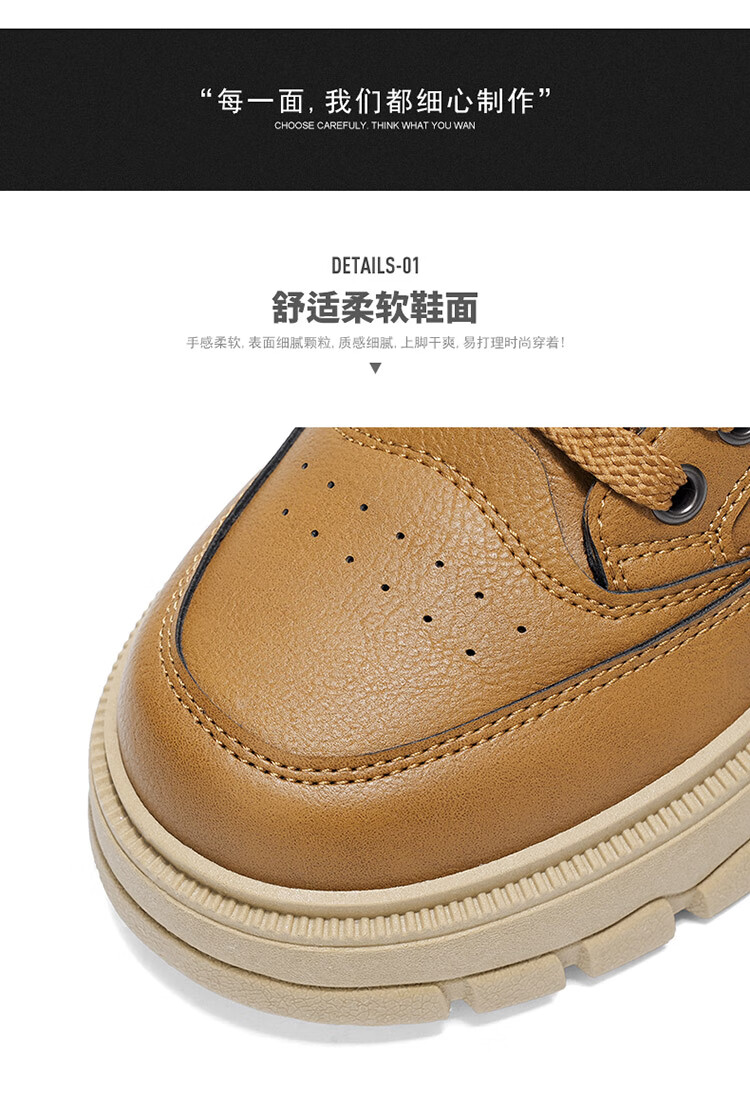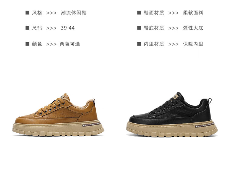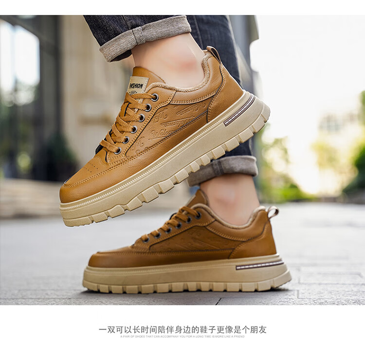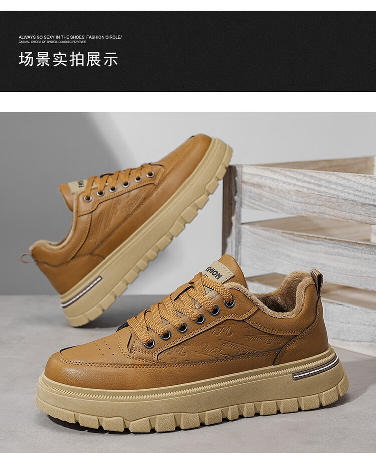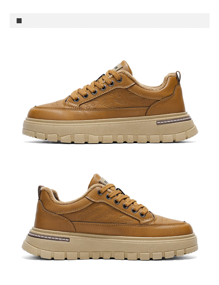 稻草人(MEXICAN)鞋子男鞋冬季加绒皮鞋男士棕色二棉鞋防滑防水工作保暖板鞋劳保鞋 麦色 40