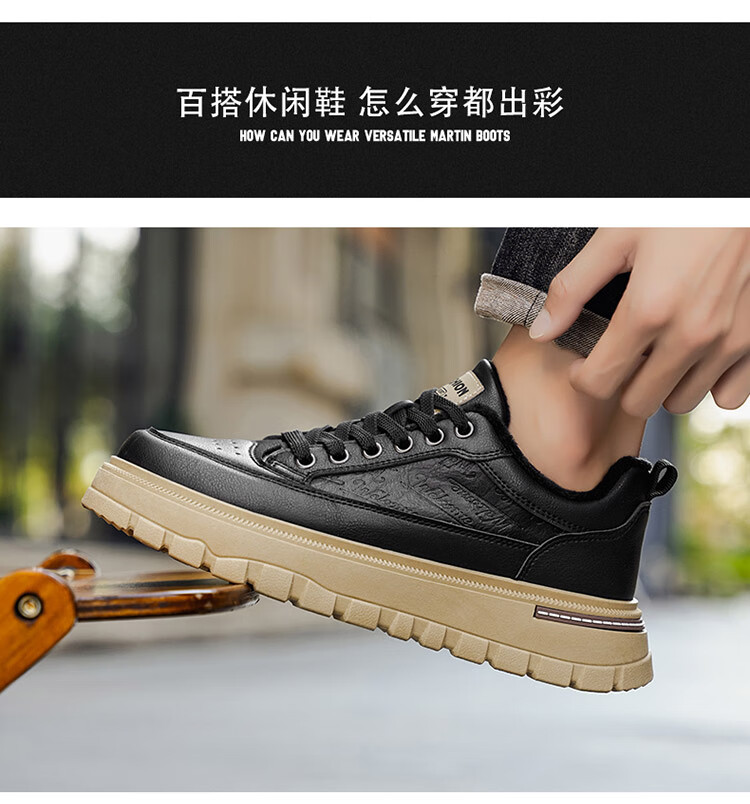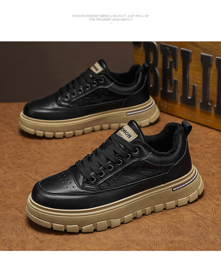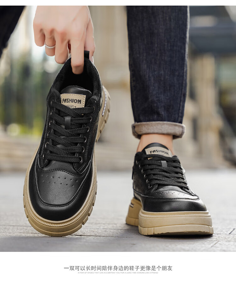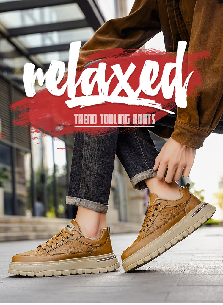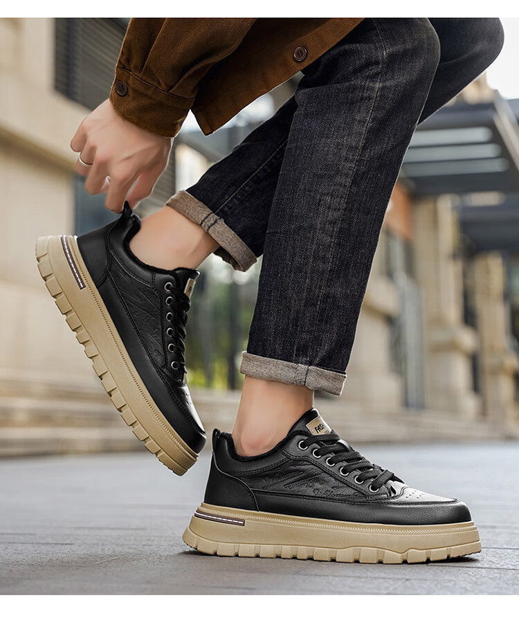 稻草人(MEXICAN)鞋子男鞋冬季加绒皮鞋男士棕色二棉鞋防滑防水工作保暖板鞋劳保鞋 麦色 40