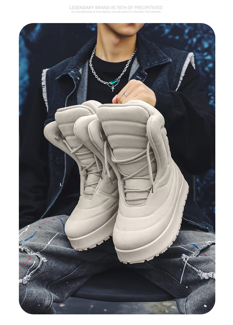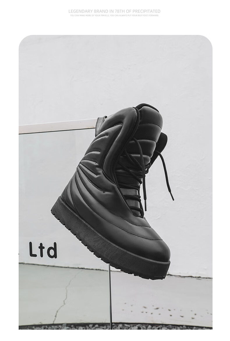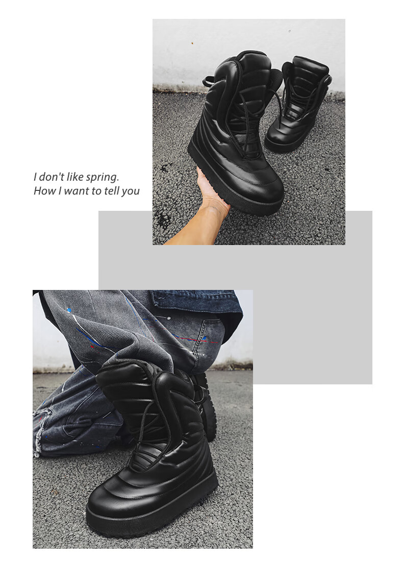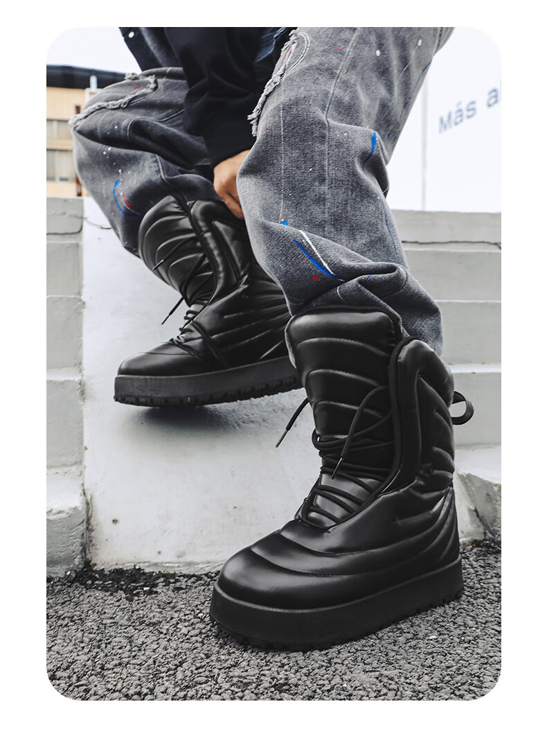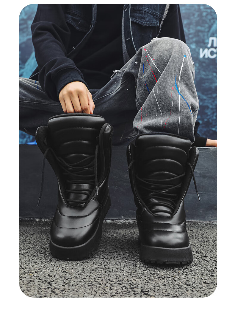 稻草人(MEXICAN)男款冬季高帮板鞋大码加厚保暖面包鞋45超轻防水厚底雪地靴二棉鞋 黑色 41