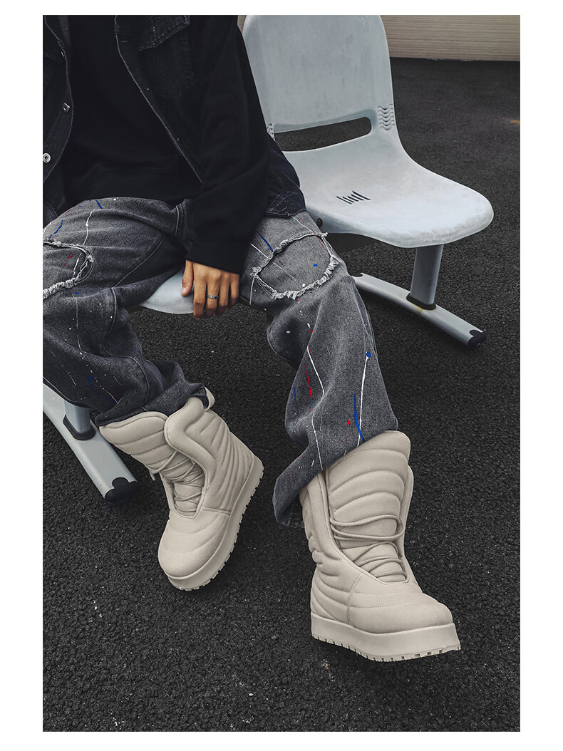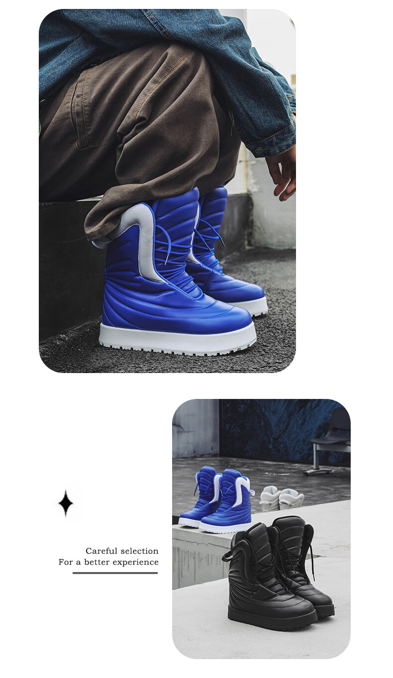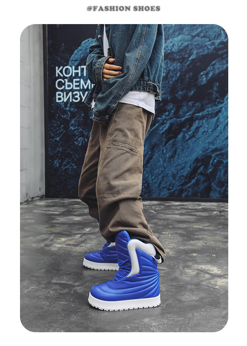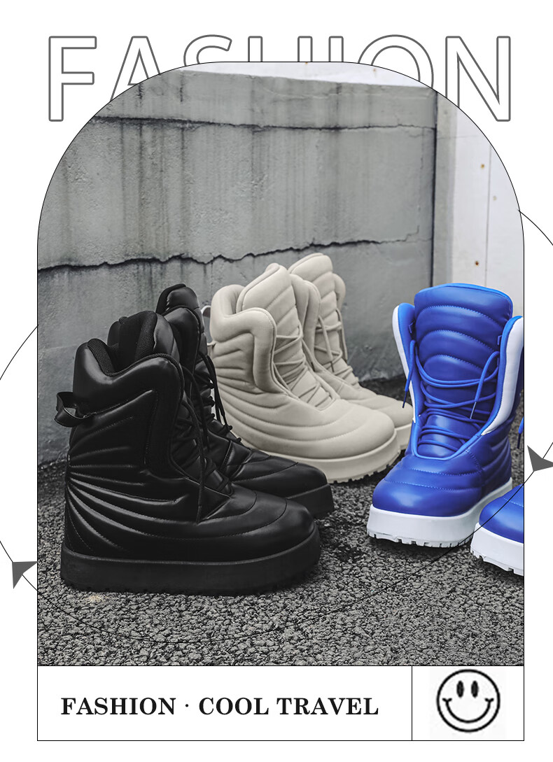 稻草人(MEXICAN)男款冬季高帮板鞋大码加厚保暖面包鞋45超轻防水厚底雪地靴二棉鞋 黑色 41