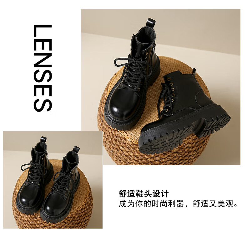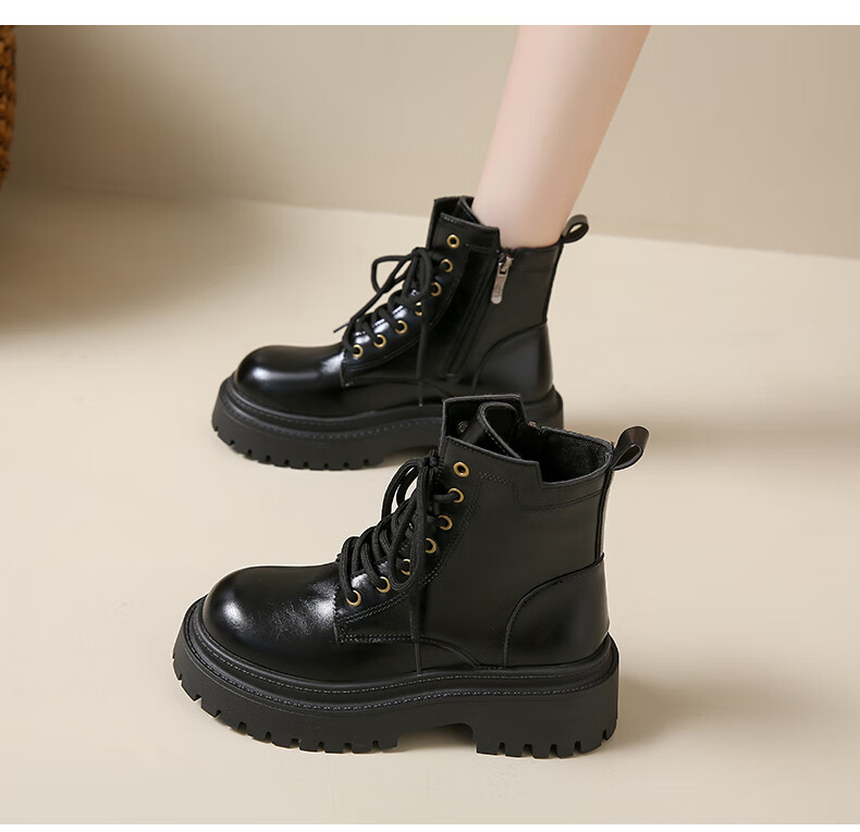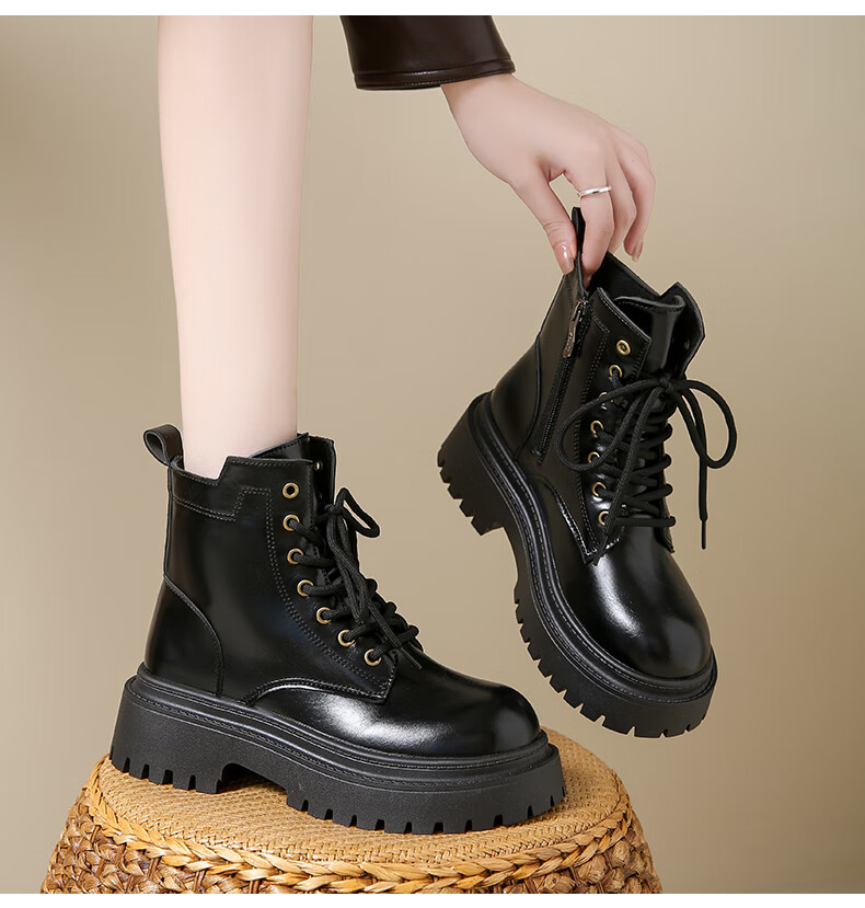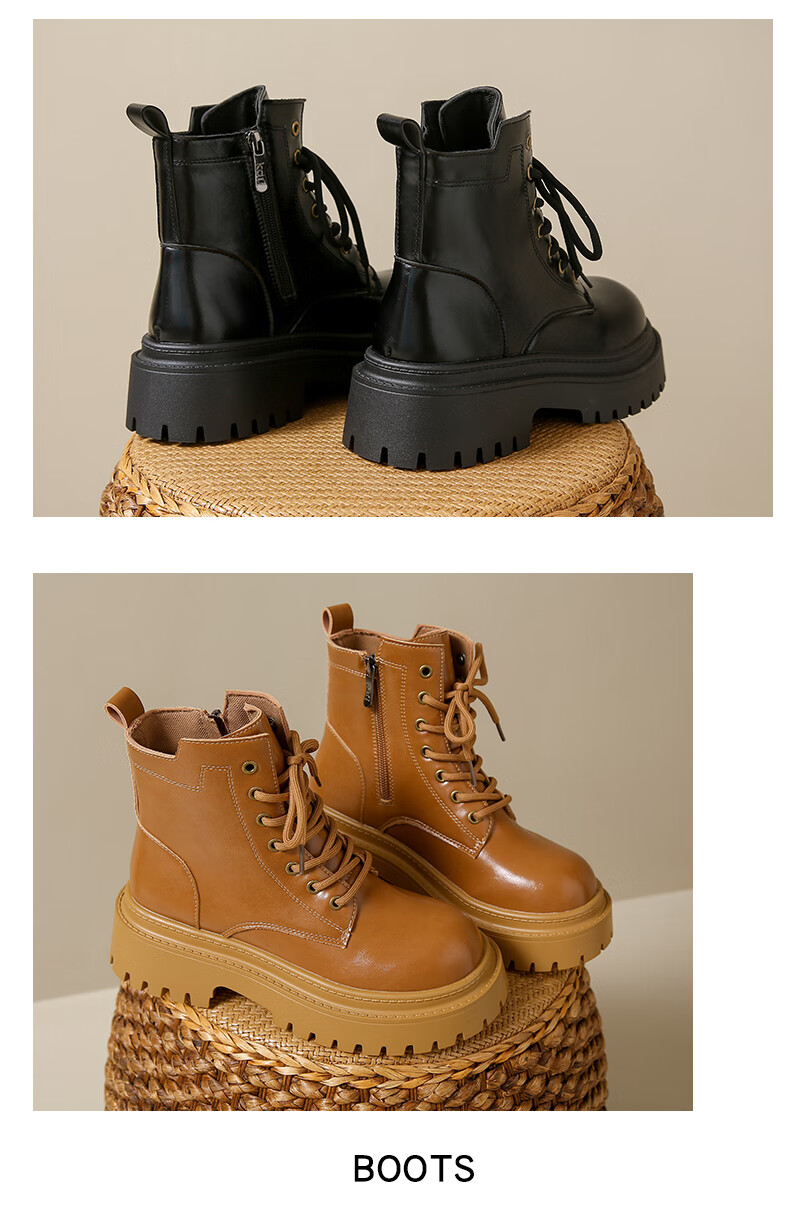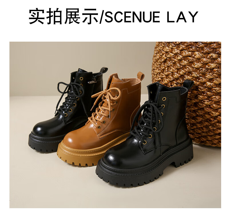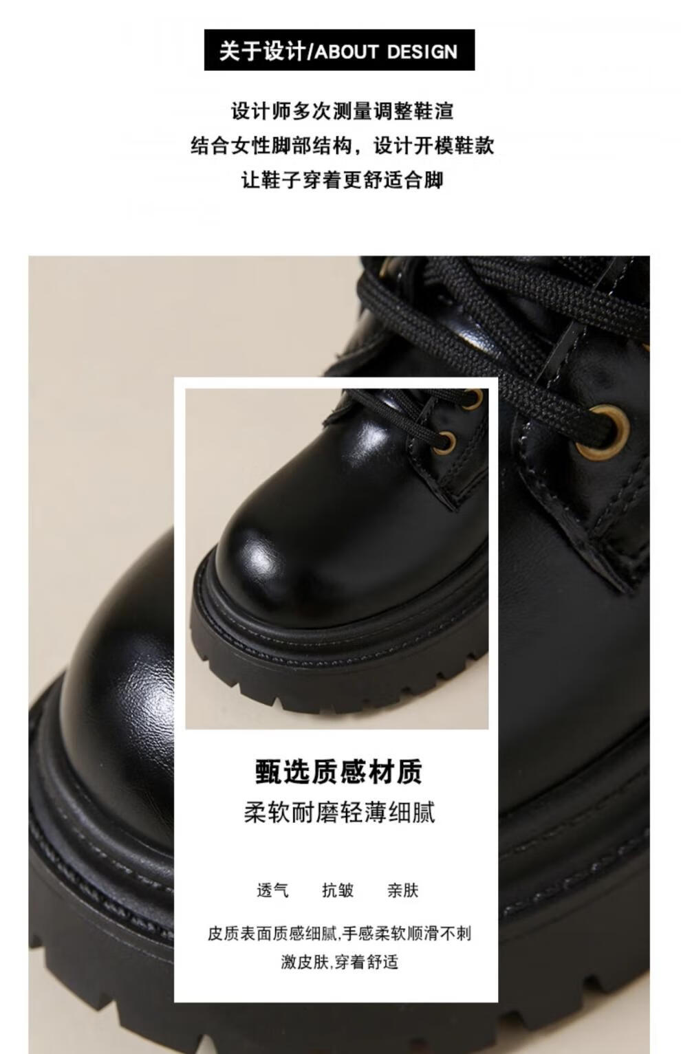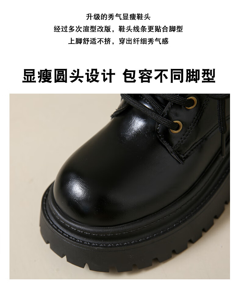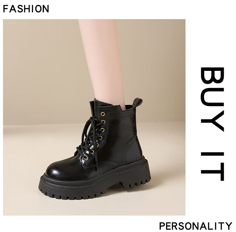 稻草人(MEXICAN)厚底马丁靴女款加绒靴子2026新款秋冬季英伦风增高短靴覆古机车靴 黑色单里 35