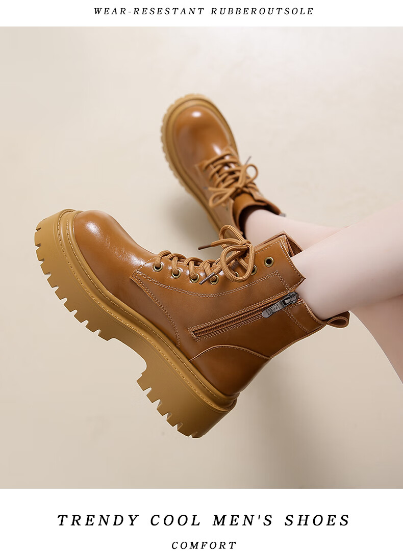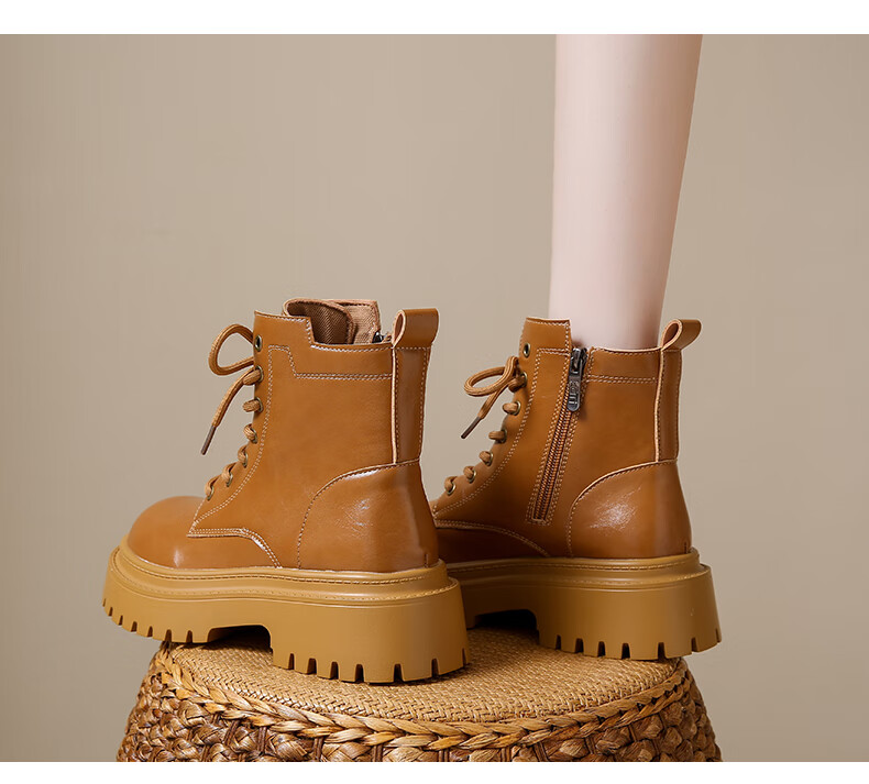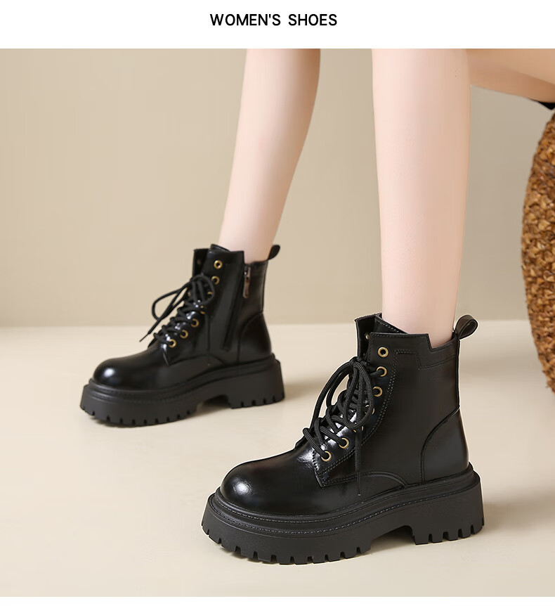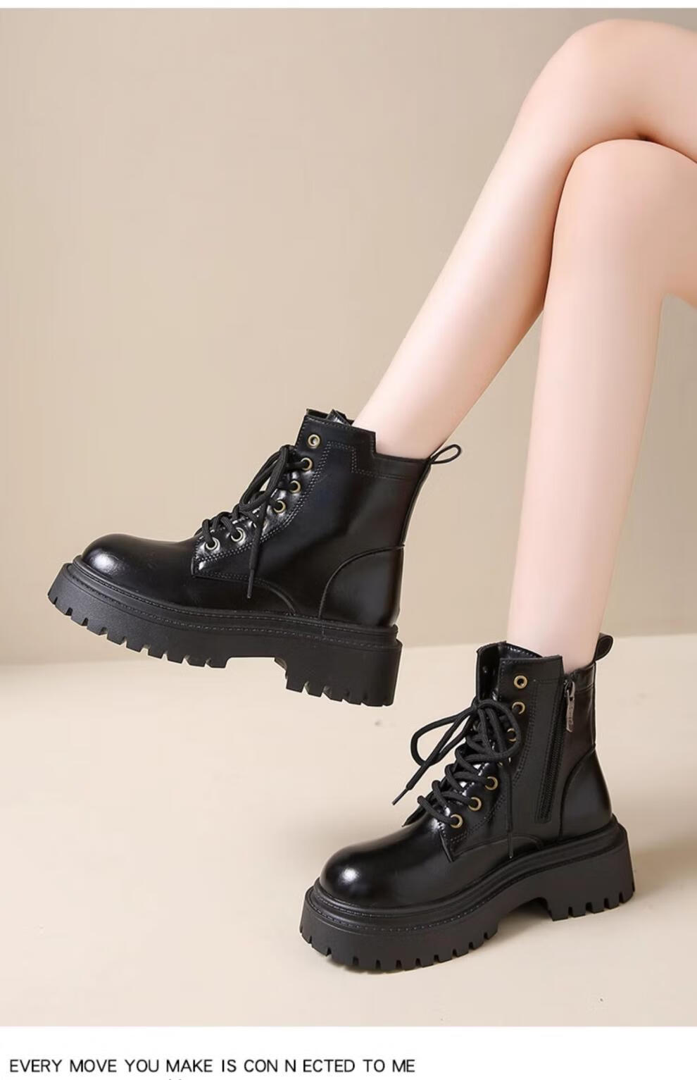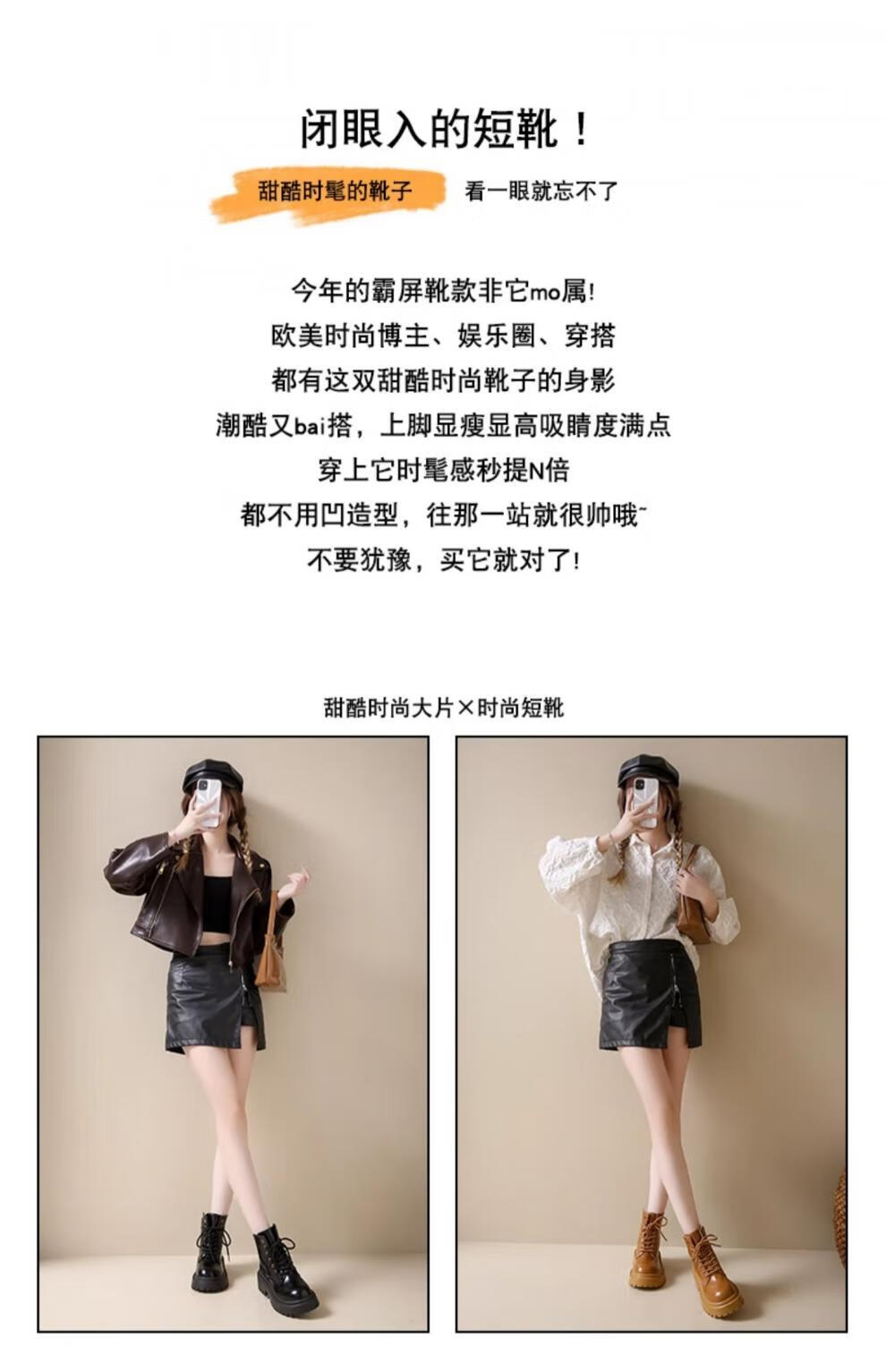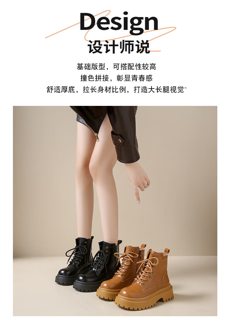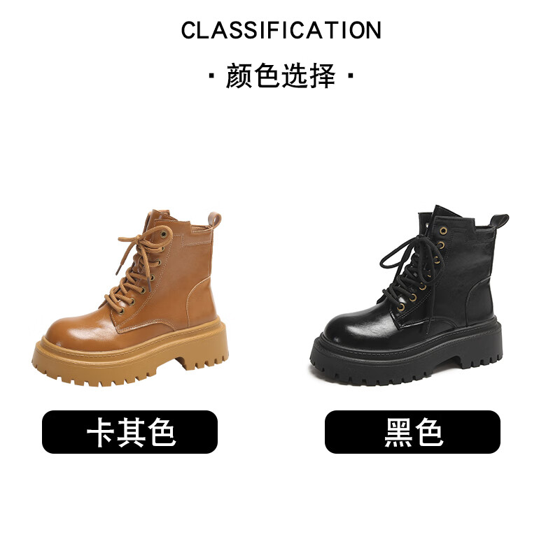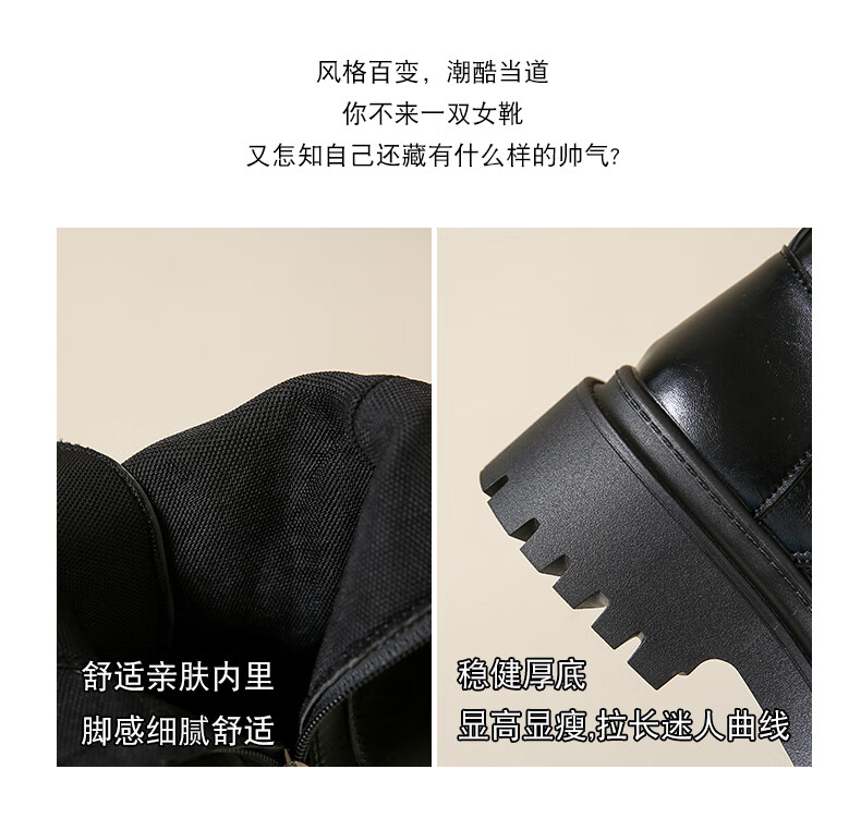 稻草人(MEXICAN)厚底马丁靴女款加绒靴子2026新款秋冬季英伦风增高短靴覆古机车靴 黑色单里 35