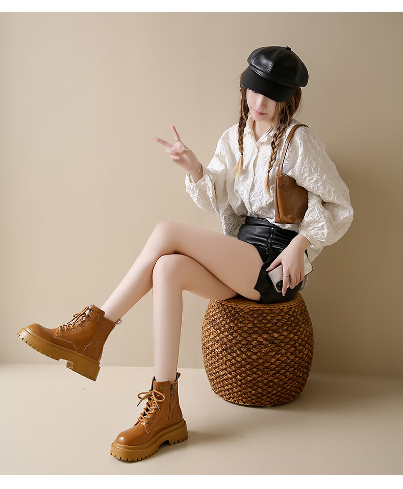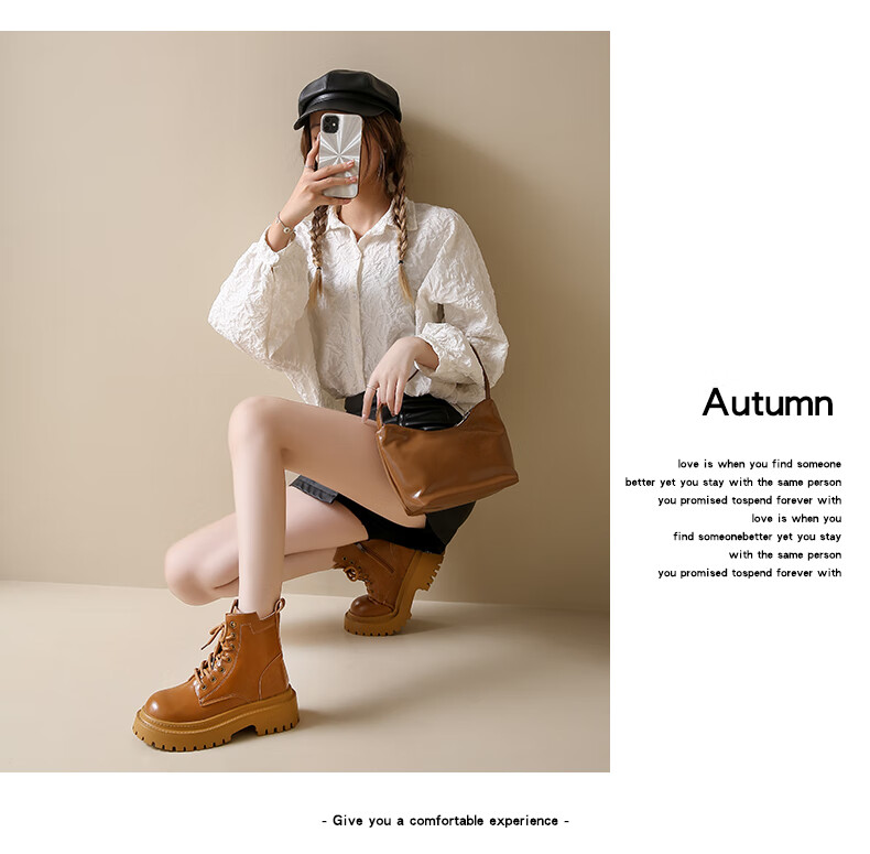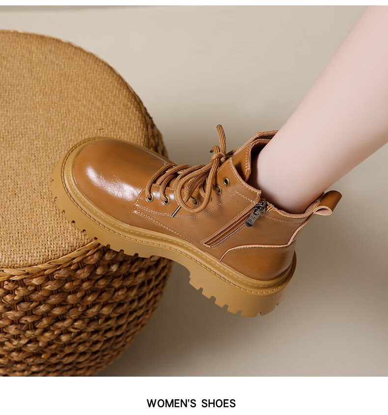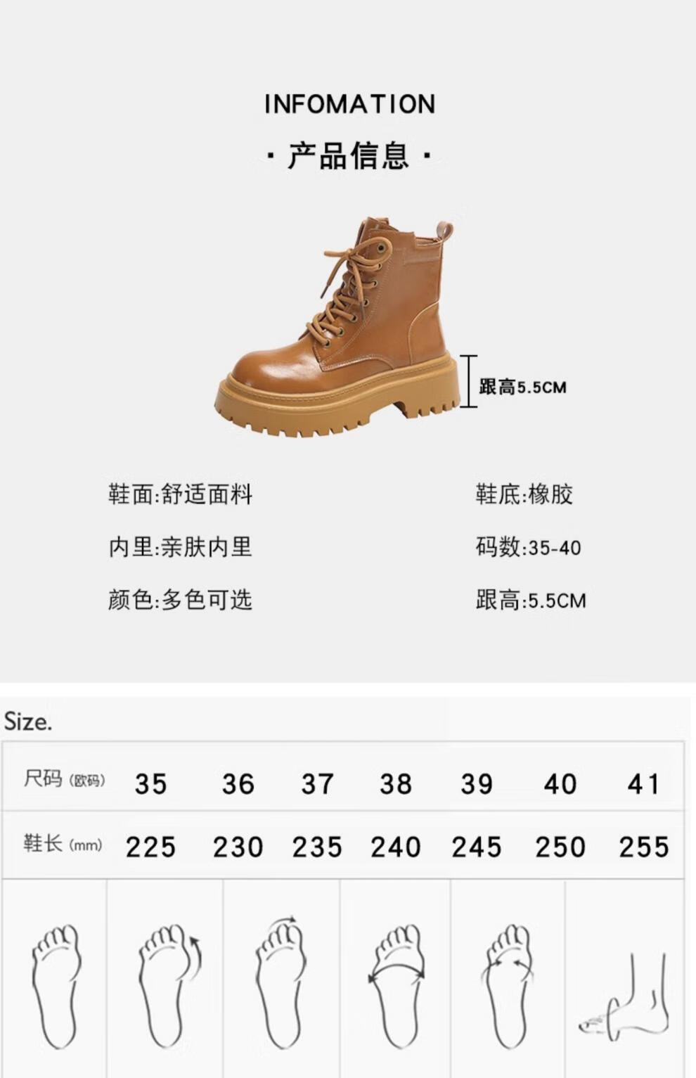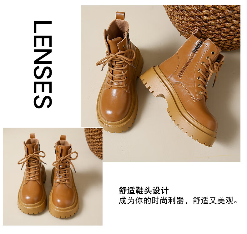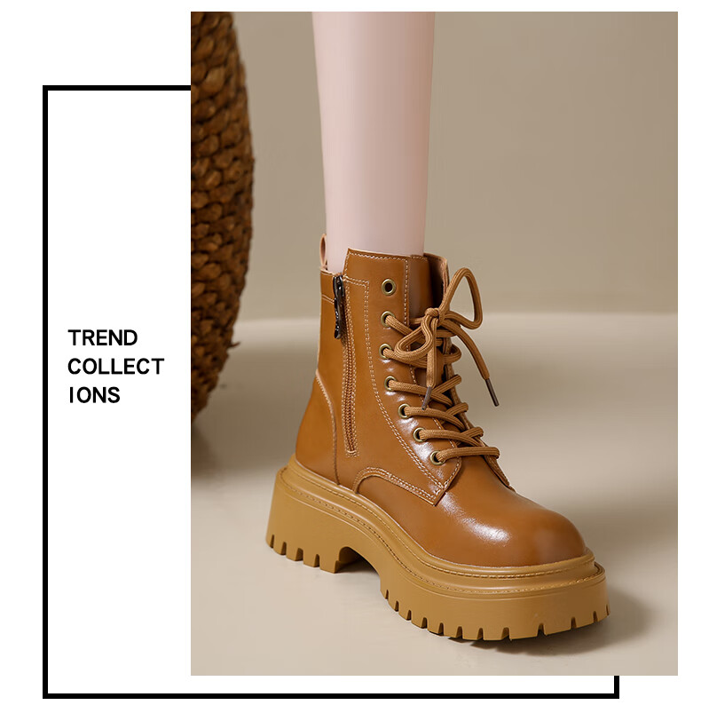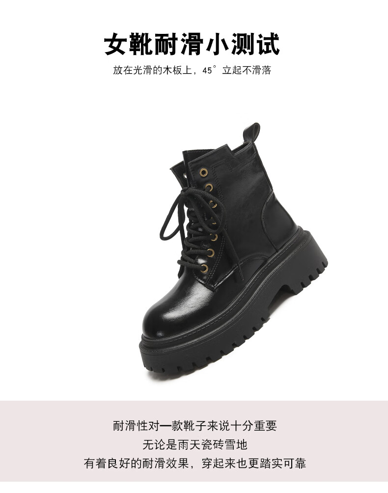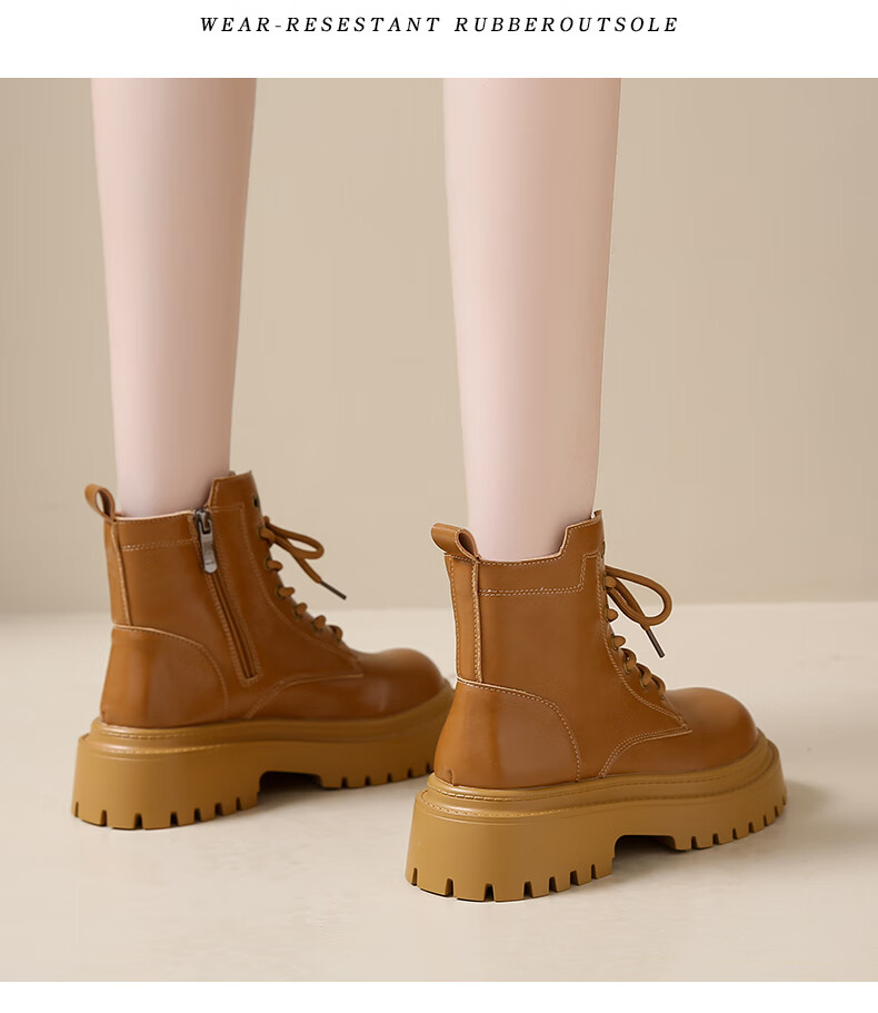 稻草人(MEXICAN)厚底马丁靴女款加绒靴子2026新款秋冬季英伦风增高短靴覆古机车靴 黑色单里 35