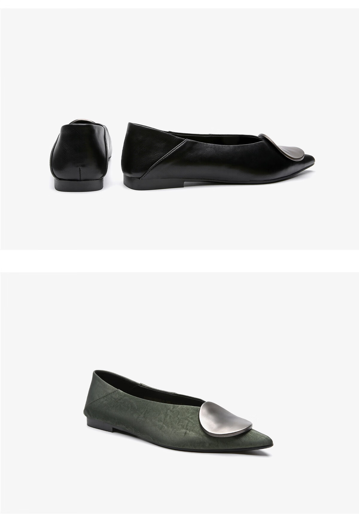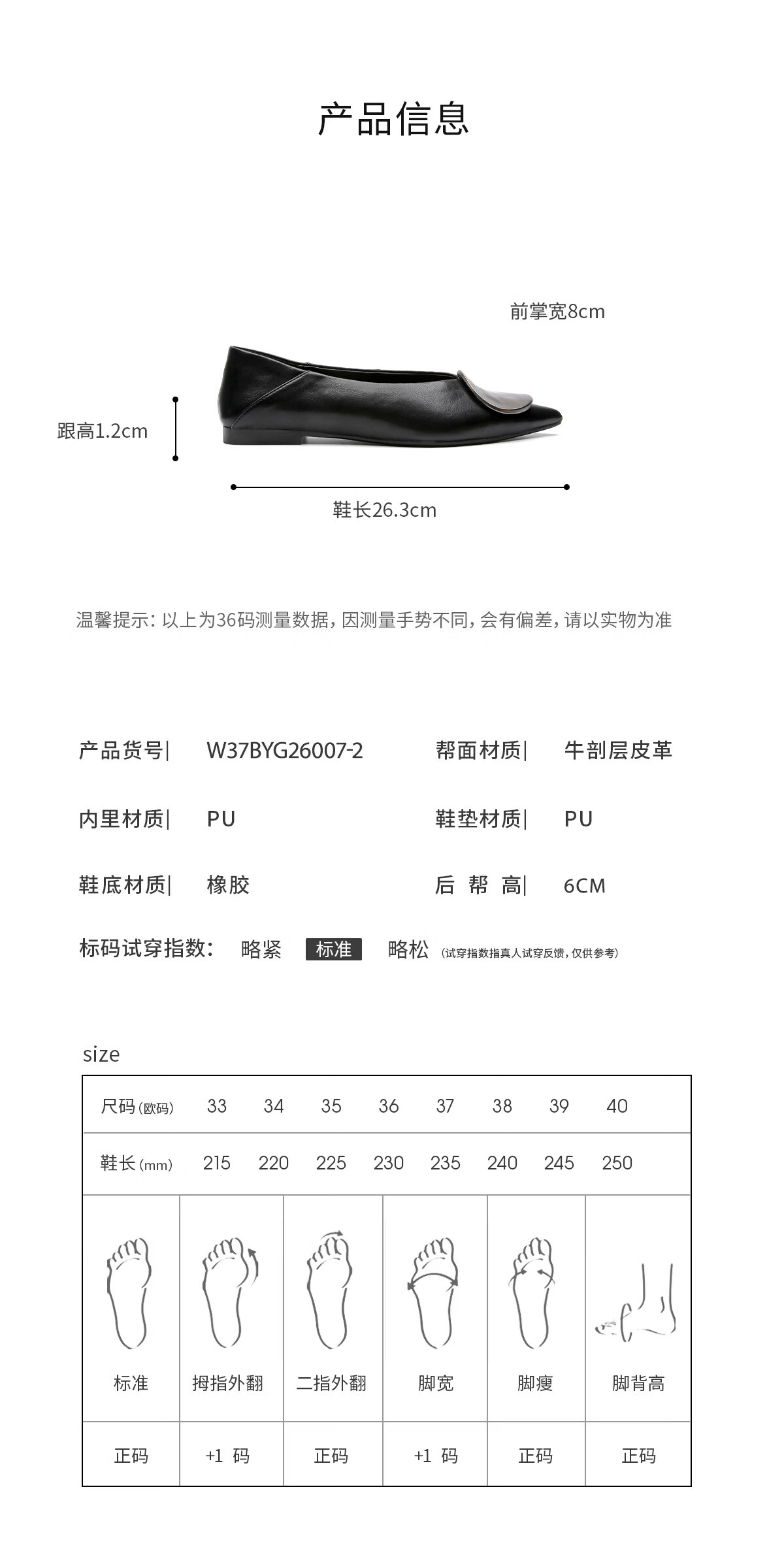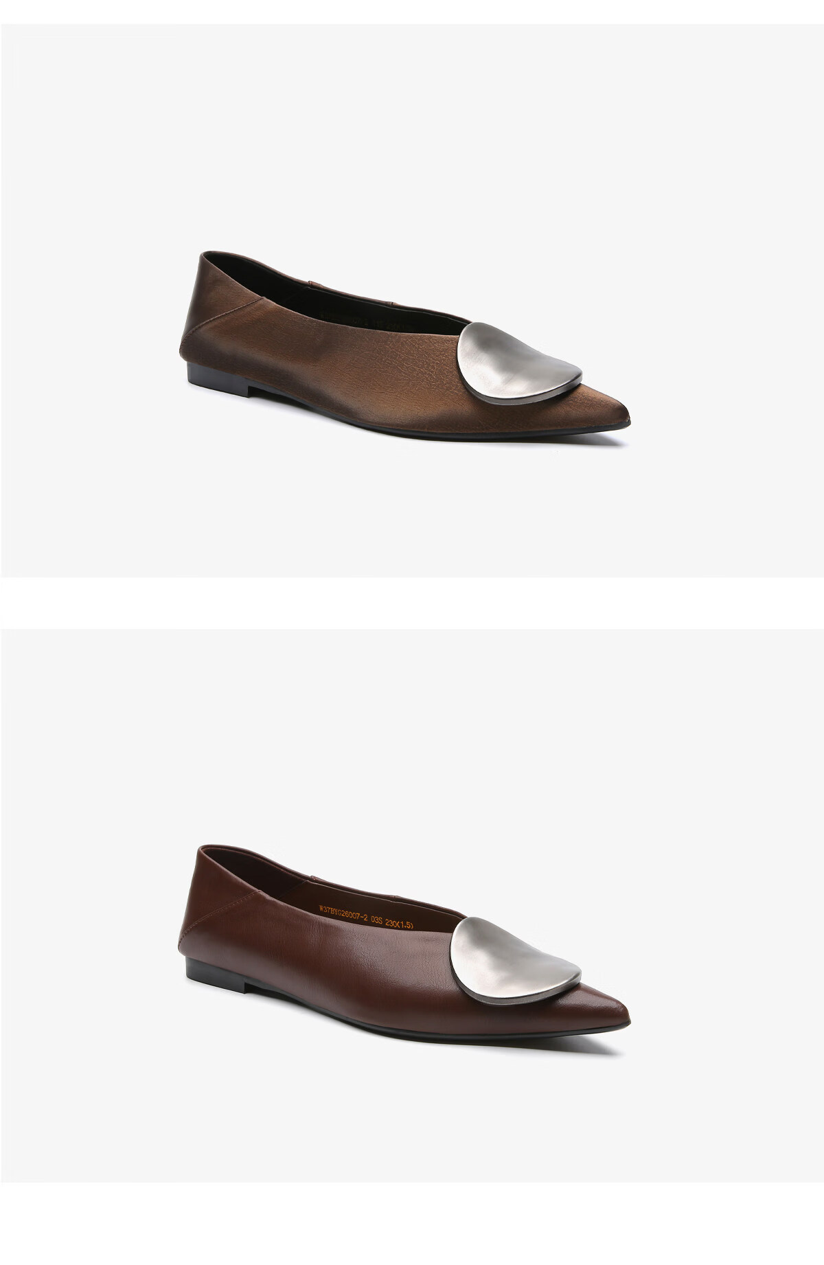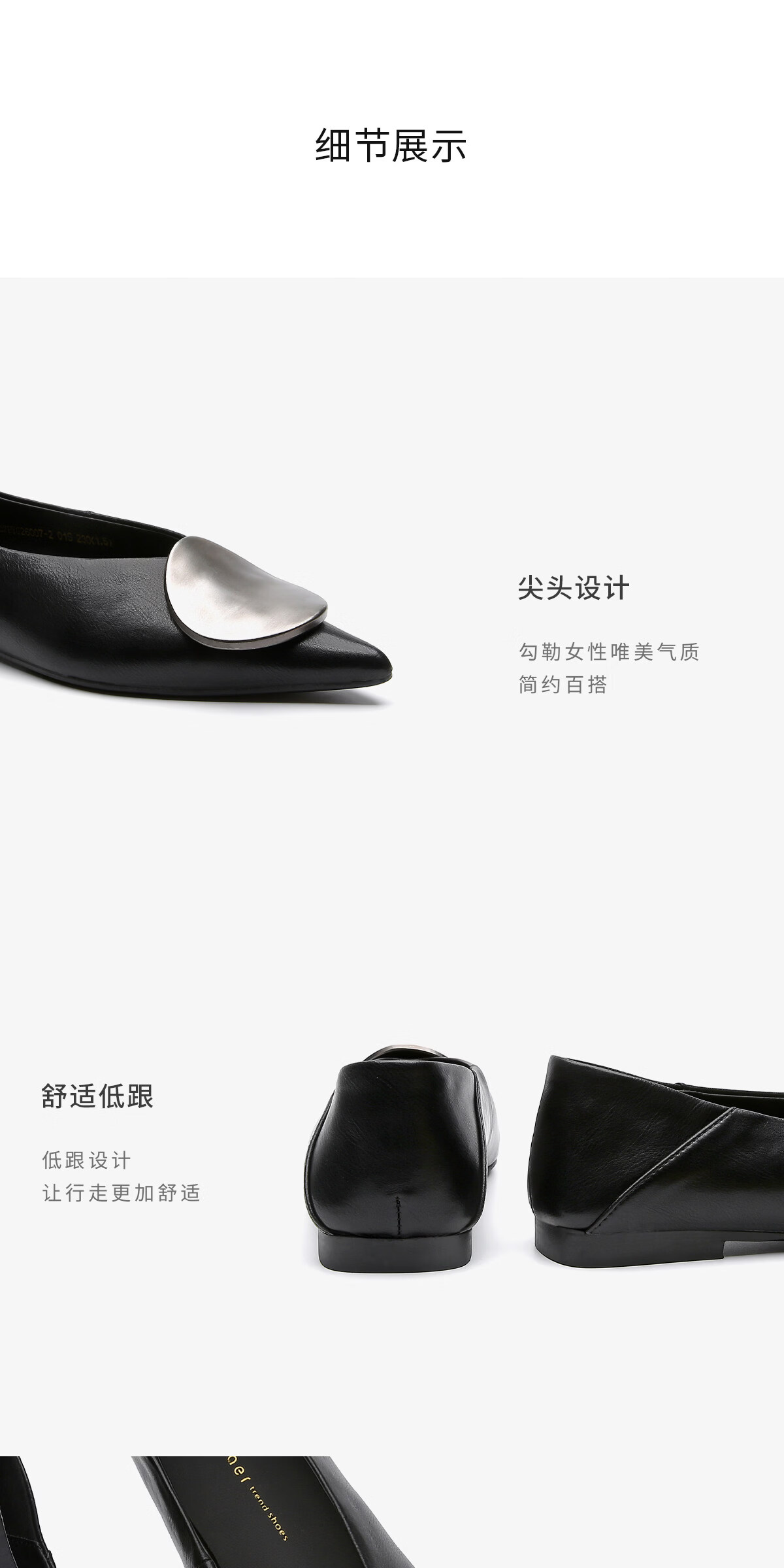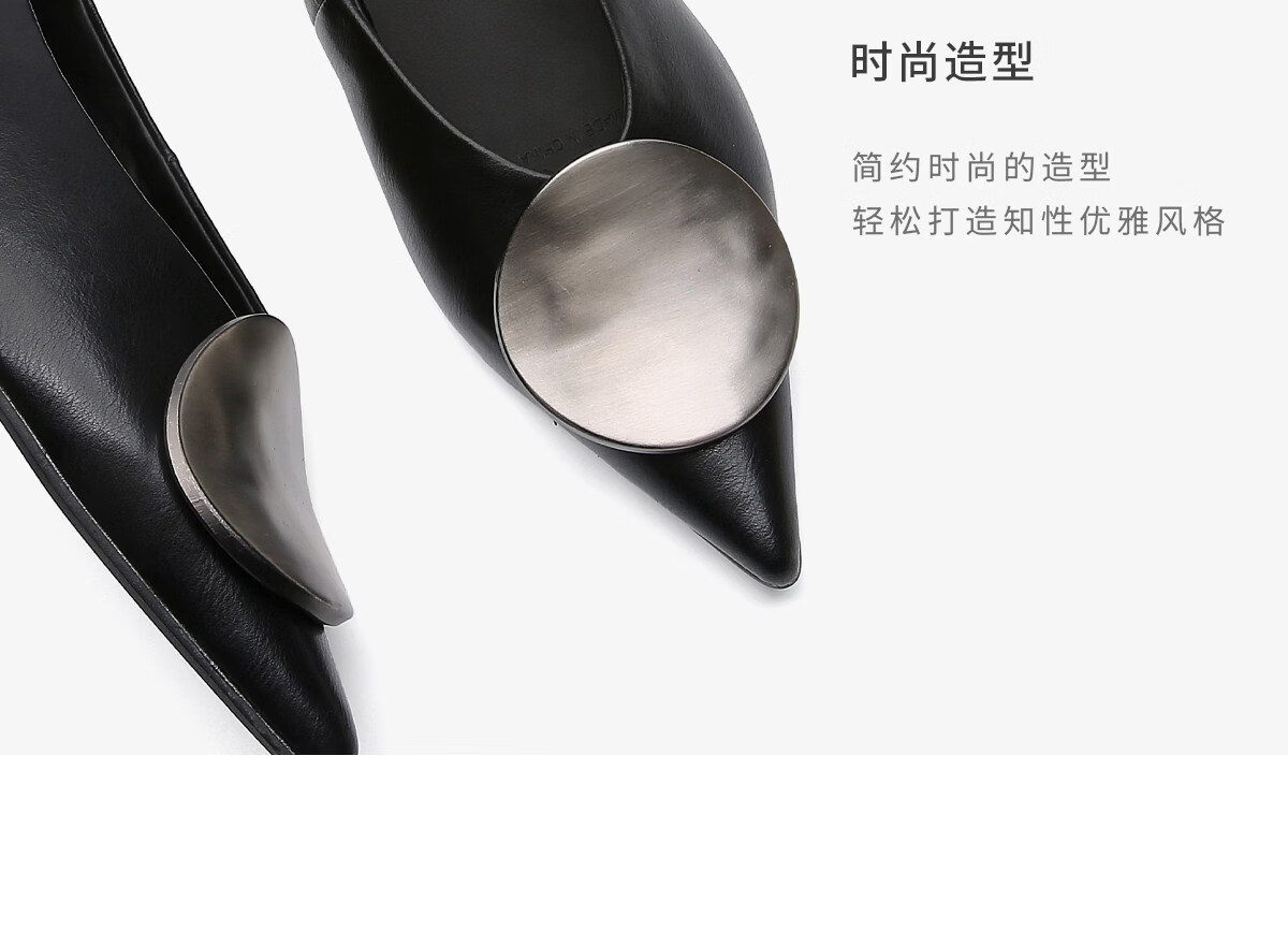 月芽儿2025年冬季季新款简约金属扣尖头鞋女浅口单鞋简约百搭瓢鞋 黑色01S 34