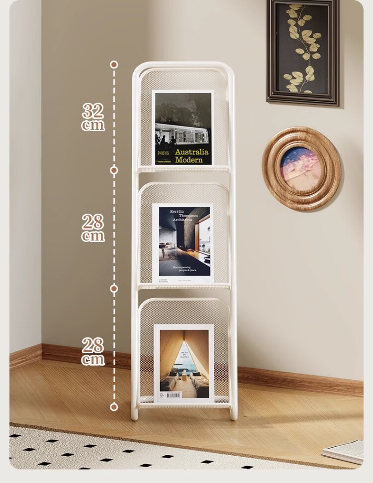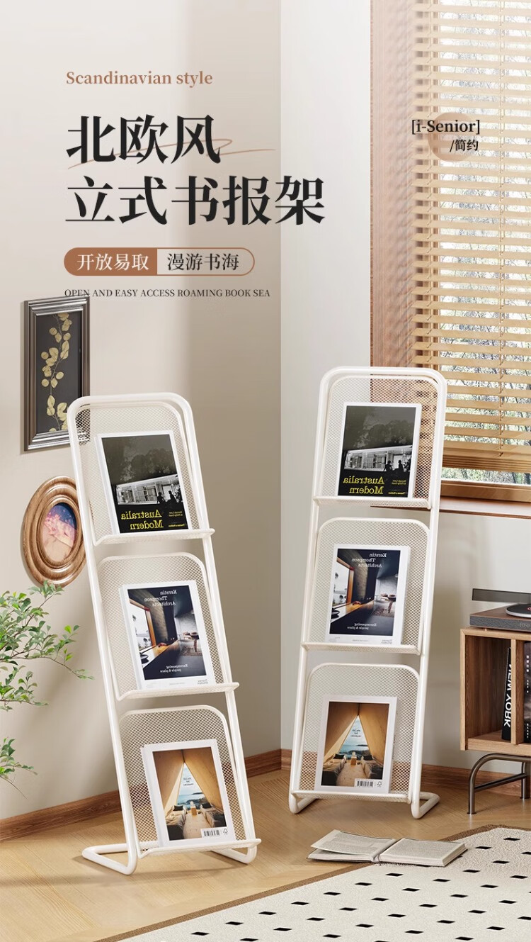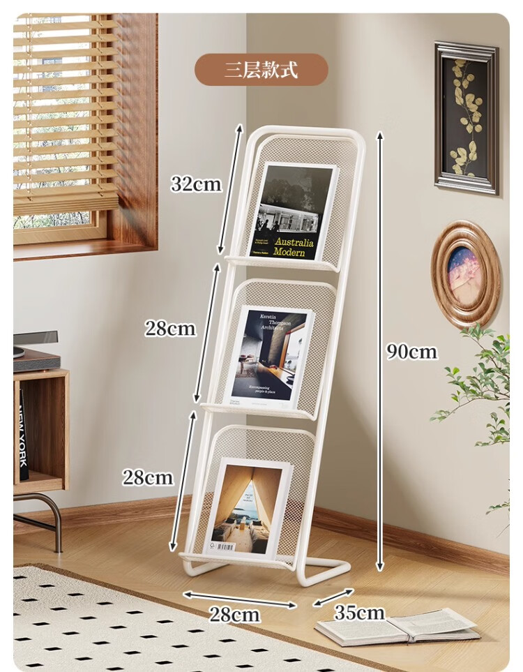 尔思家落地置物架书架立式架子收纳架文件架铁艺展示架子书报架杂志架 三层-白色