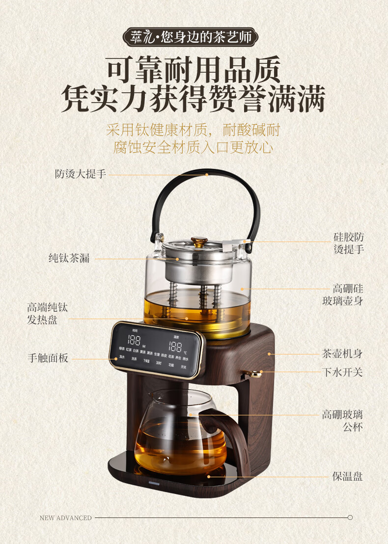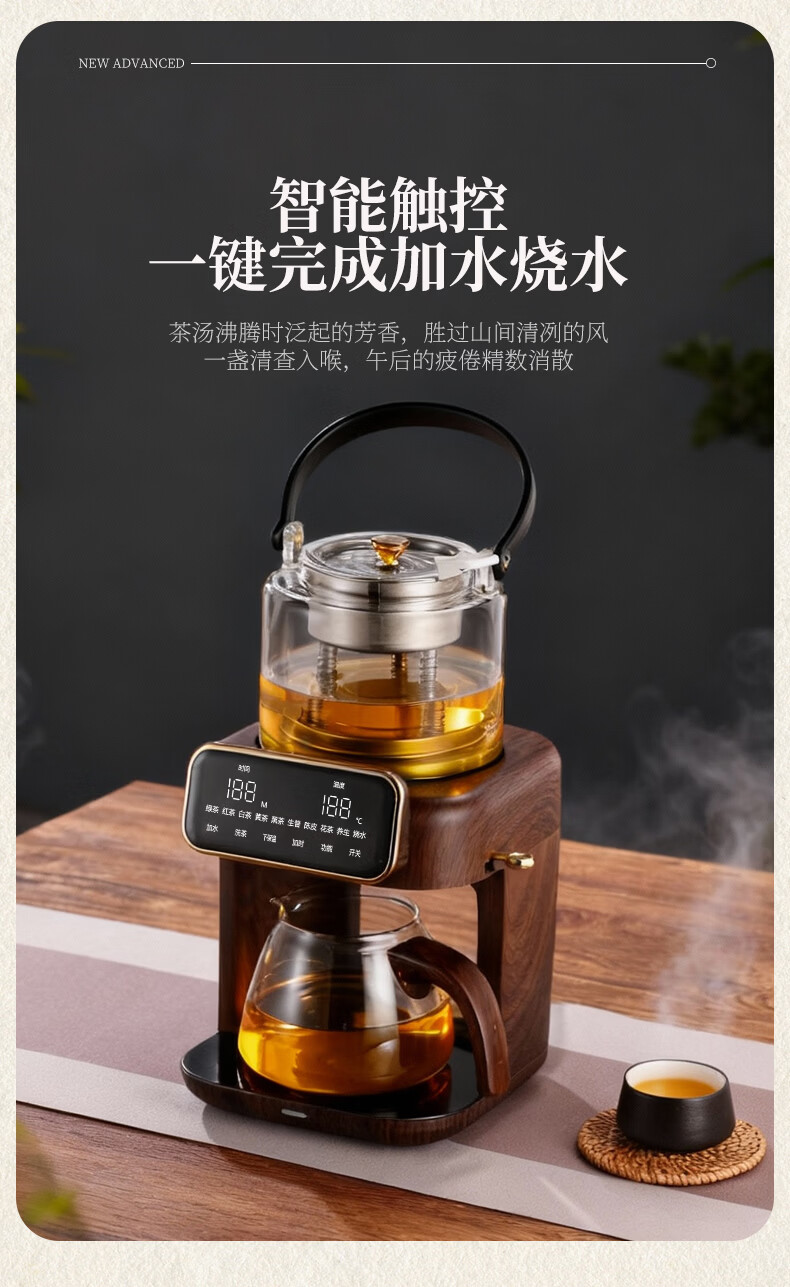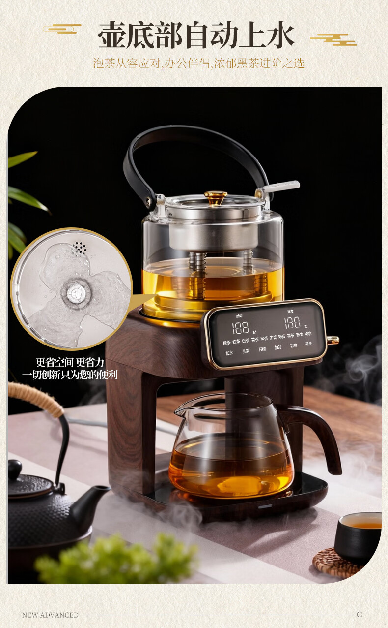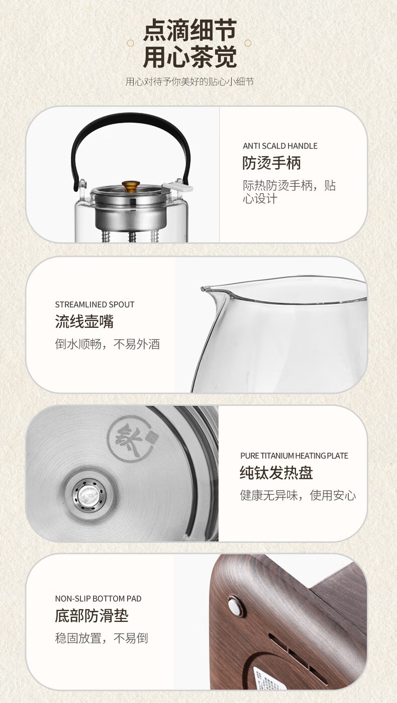 萃礼纯钛全自动上水电热烧水壶茶具套装 尊贵檀木色【304】