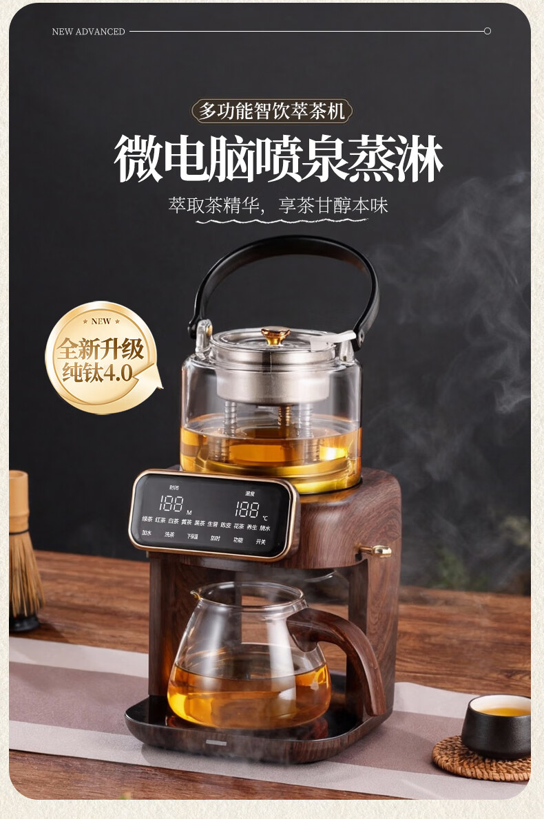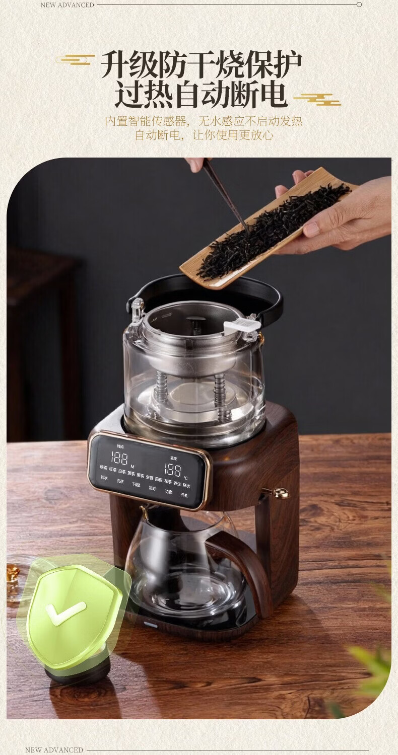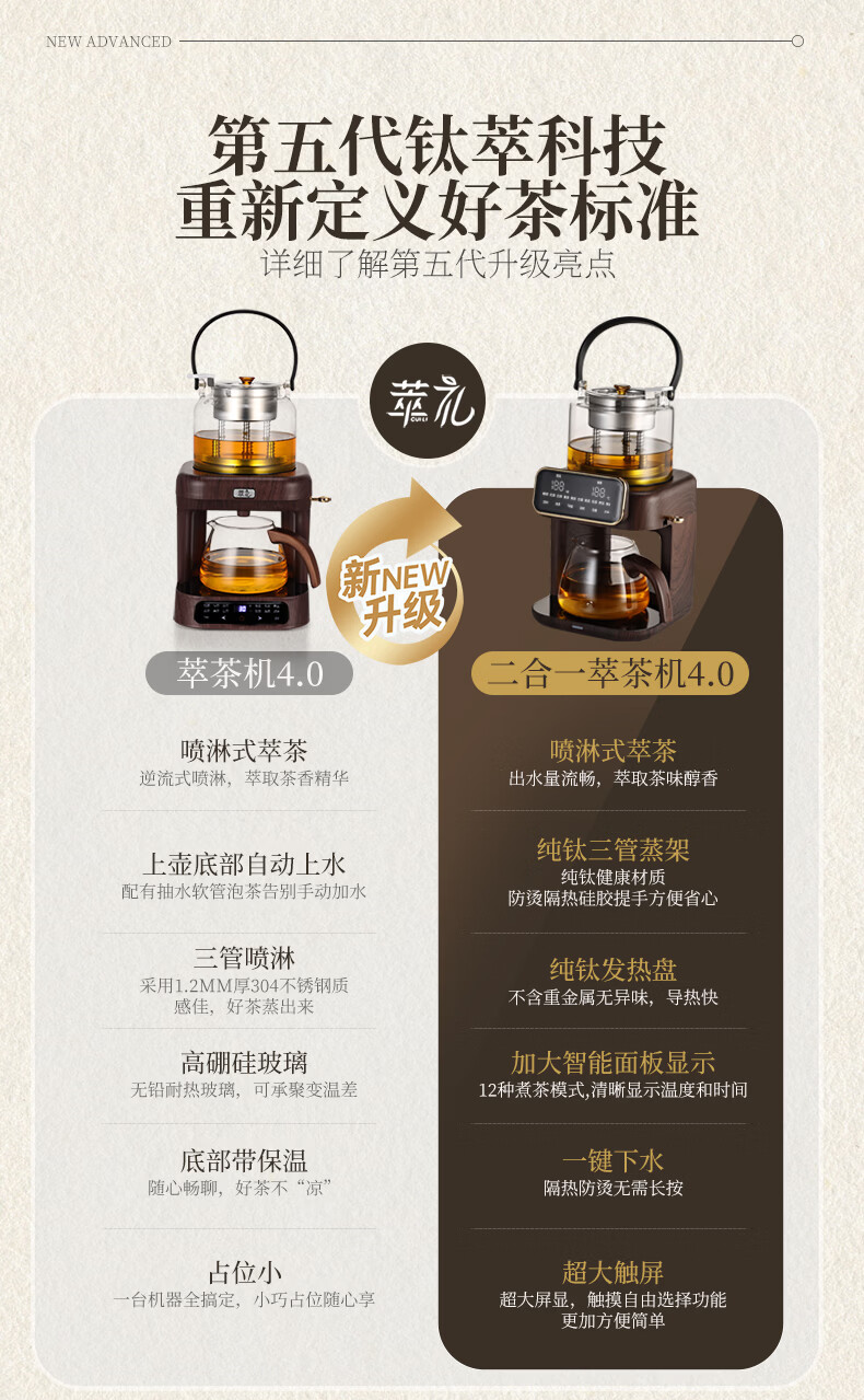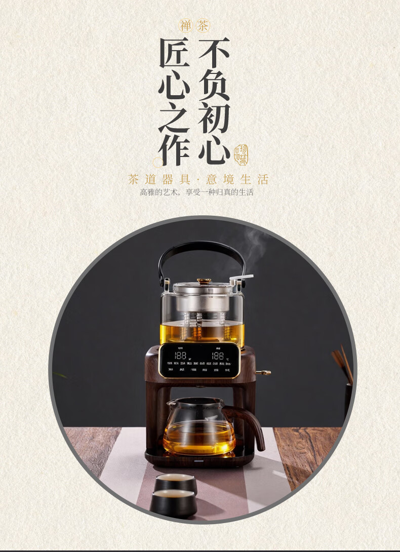 萃礼纯钛全自动上水电热烧水壶茶具套装 尊贵檀木色【304】