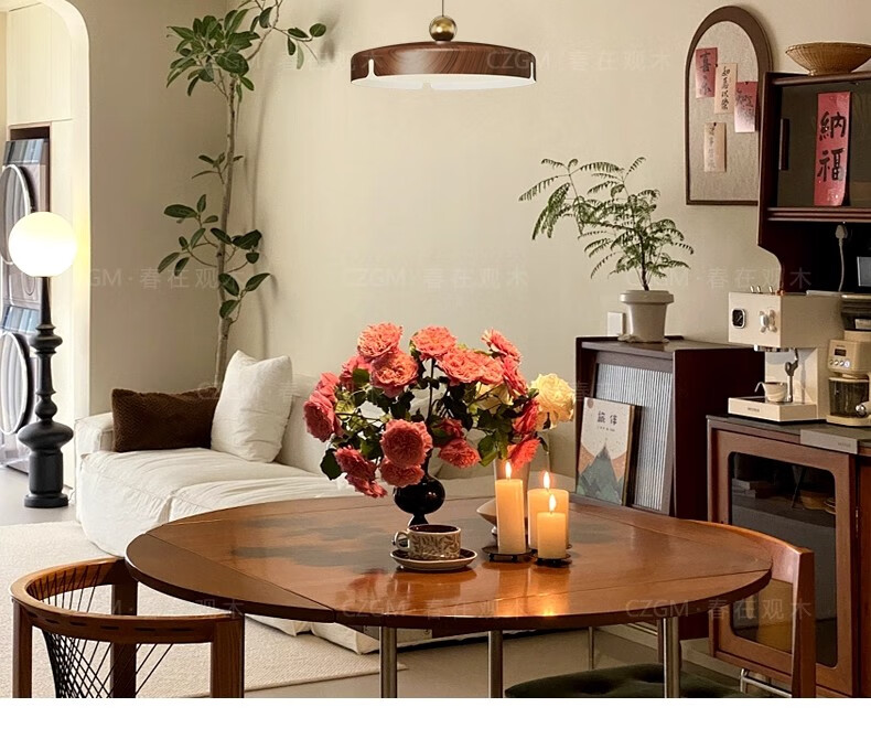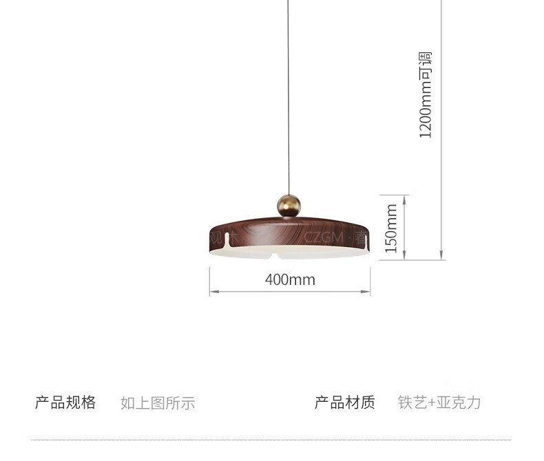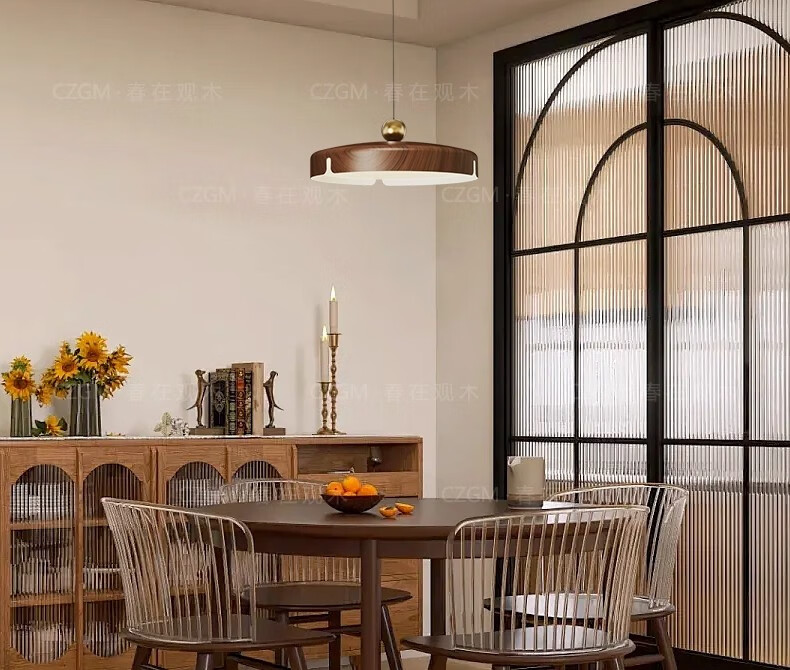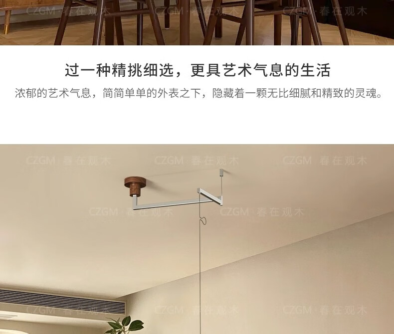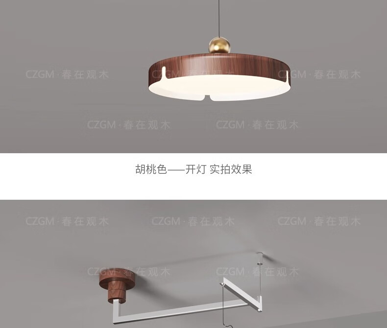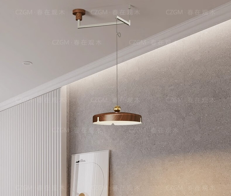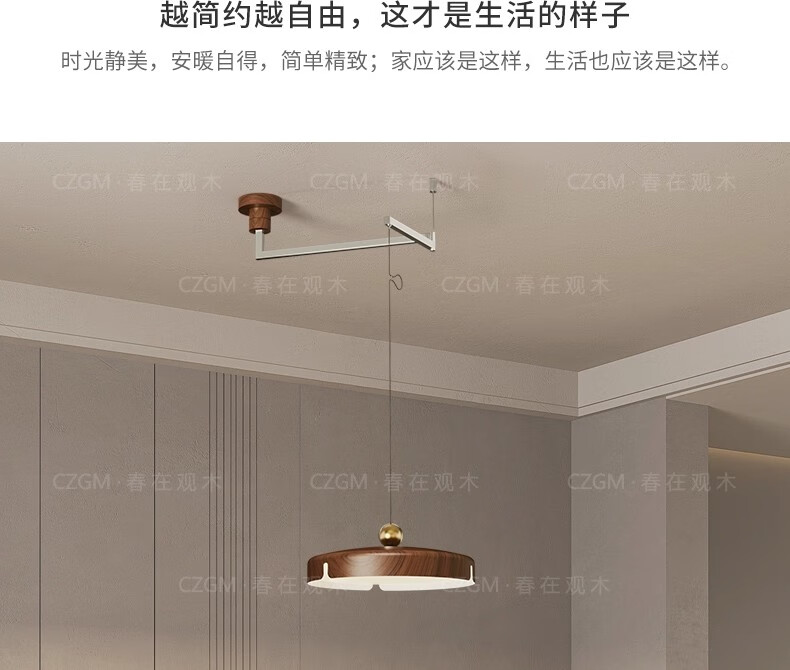 春在观木可位移餐厅吊灯中古包豪斯吧台饭厅灯复古新中式摇臂全光谱餐桌灯 水转胡桃色【D6066-40CM】摇臂-三色光