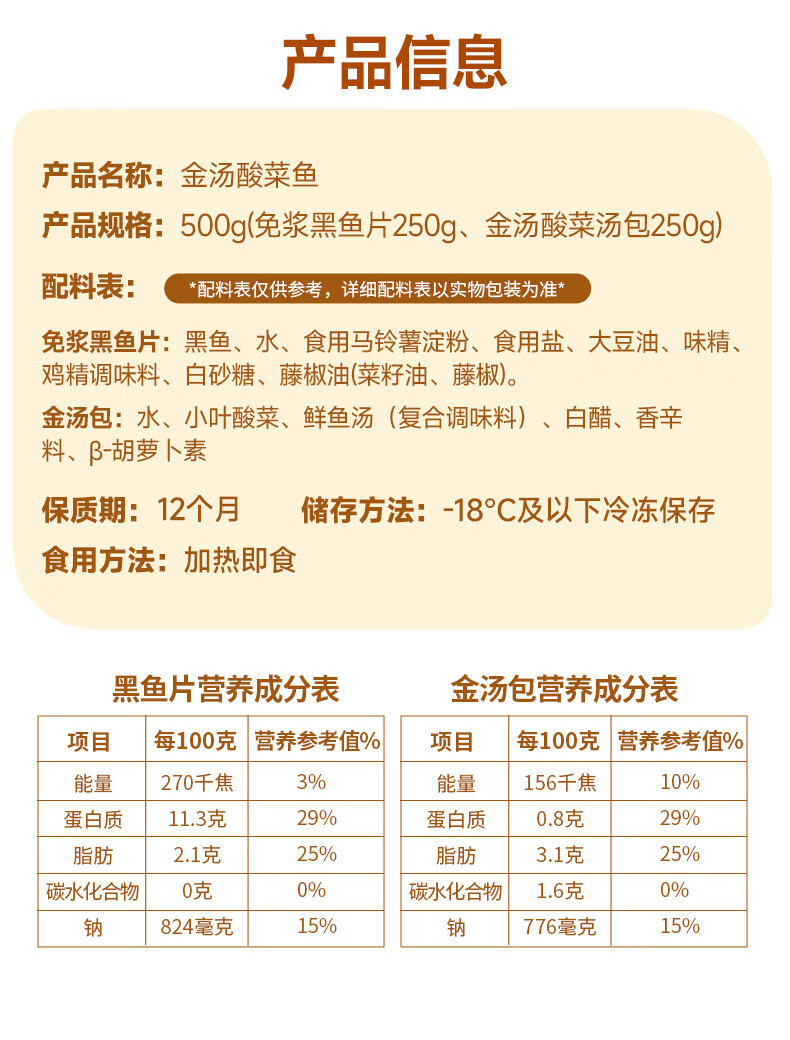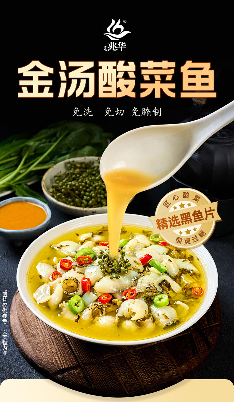 兆华酸菜鱼500g/袋 鲜活黑鱼片家用加热即食半成品方便速食冷冻预制菜 【金汤酸菜鱼】500g*3袋
