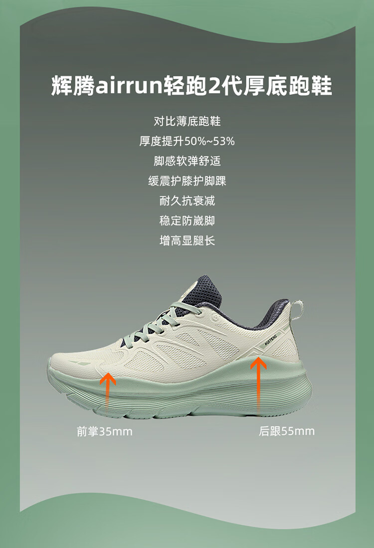 辉腾秋冬软弹网面透气减震慢跑鞋回弹防滑耐磨缓震运动鞋广场舞跑步鞋 抹茶绿 44