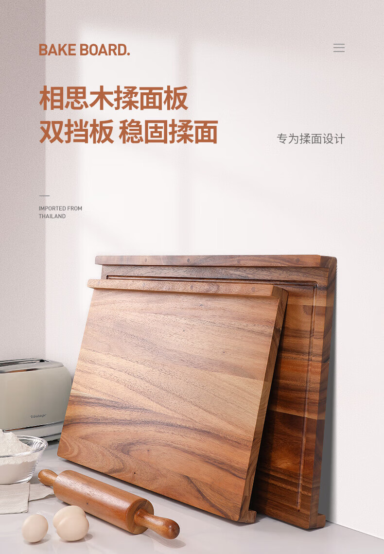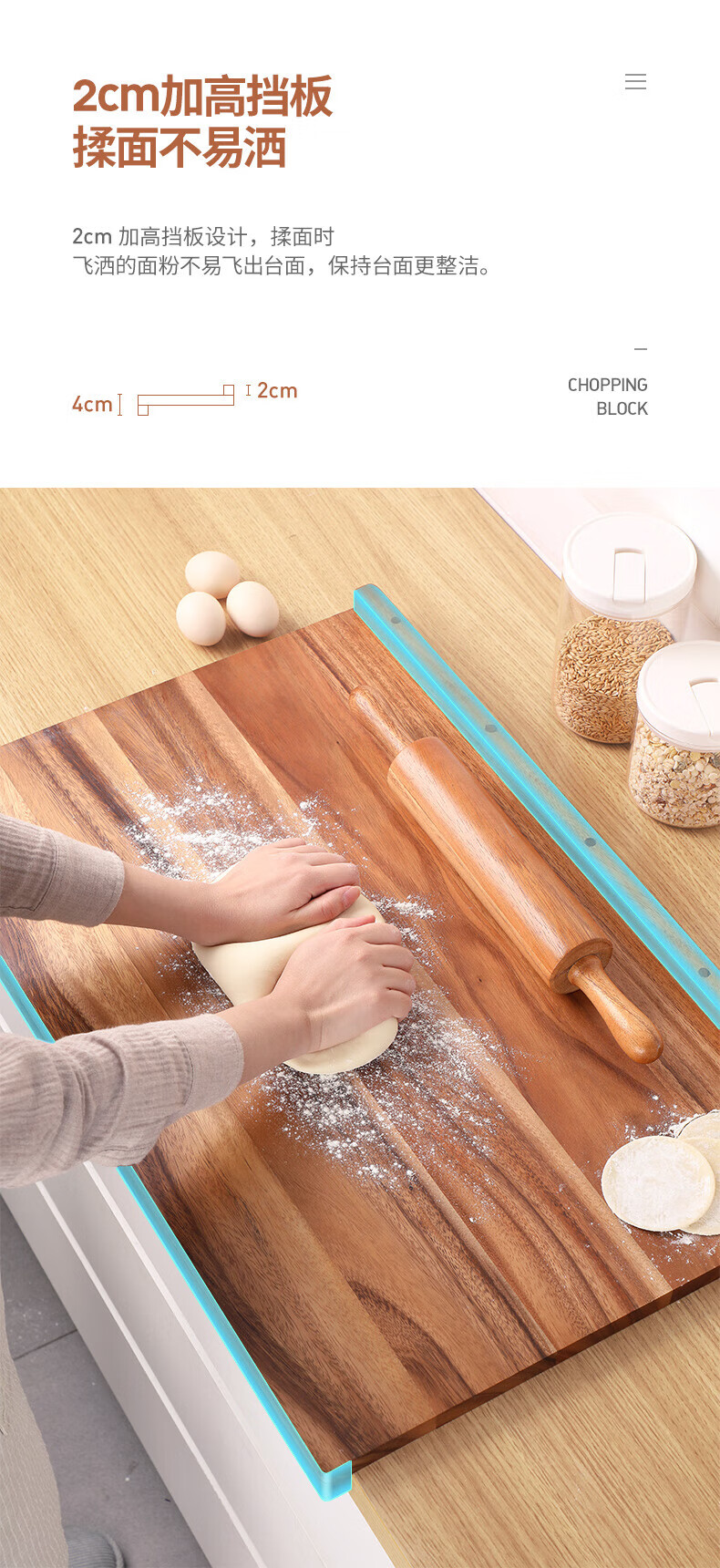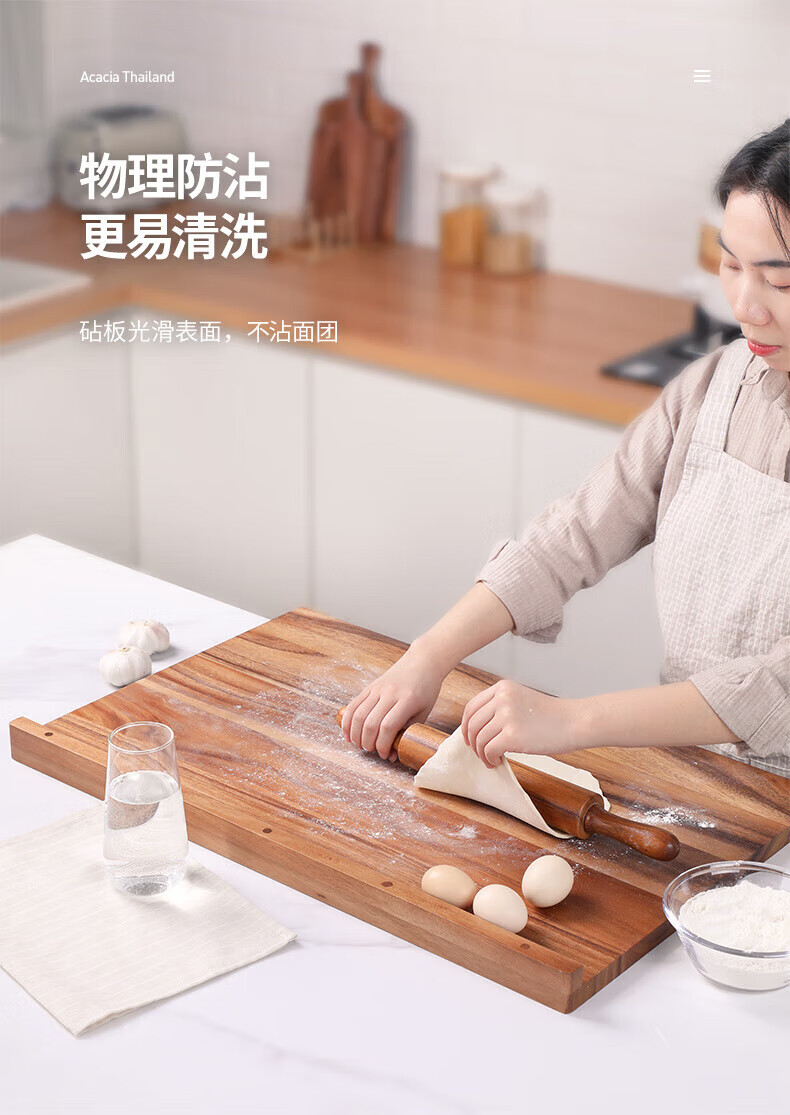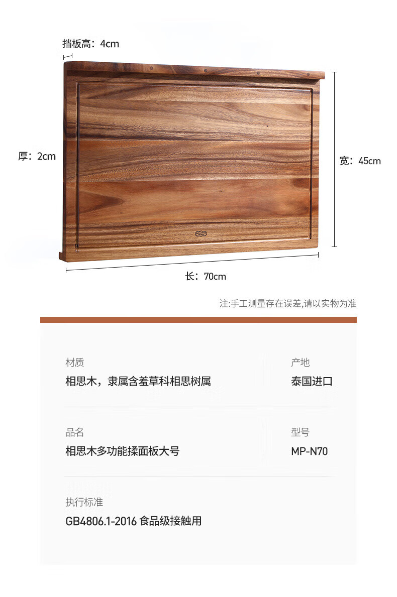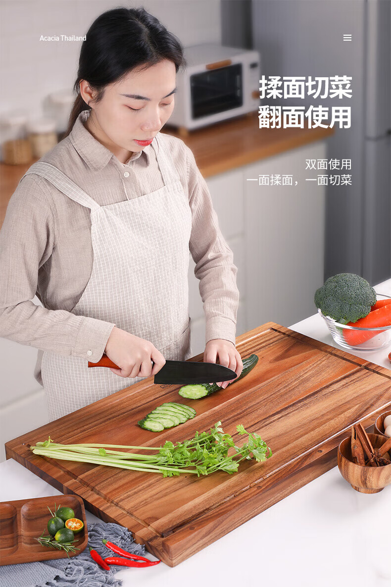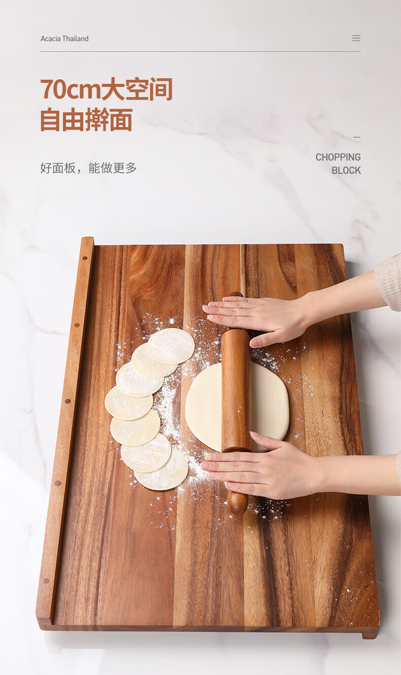 LC LIVING胖东来同款泰国相思木擀面板实木多功能揉面板菜板和面板案板双面 【双挡板】60X40X2cm