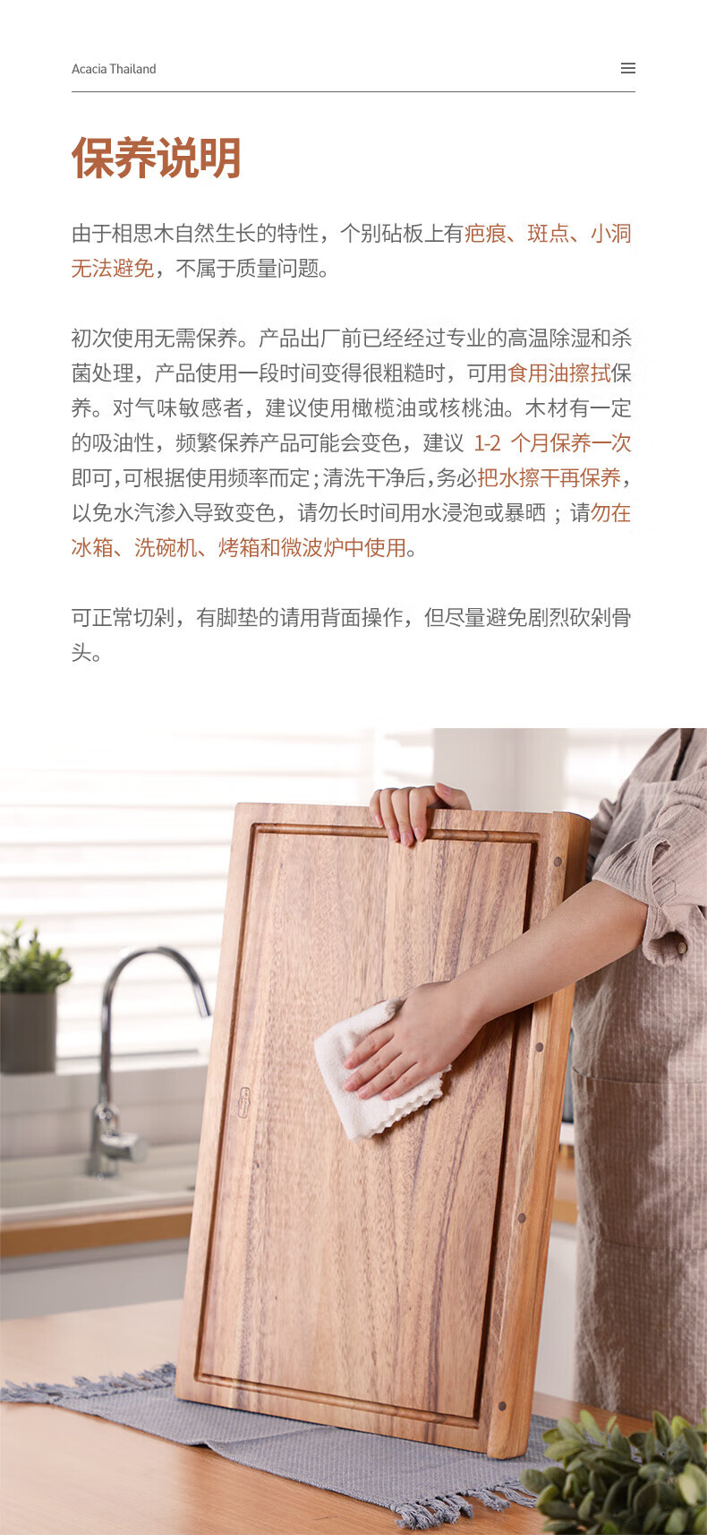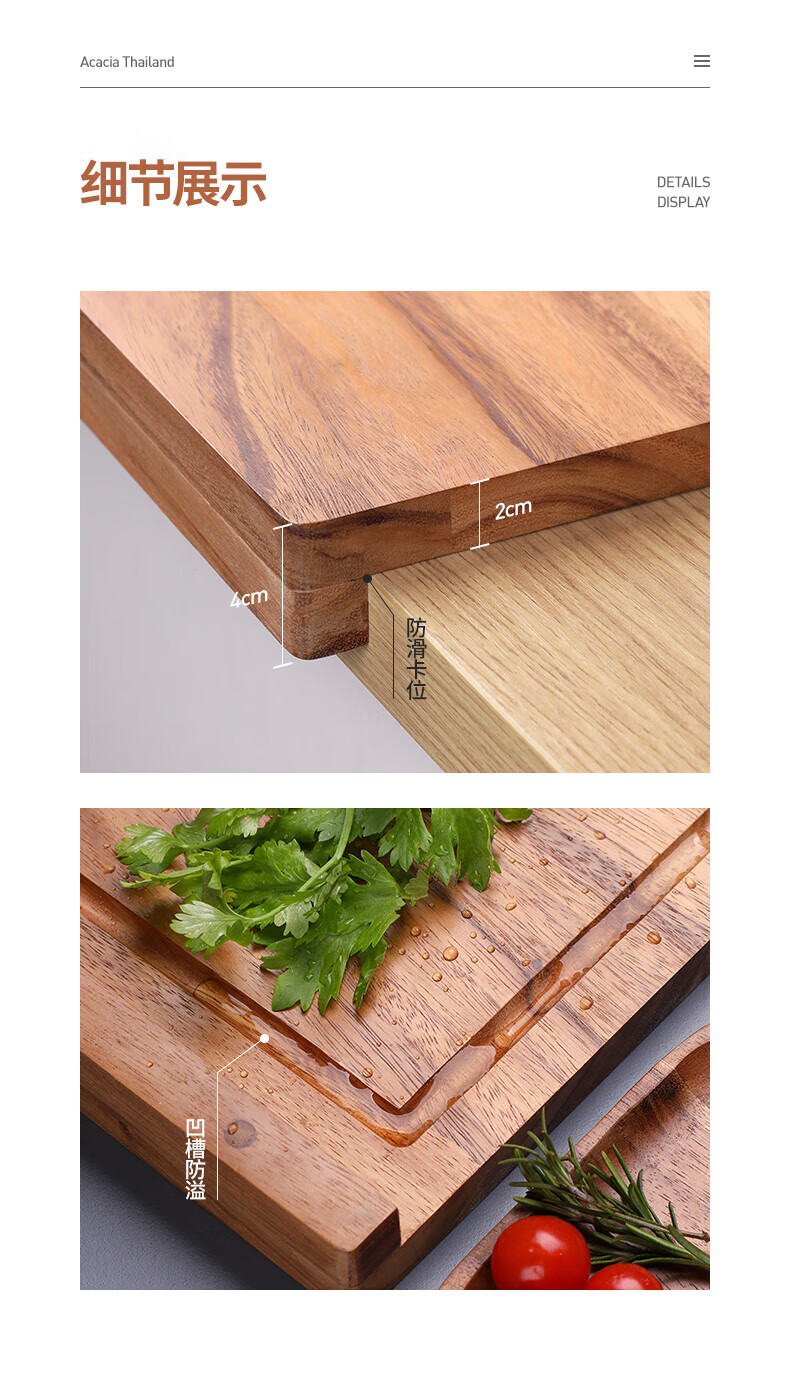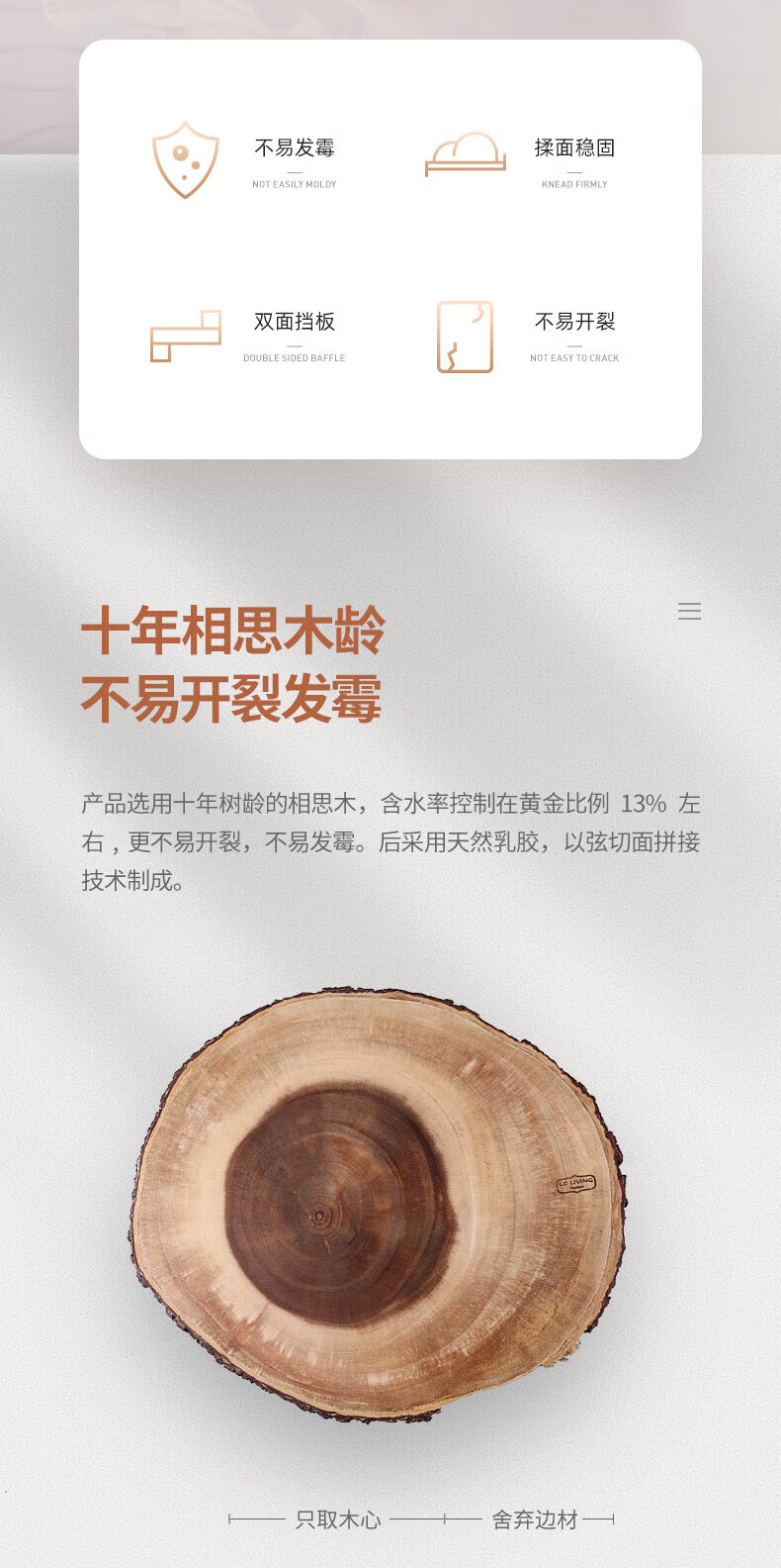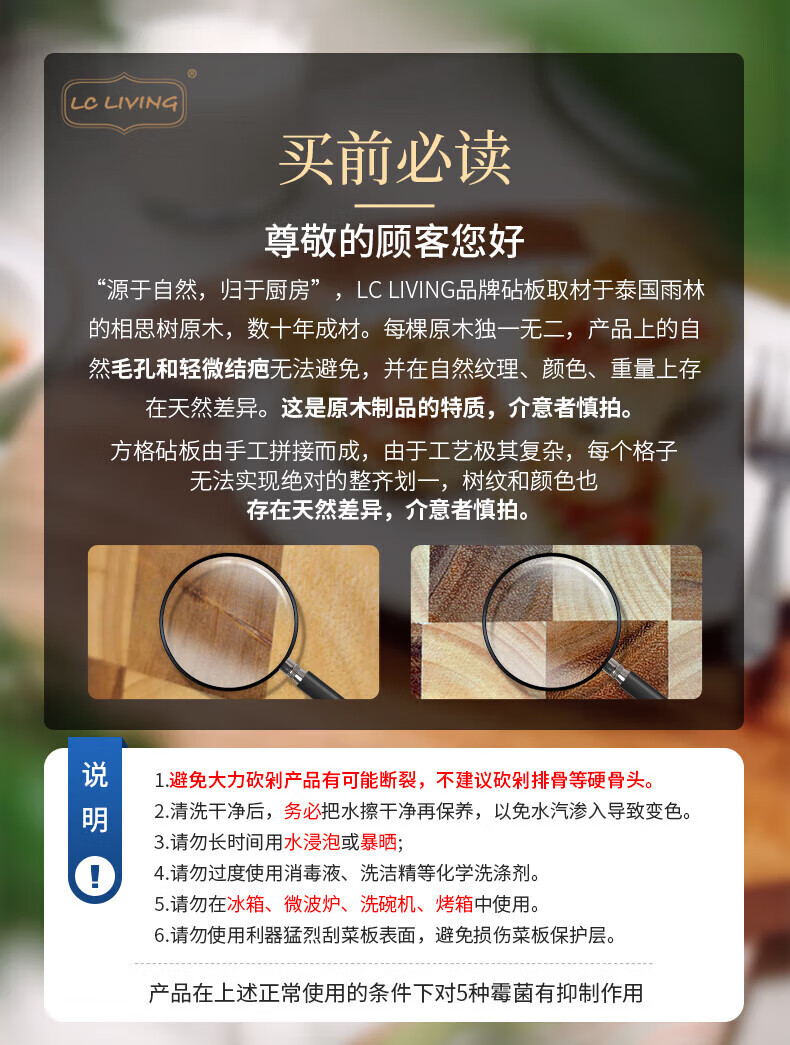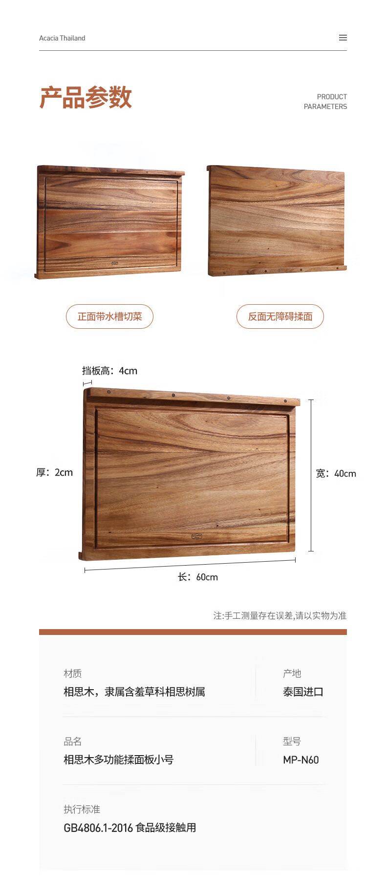 LC LIVING胖东来同款泰国相思木擀面板实木多功能揉面板菜板和面板案板双面 【双挡板】60X40X2cm