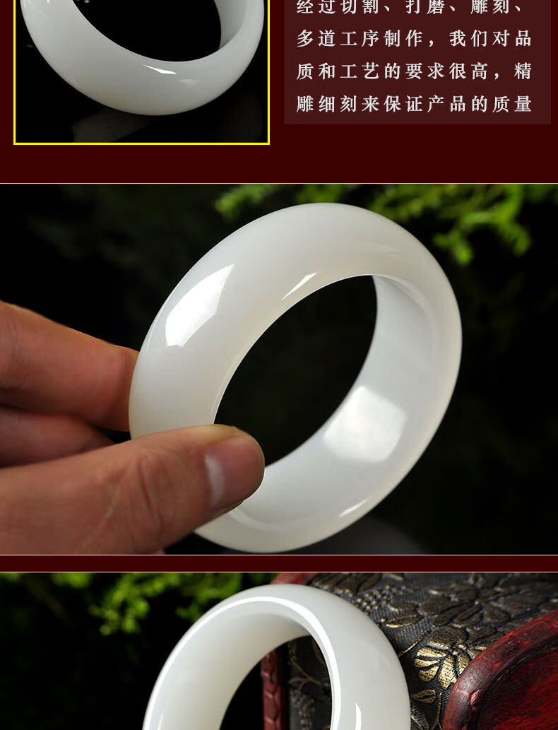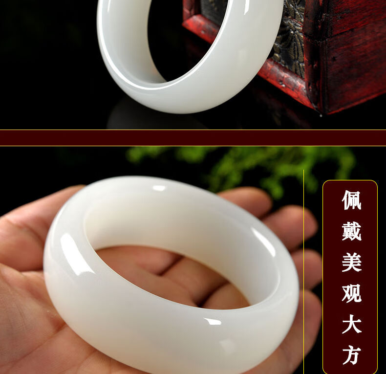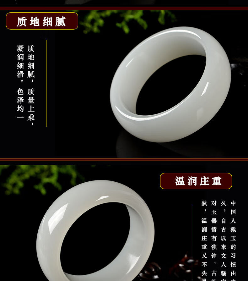 DL 1998保价DL品质和田玉羊脂白玉手镯加宽加厚玉镯手镯女玉手镯子送妈妈 玉镯尺寸64mm