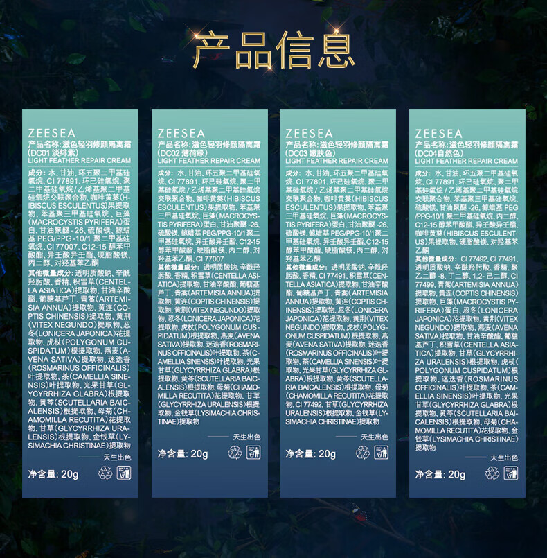 ZEESEA滋色多效修颜隔离霜 姿色素颜霜遮瑕保湿 裸妆防护霜 底妆彩妆 爱丽丝爆水隔离-紫色20g