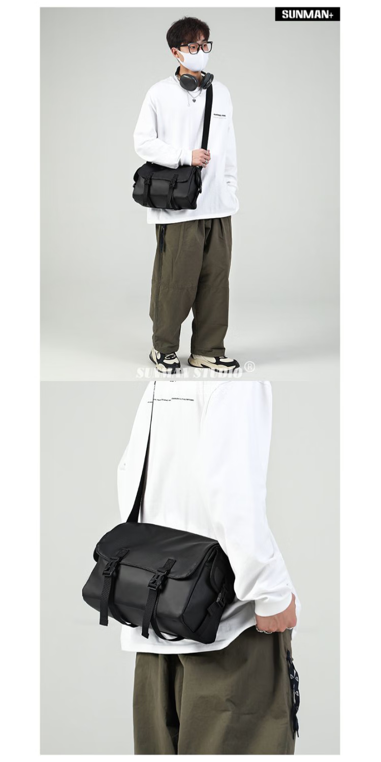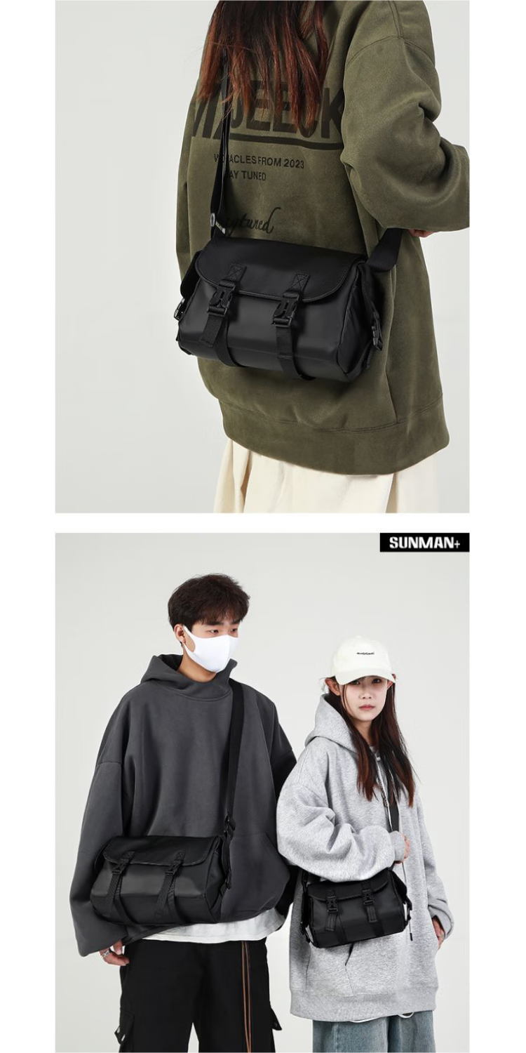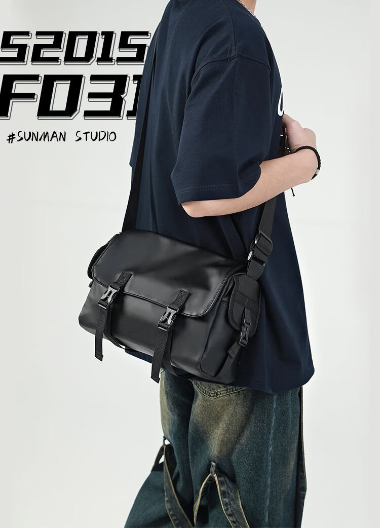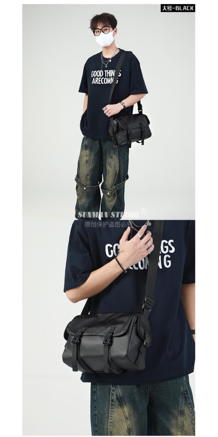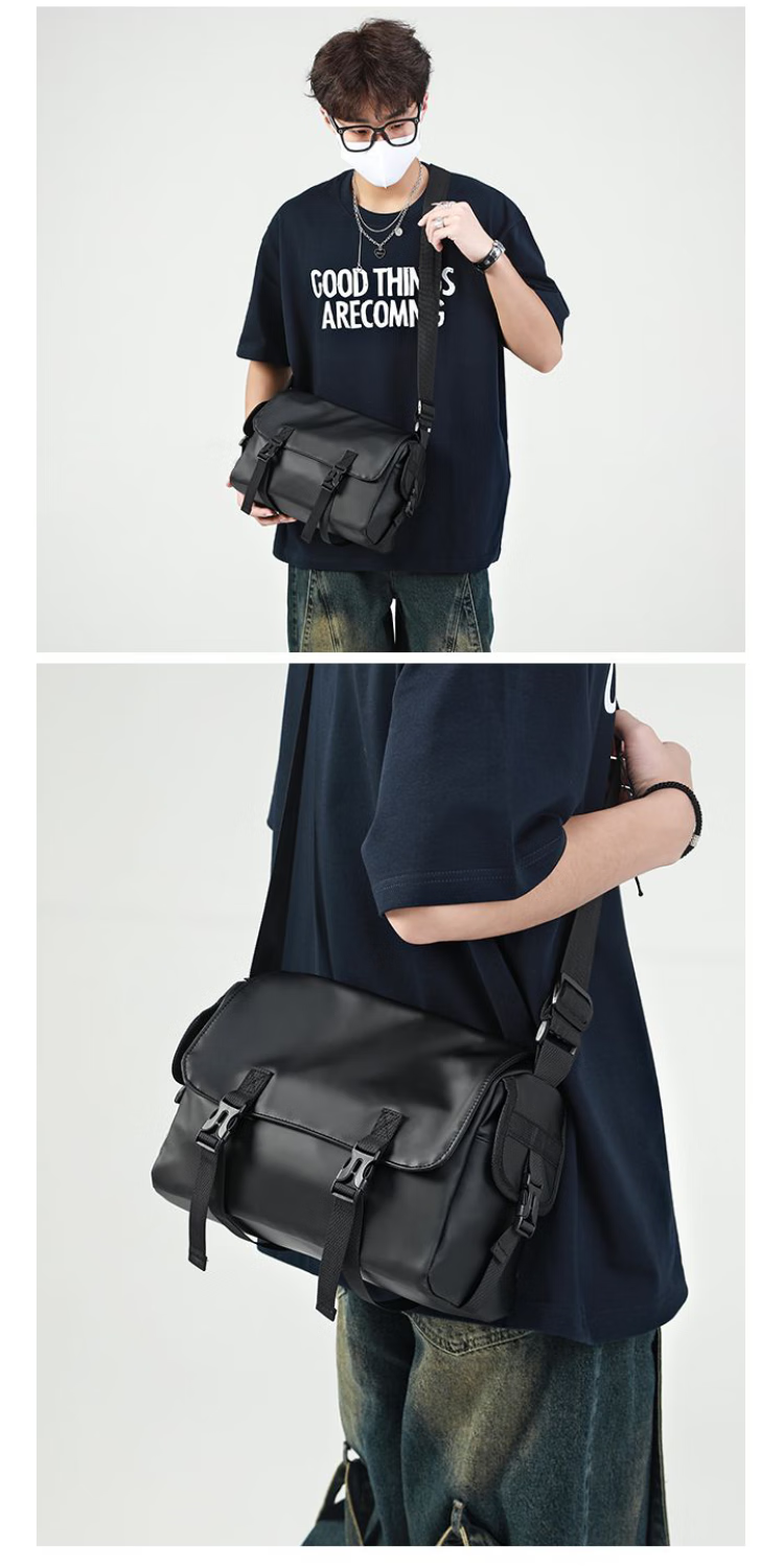 2024新款邮差包男士挎包大容量单肩包潮牌运动包包斜挎包单肩背包 黑色大号