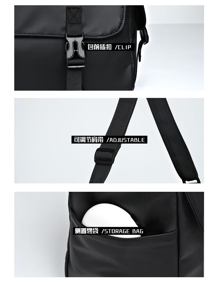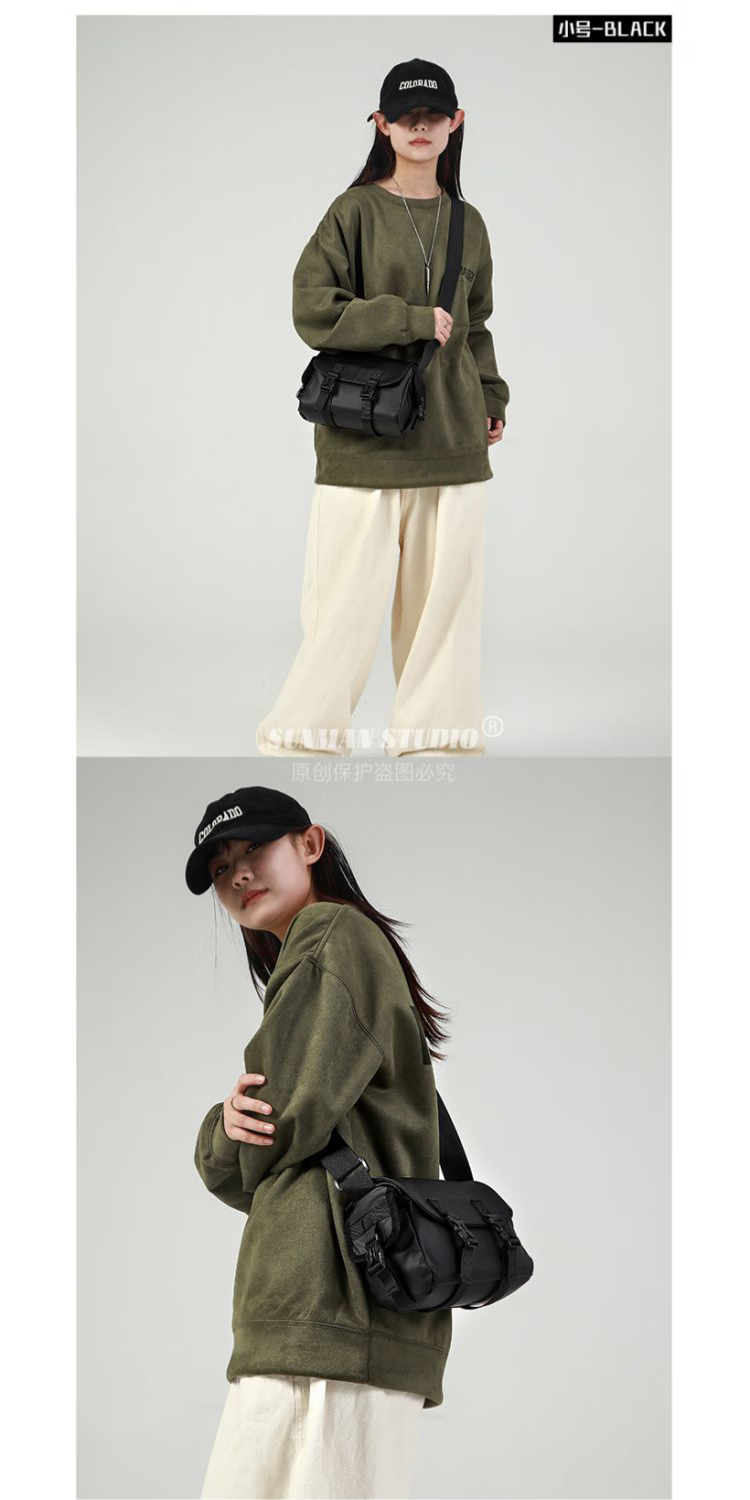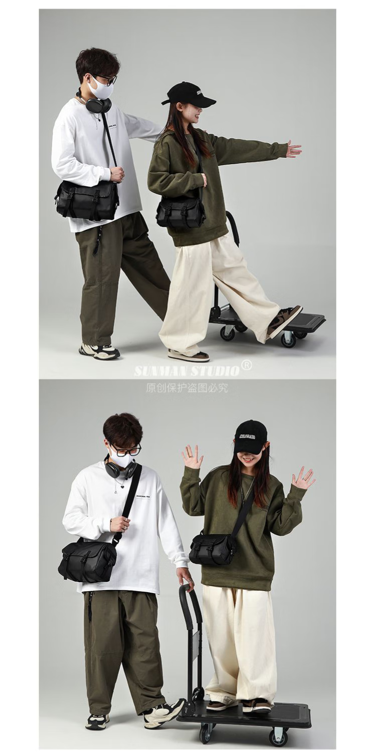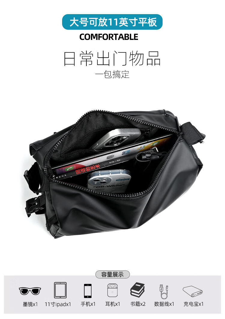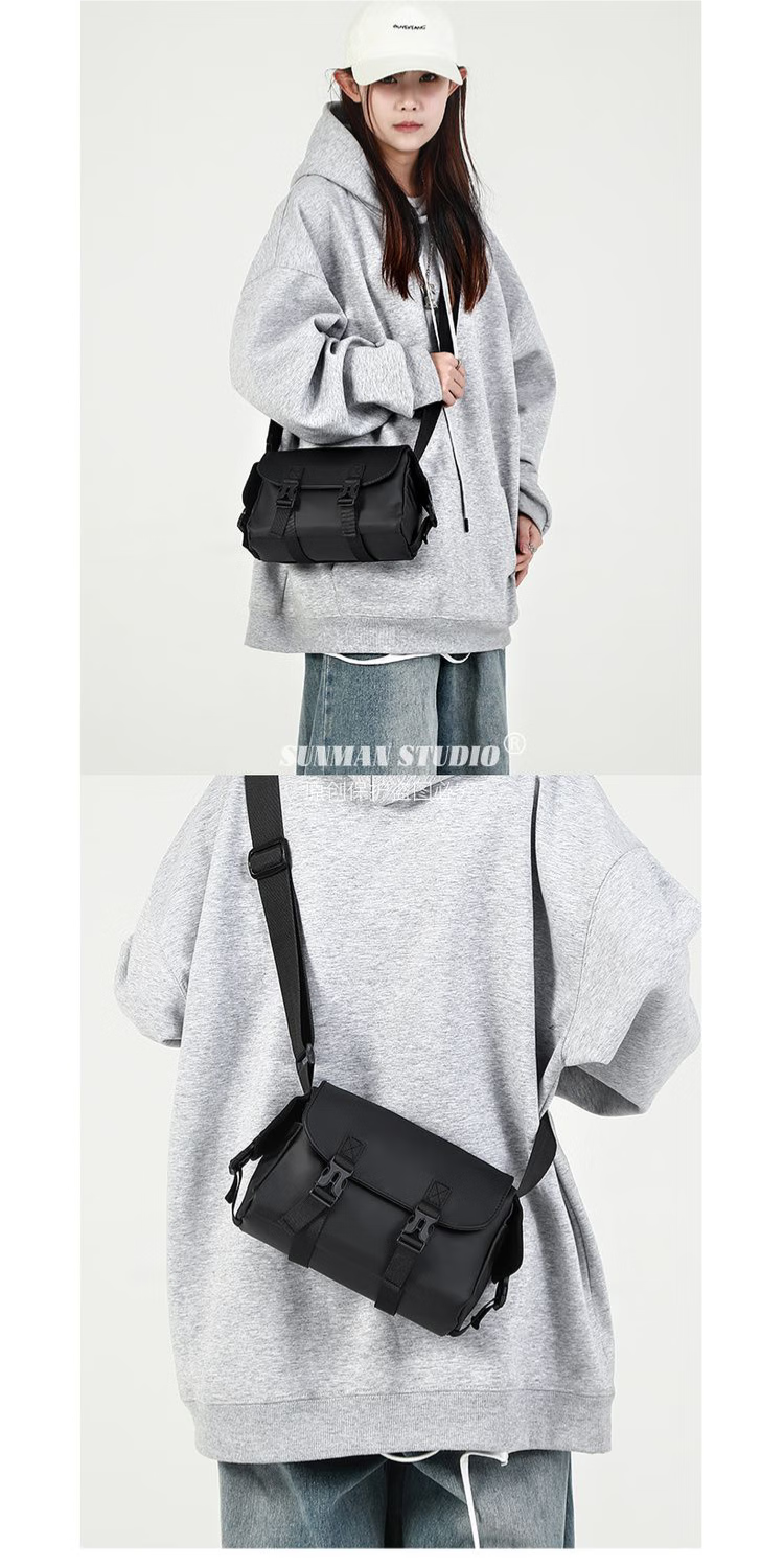 2024新款邮差包男士挎包大容量单肩包潮牌运动包包斜挎包单肩背包 黑色大号