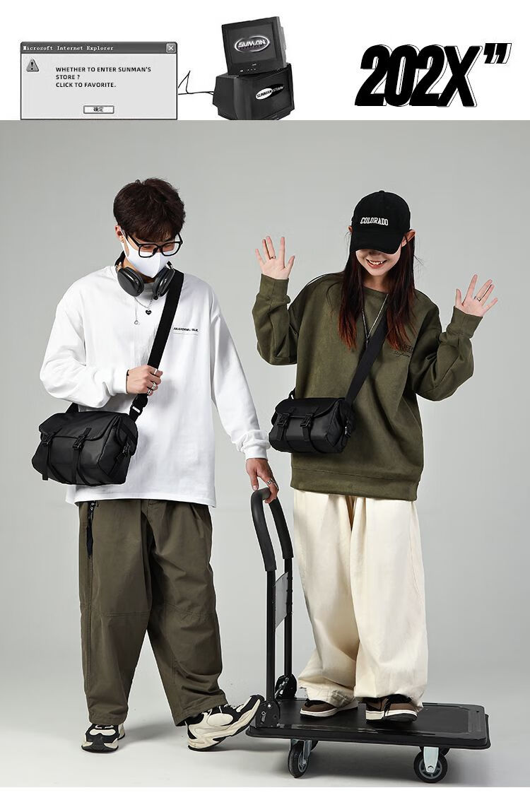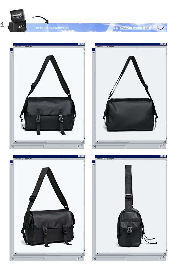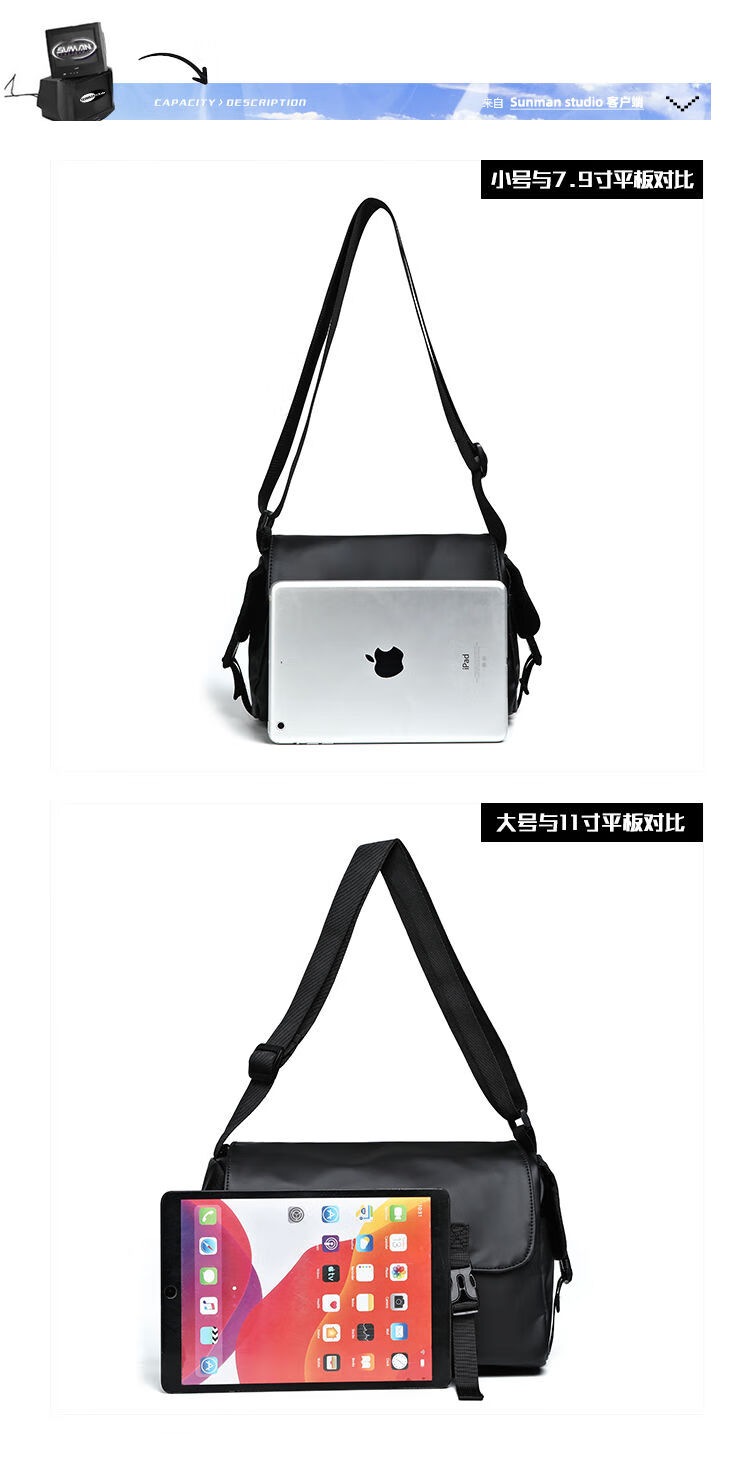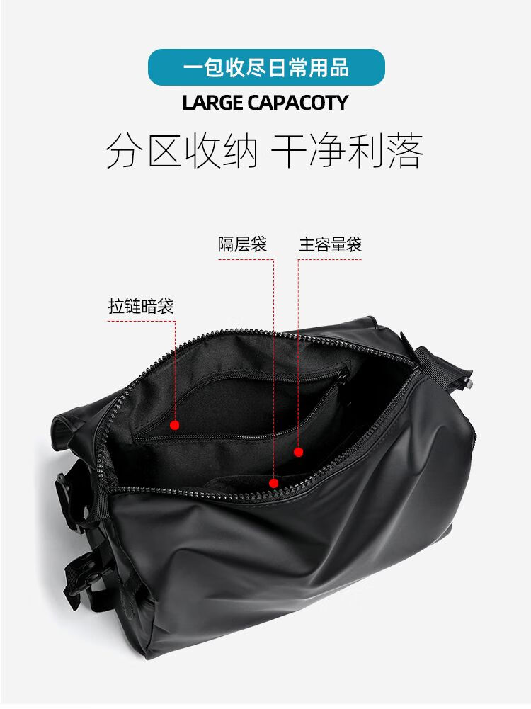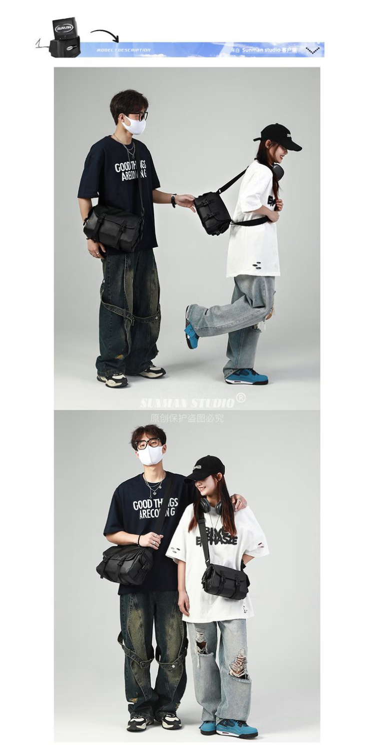 2024新款邮差包男士挎包大容量单肩包潮牌运动包包斜挎包单肩背包 黑色大号