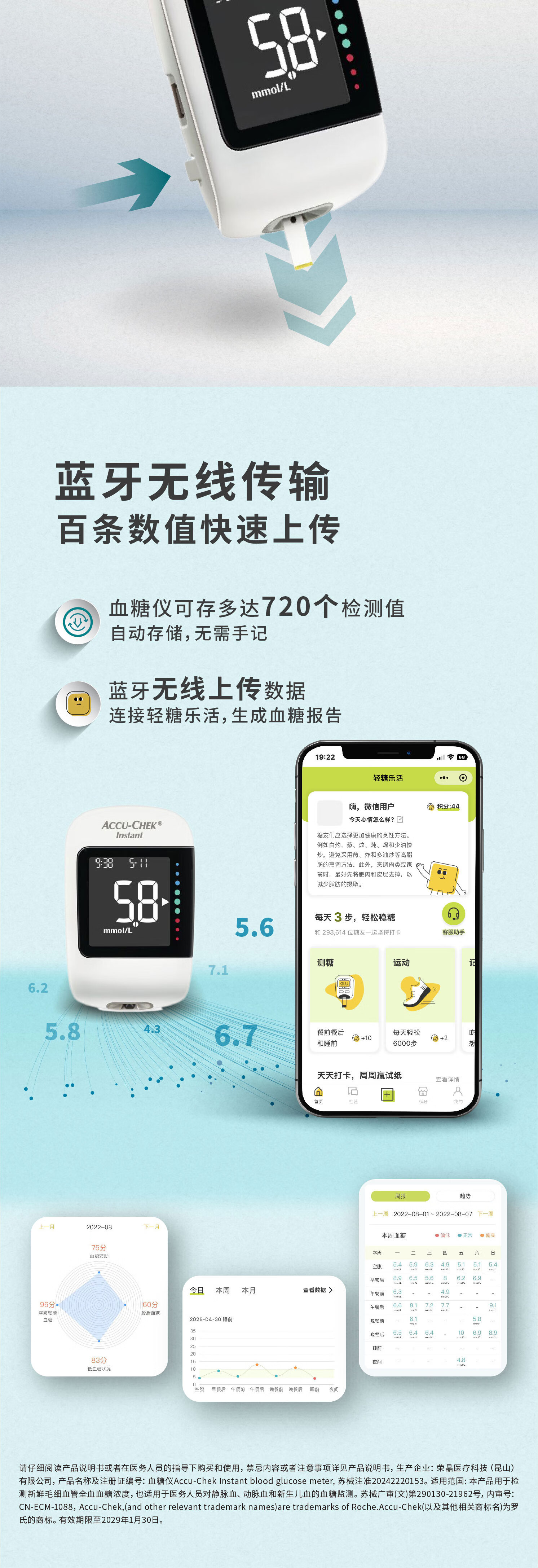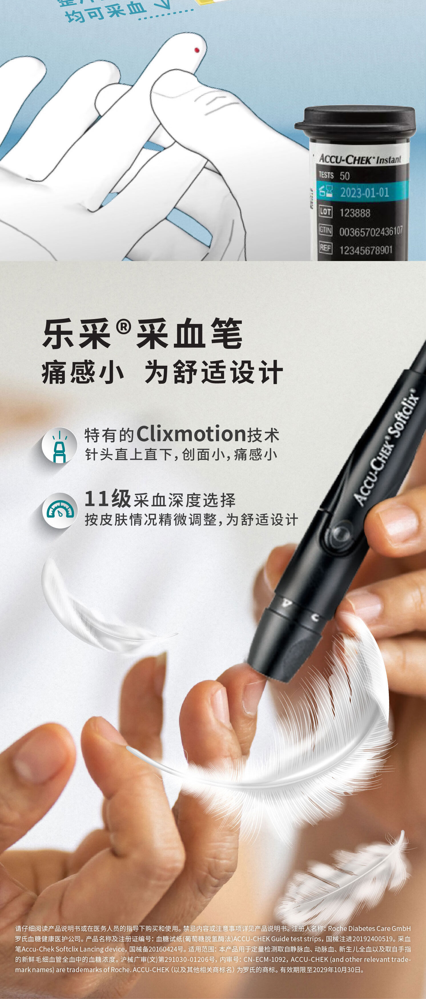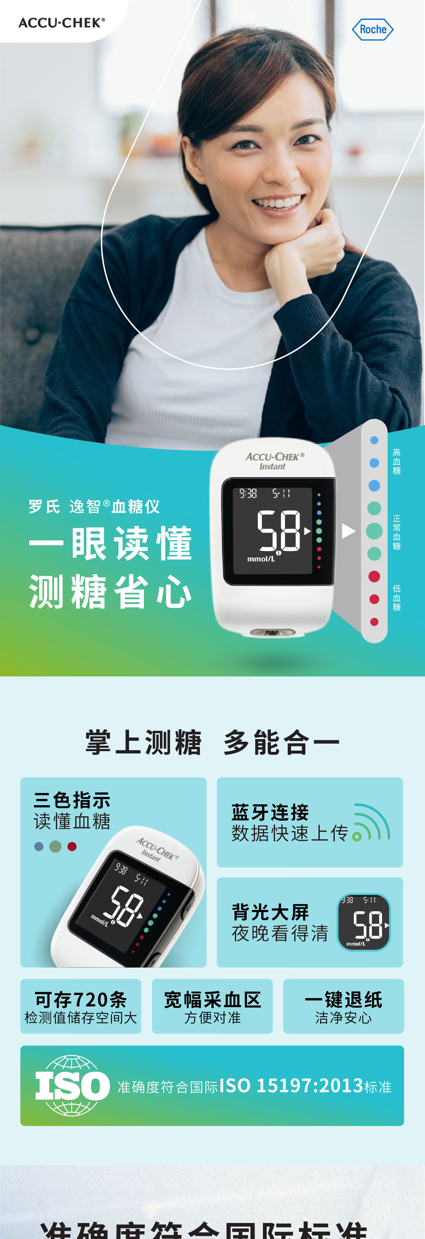 罗氏逸智血糖仪家用免调码高精准医用级检测仪(内赠50试纸+50针头)