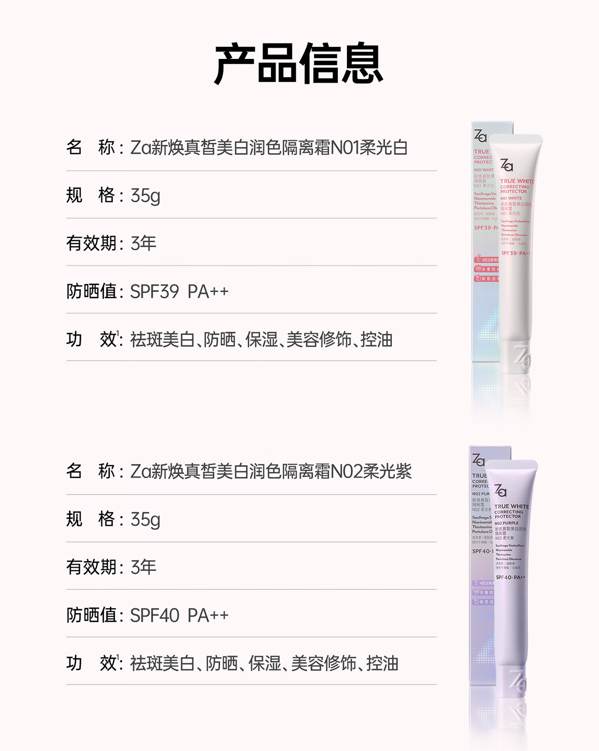 姬芮(ZA)升级款 新焕真皙美白紫色隔离霜试用装中样5g 付费专享新年礼物
