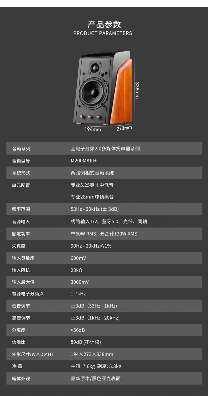 惠威(HiVi)M200MKIII+无线蓝牙HiFi音箱 2.0有源电视电脑客厅书房音响