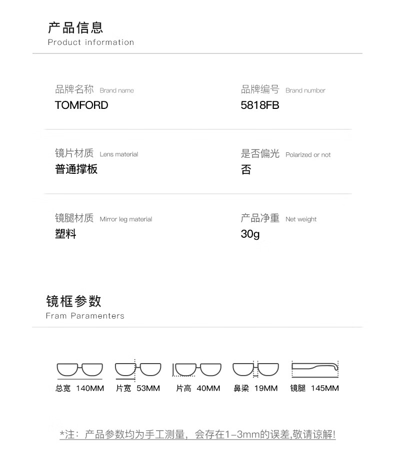 汤姆.福特(TOM FORD)光学眼镜架男女商务超轻复古眼镜框防蓝光镜片配镜近视眼镜框5818