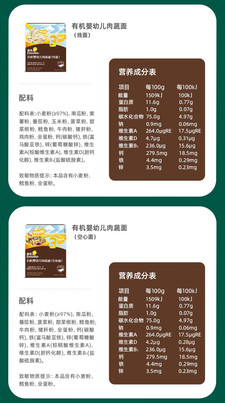 英氏婴儿面条宝宝辅食面条婴幼儿碎碎面粒粒面多乐能系列 【婴标7-12月+】线面3盒3口味