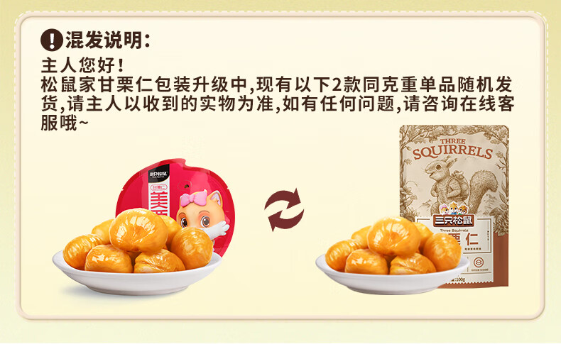 三只松鼠甘栗仁 坚果炒货果仁休闲零食栗子板栗100g/袋