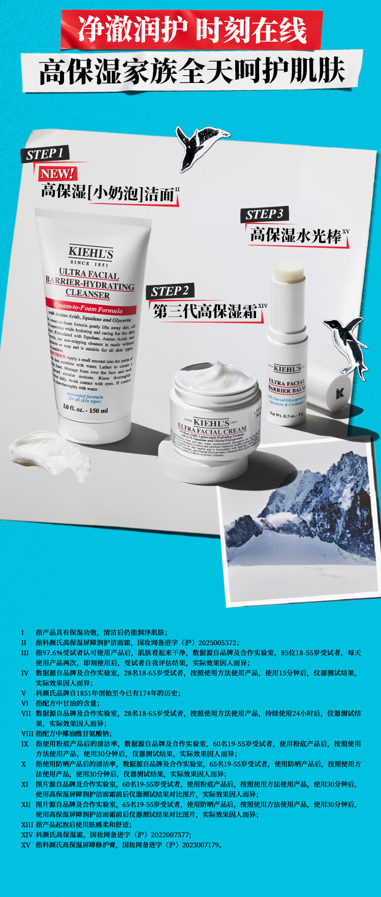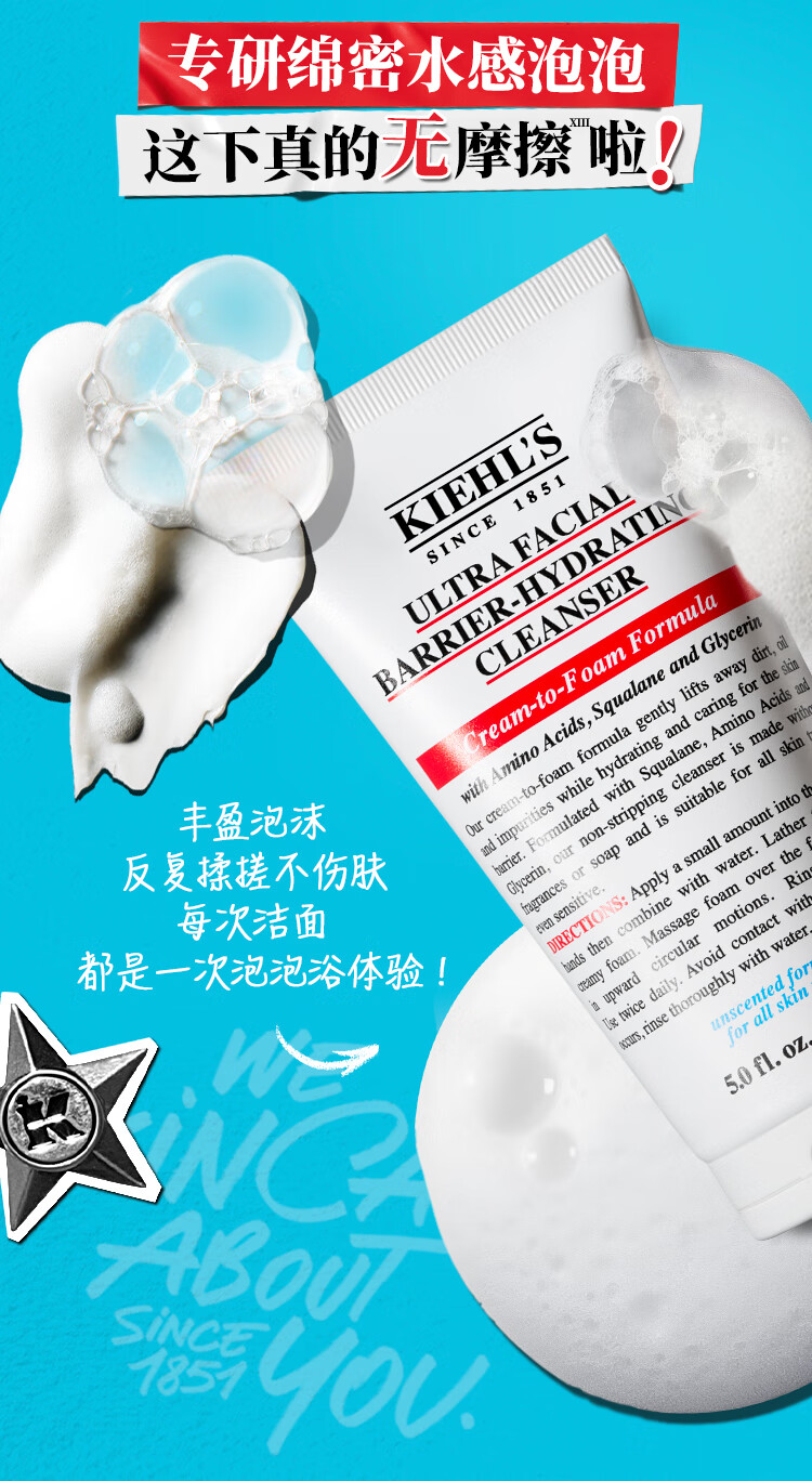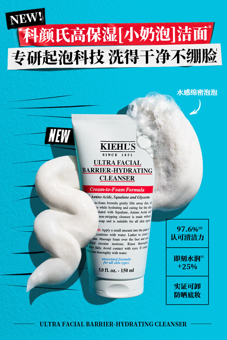 科颜氏(Kiehl's)高保湿小奶泡洁面75ml氨基酸洗面奶舒缓不绷脸可卸妆