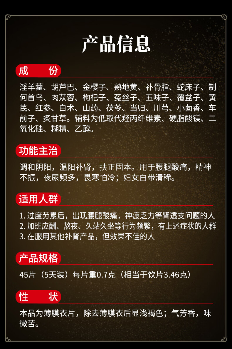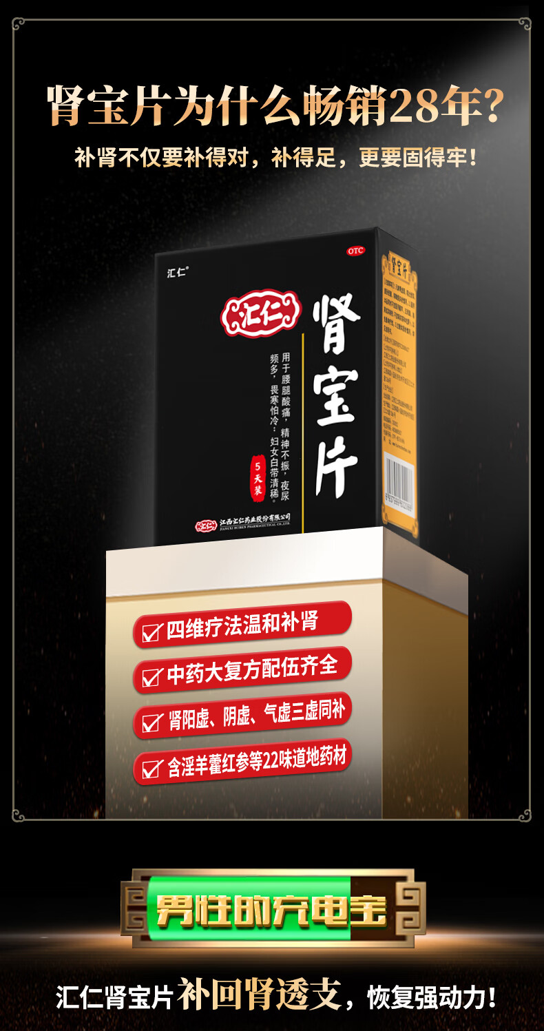 [汇仁]肾宝片 0.7g*45片 3盒装 肾宝片温阳补肾扶正固本肾虚腰疼尿频腿酸正品男人汇仁官方旗舰店正品厂家直发 15天半疗程